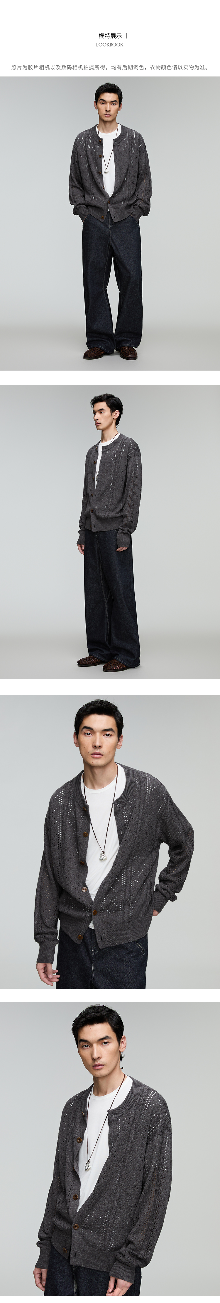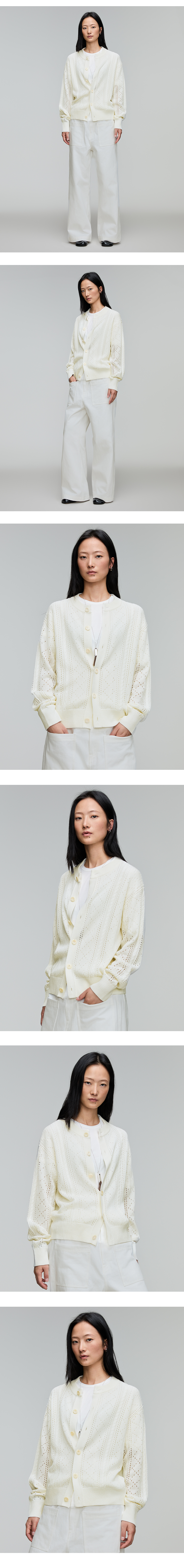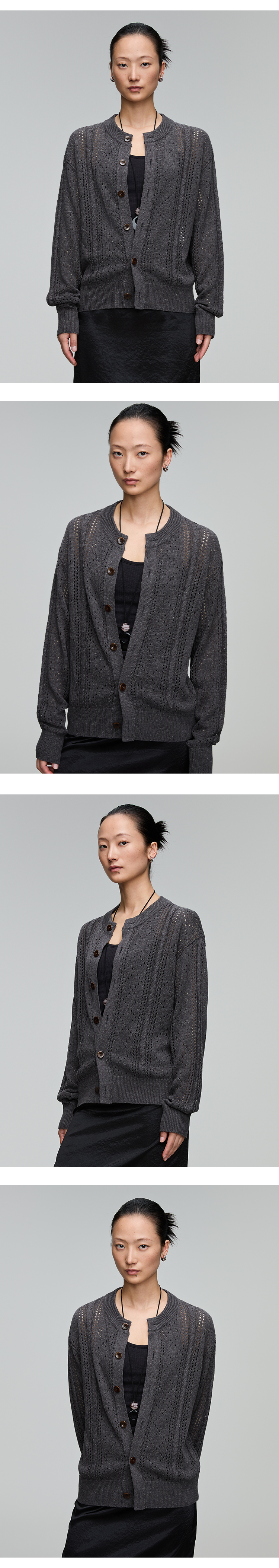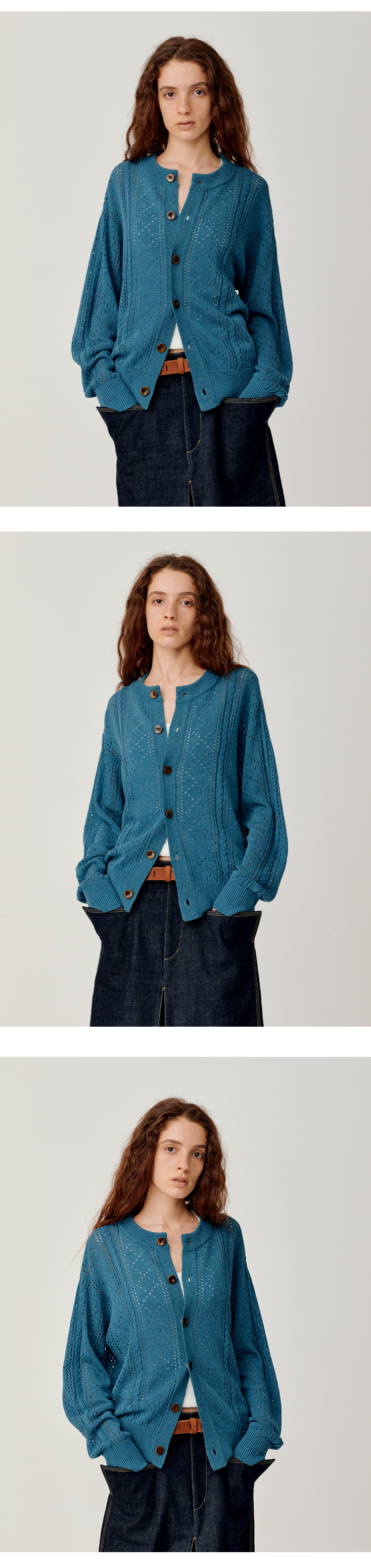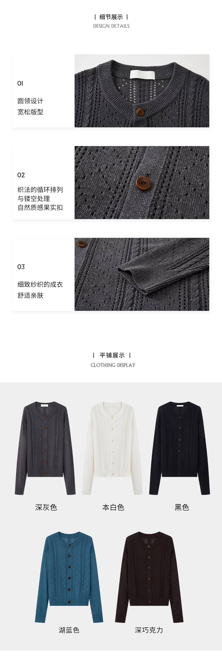 Opicloth/Opic Lyocell Linen Blend Round Neck Pit-Pattern Loose Hollow Knit Cardigan Jacket for Men and Women