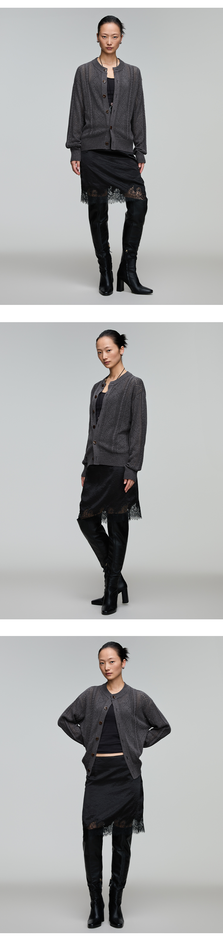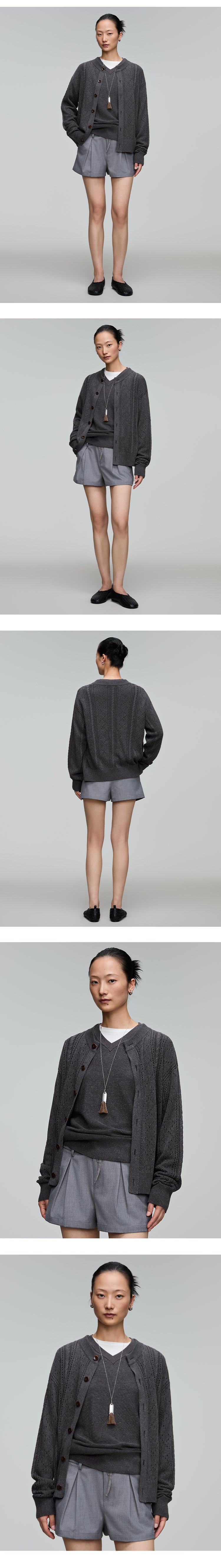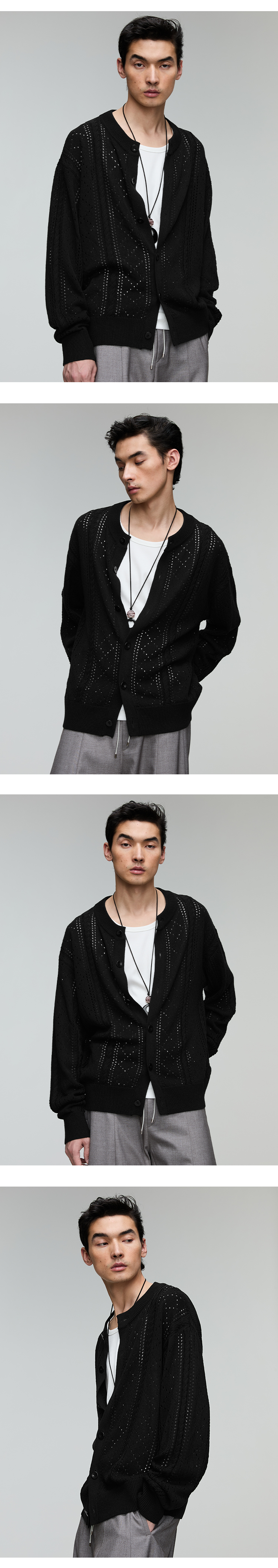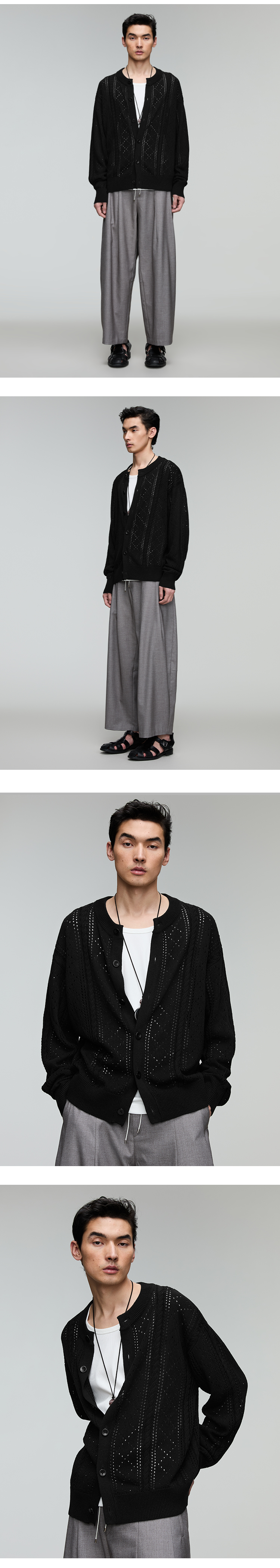 Opicloth/Opic Lyocell Linen Blend Round Neck Pit-Pattern Loose Hollow Knit Cardigan Jacket for Men and Women