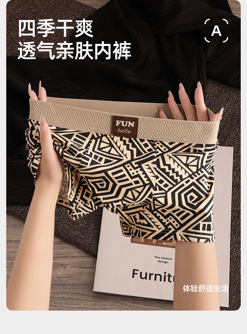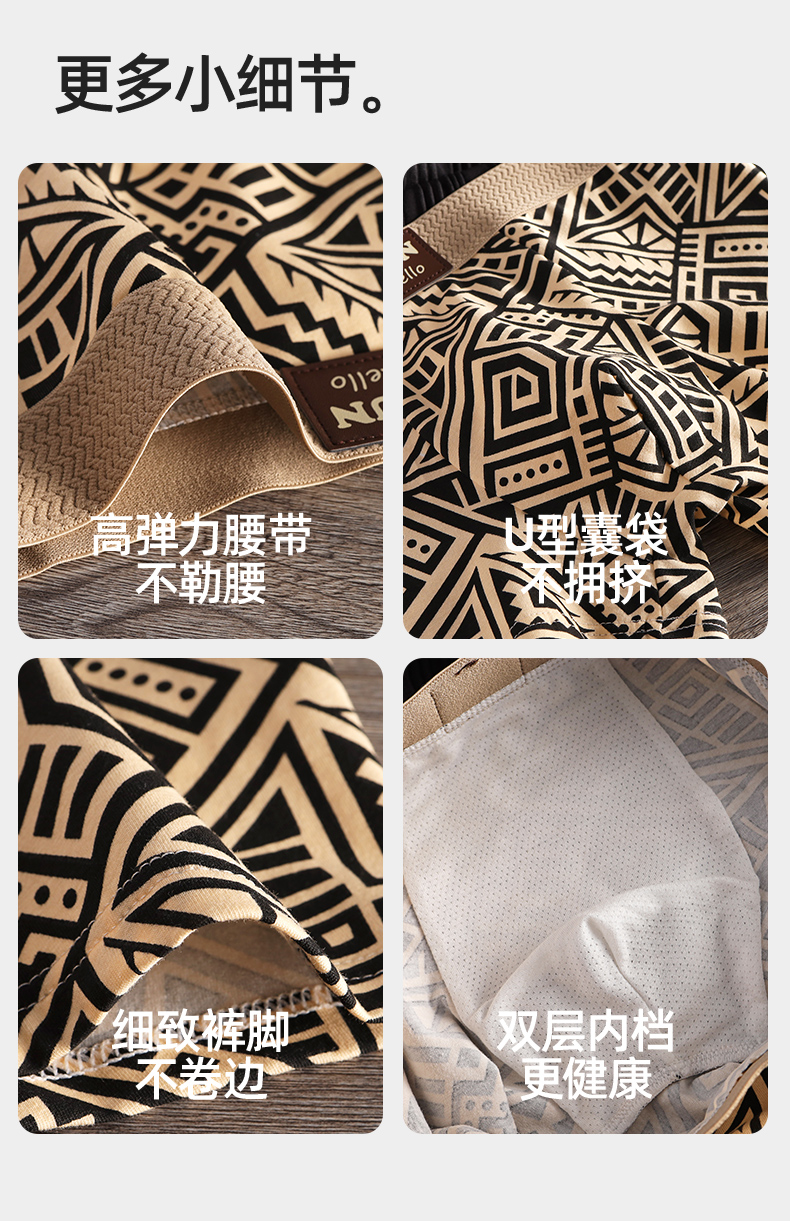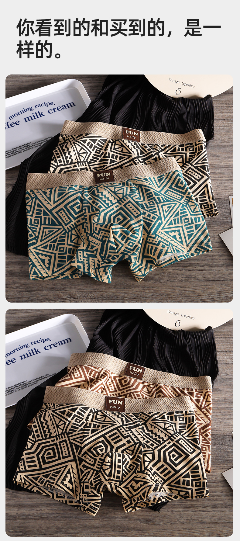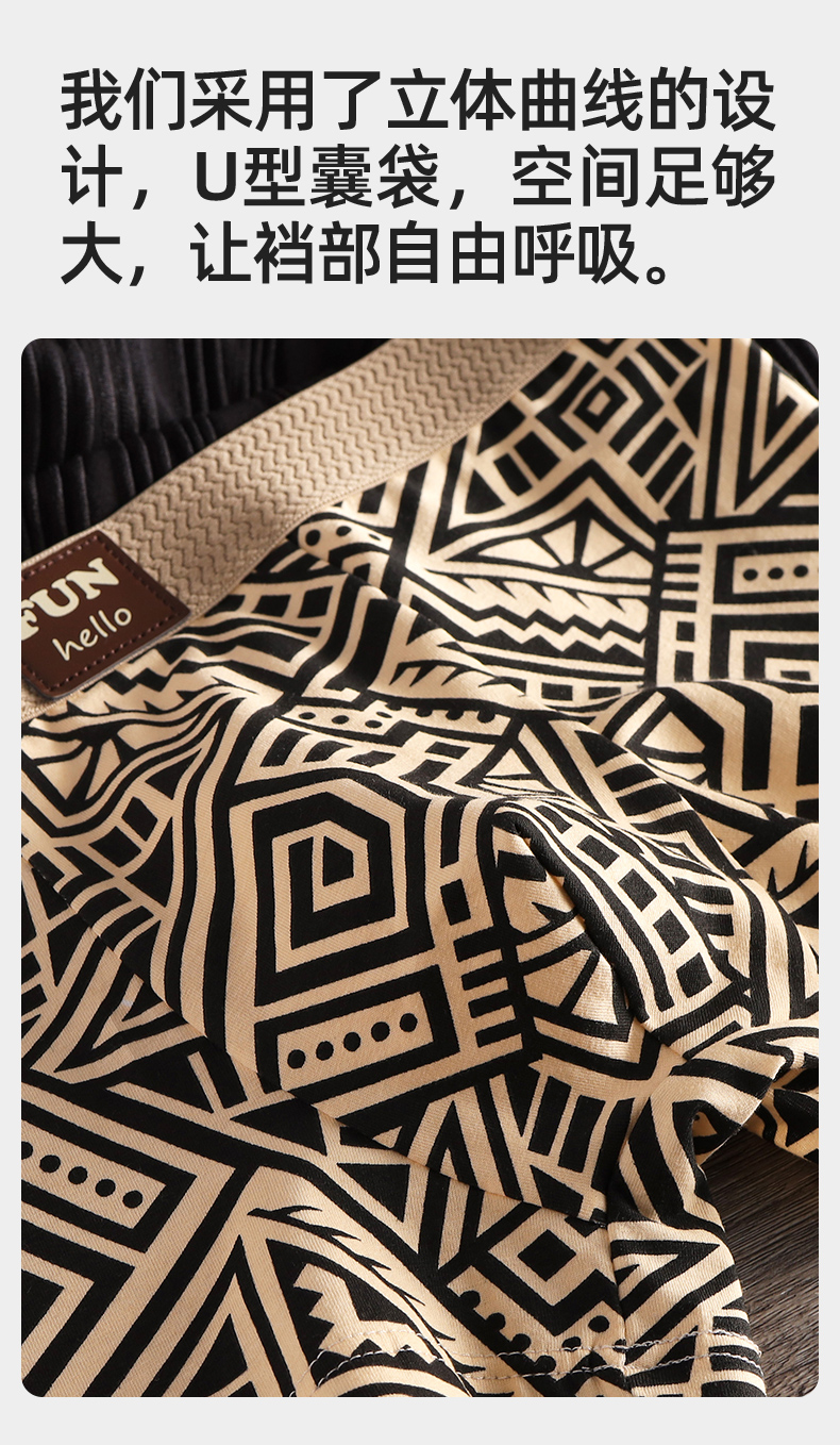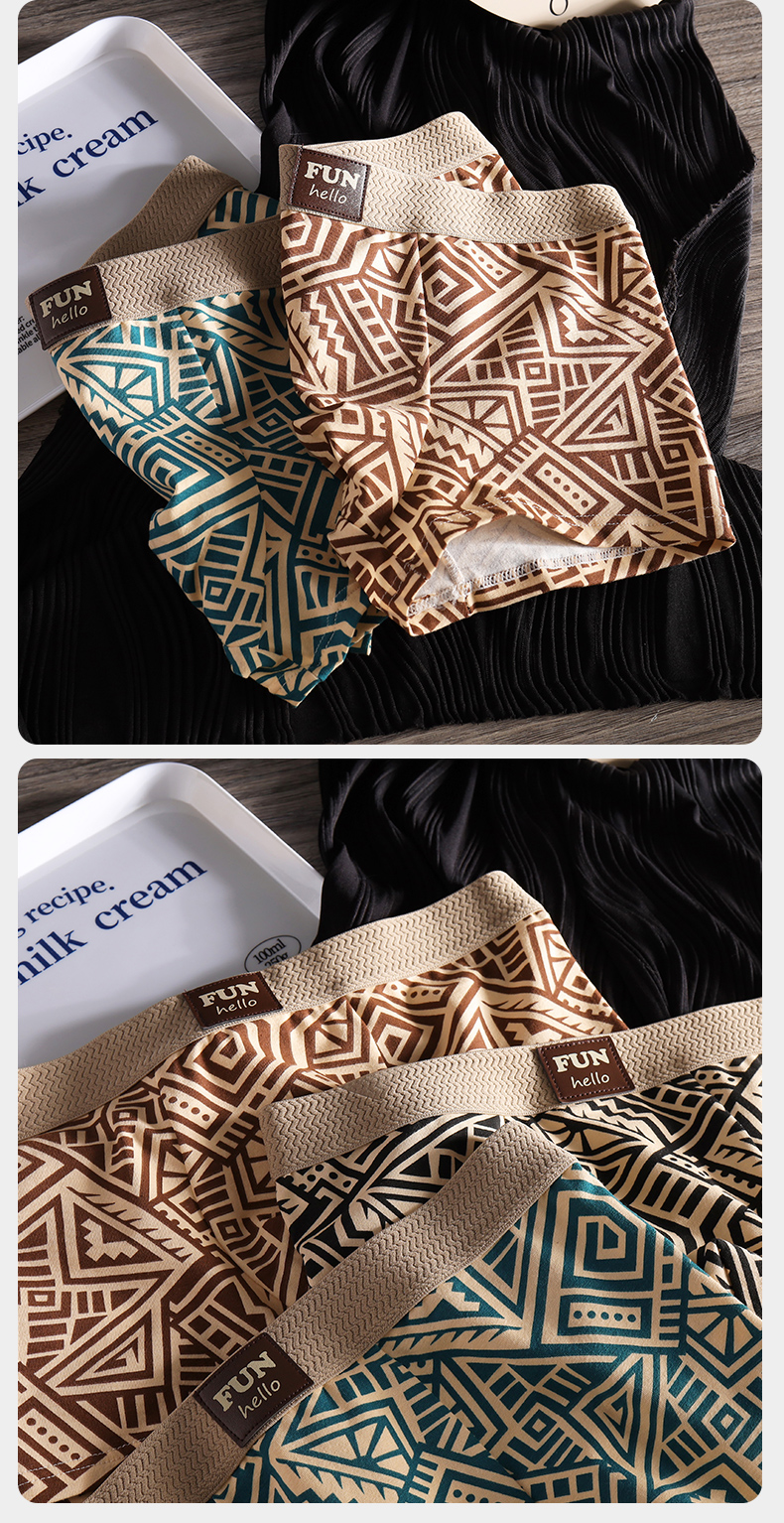 Trendy and Stylish Men's Underwear, Geometric Print Cotton Shorts for Young Men, Sexy and Comfortable Men's Boxer Briefs