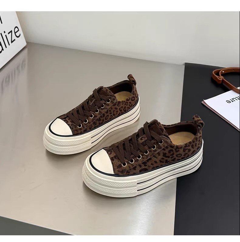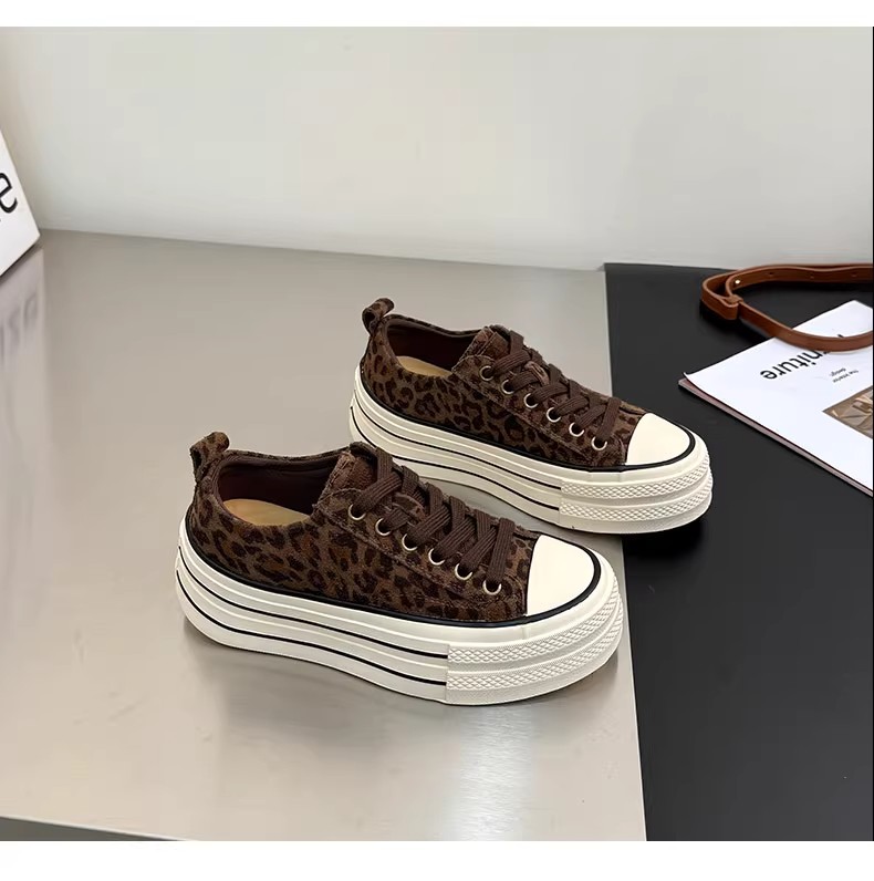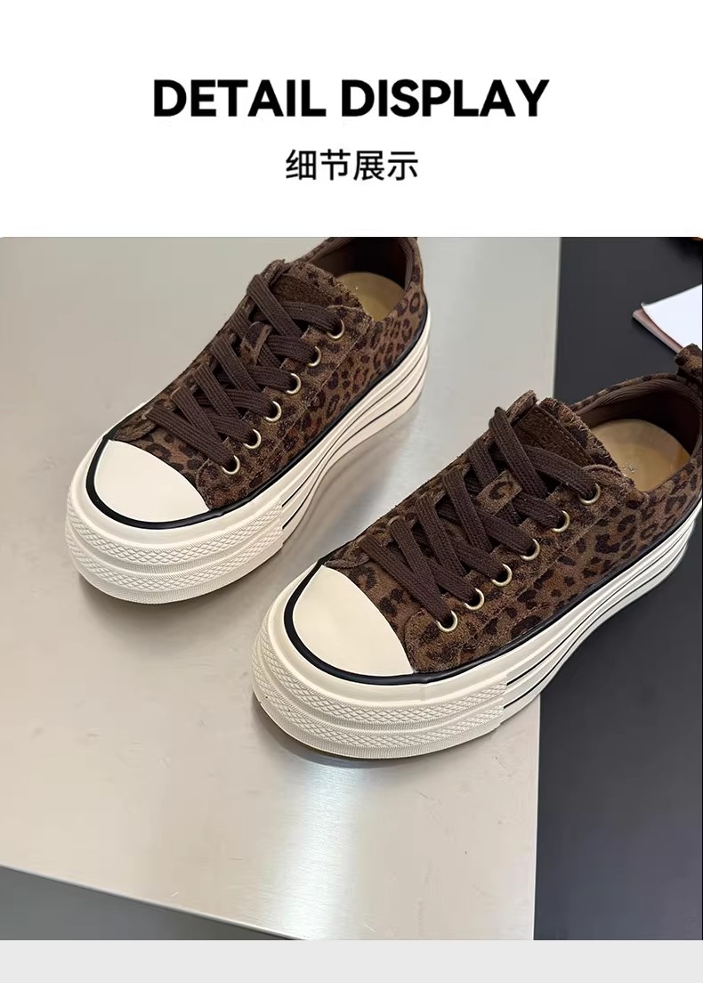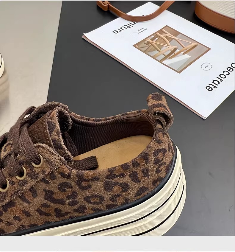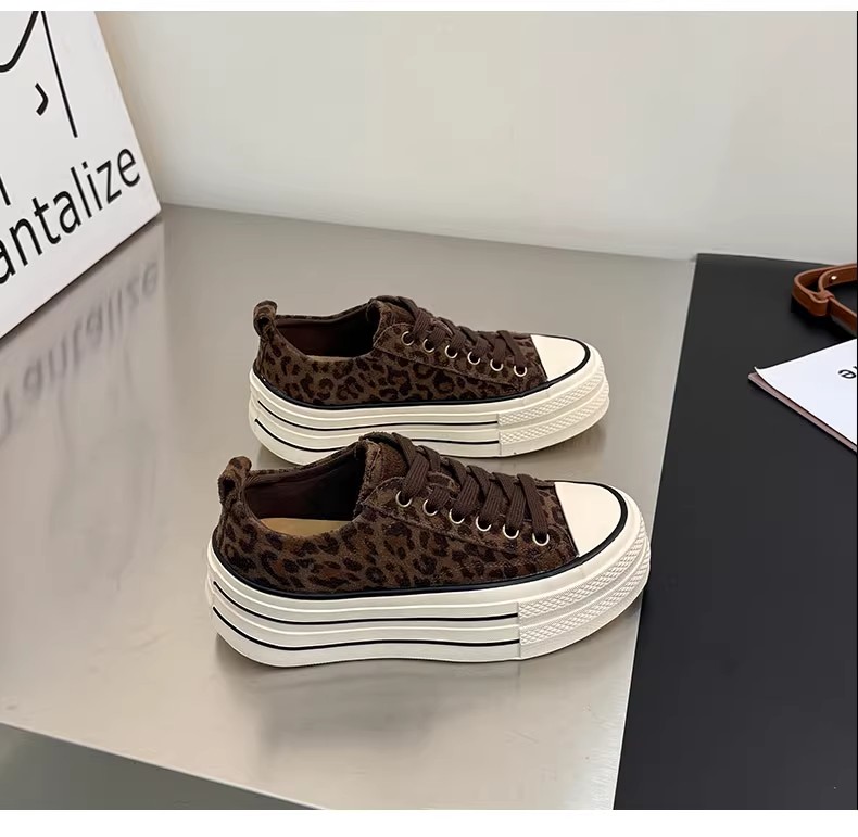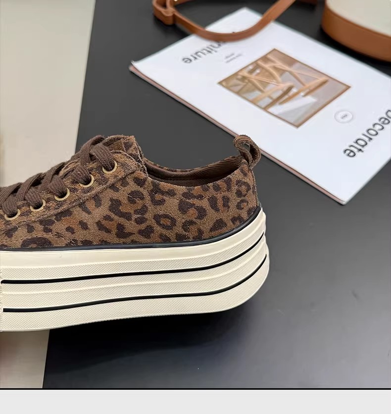 Hong Kong Leopard Print Nubuck Leather Sneakers for Women 2025 Spring and Autumn New Thick-Soled Height-Increasing Canvas Shoes Versatile Sports Casual Shoes