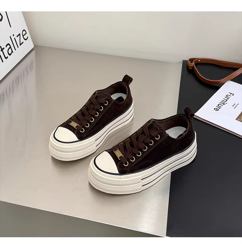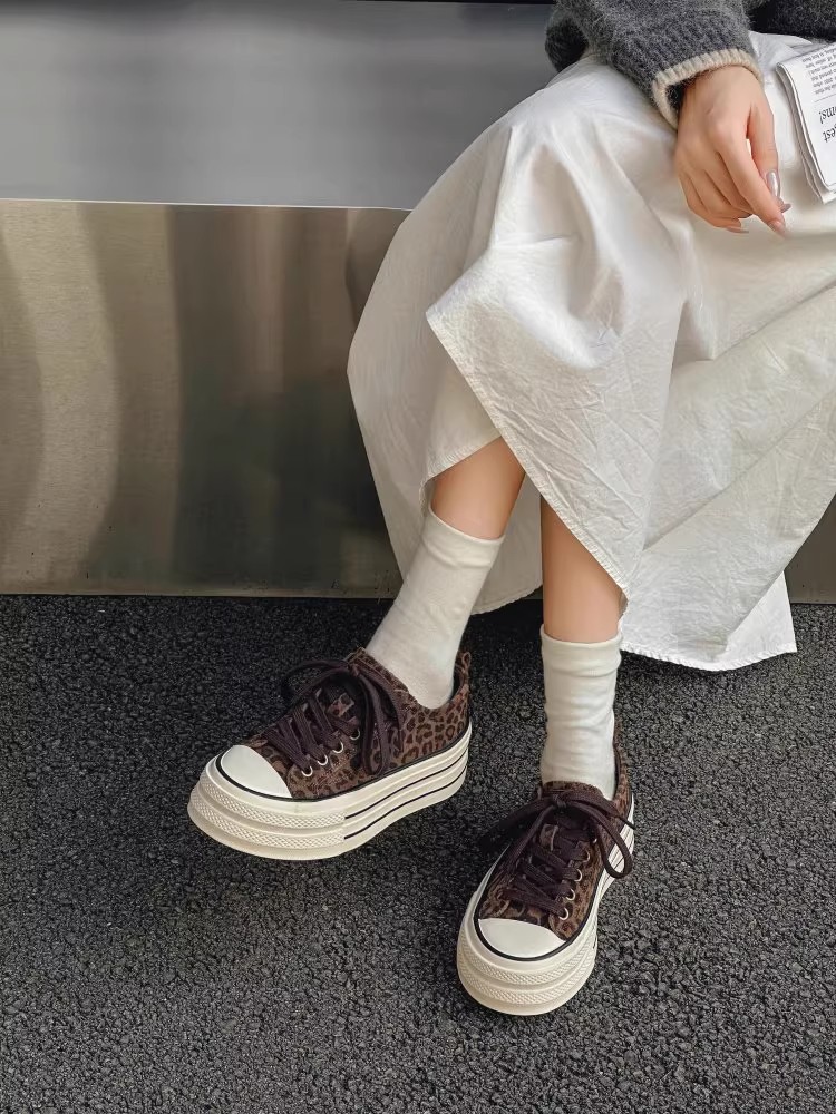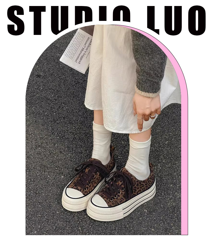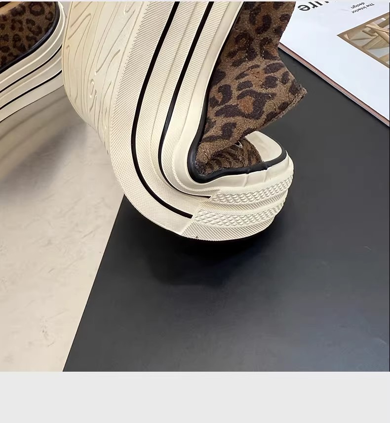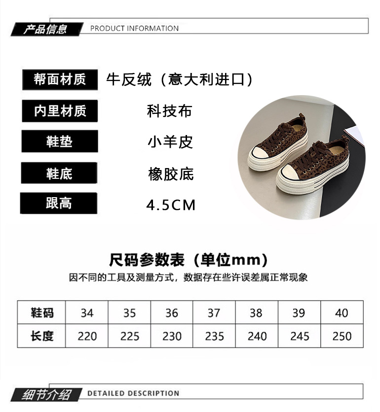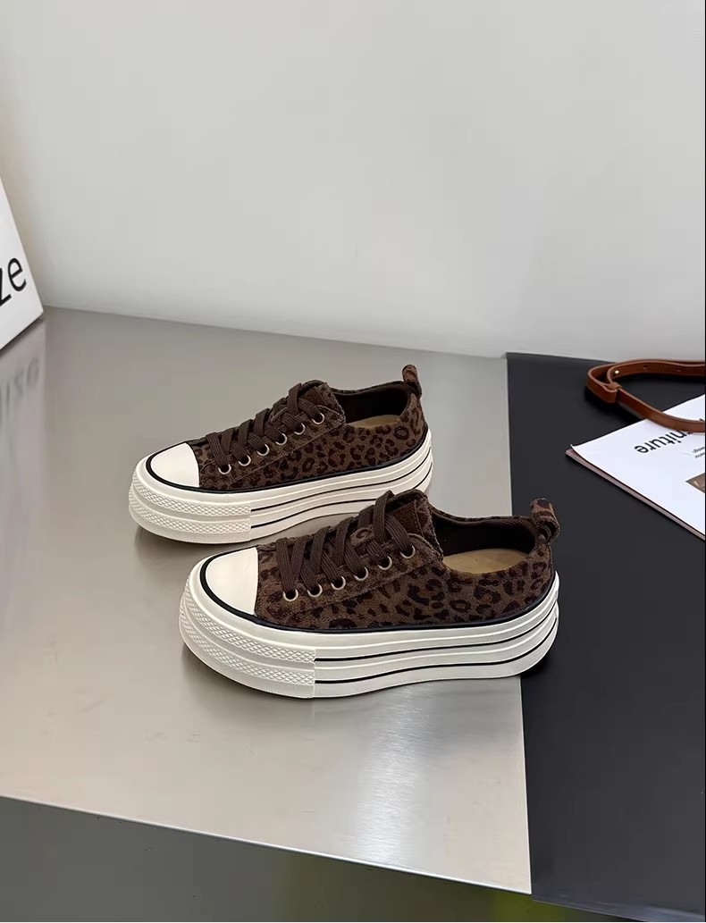 Hong Kong Leopard Print Nubuck Leather Sneakers for Women 2025 Spring and Autumn New Thick-Soled Height-Increasing Canvas Shoes Versatile Sports Casual Shoes
