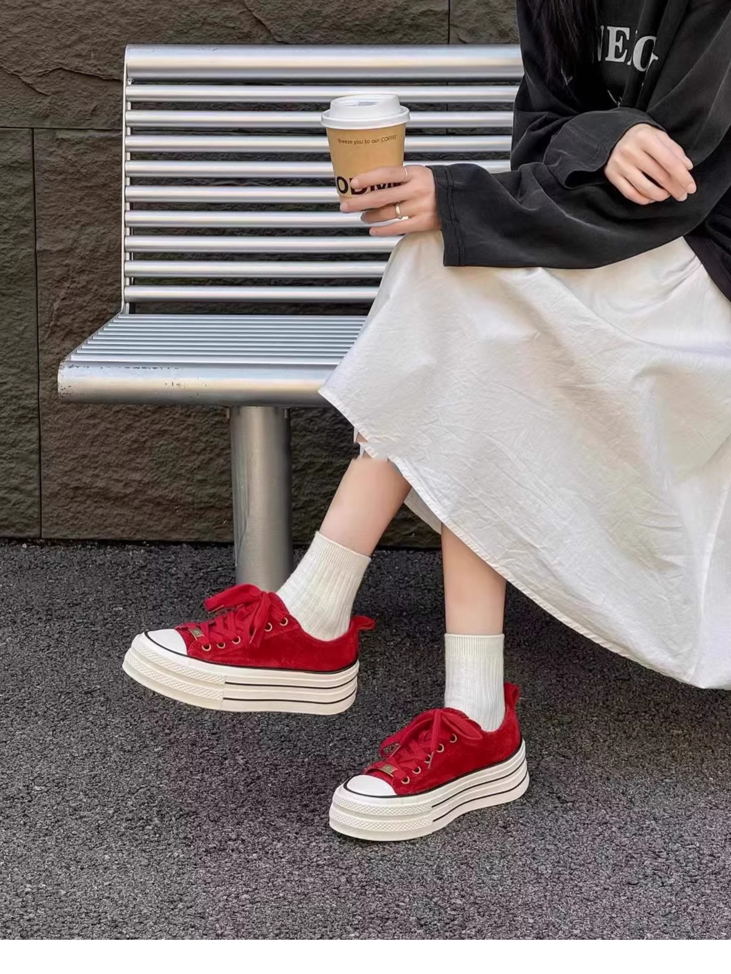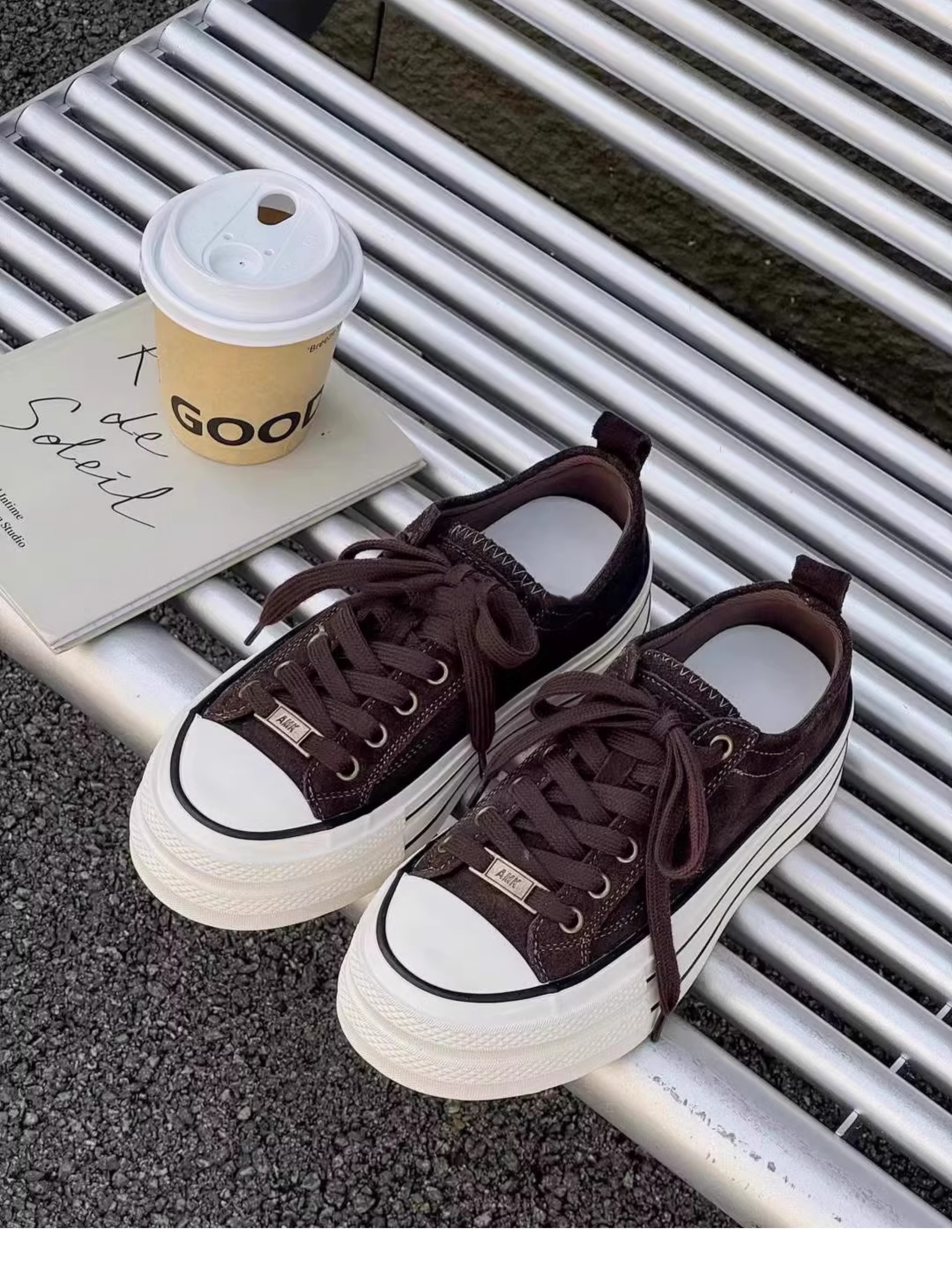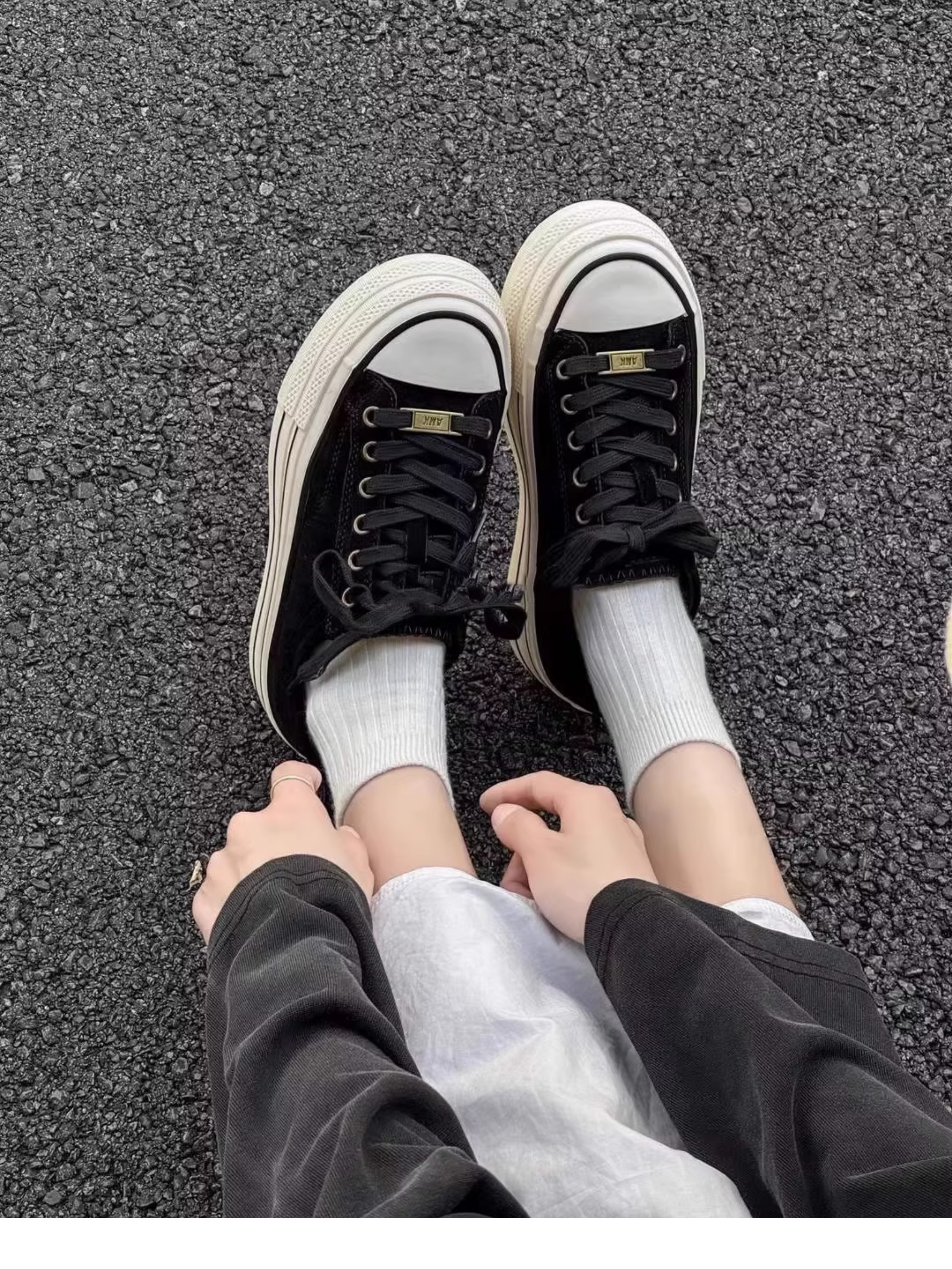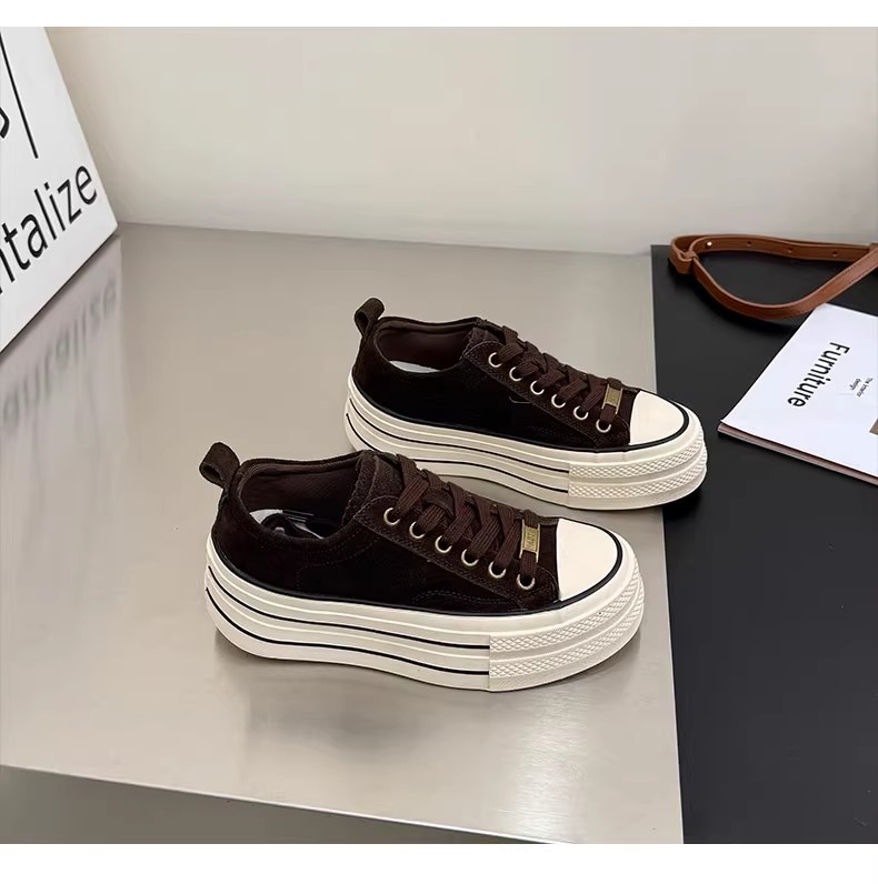 Hong Kong Leopard Print Nubuck Leather Sneakers for Women 2025 Spring and Autumn New Thick-Soled Height-Increasing Canvas Shoes Versatile Sports Casual Shoes