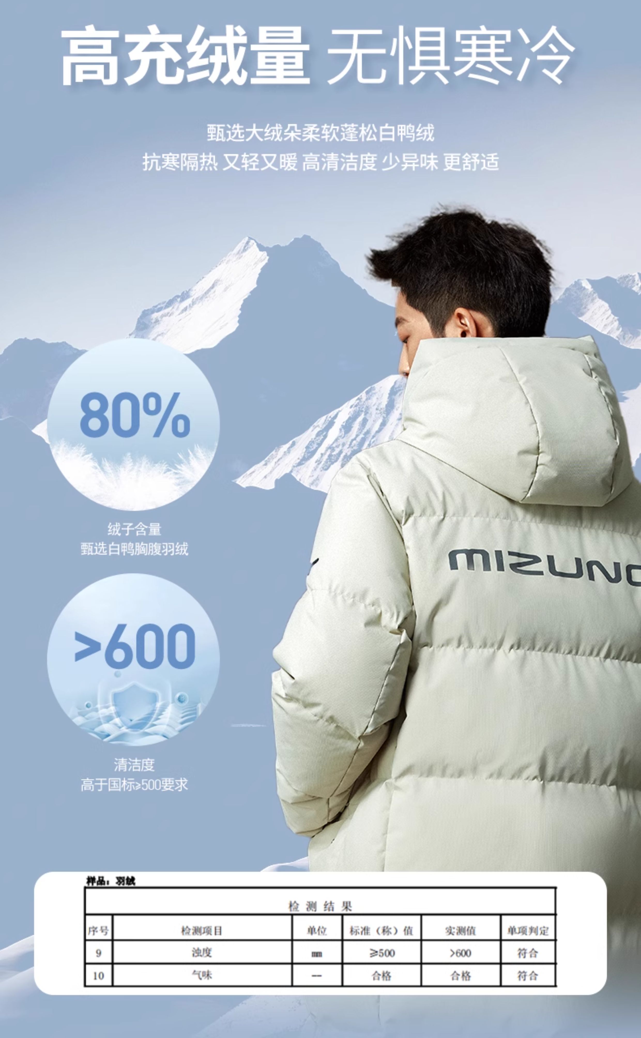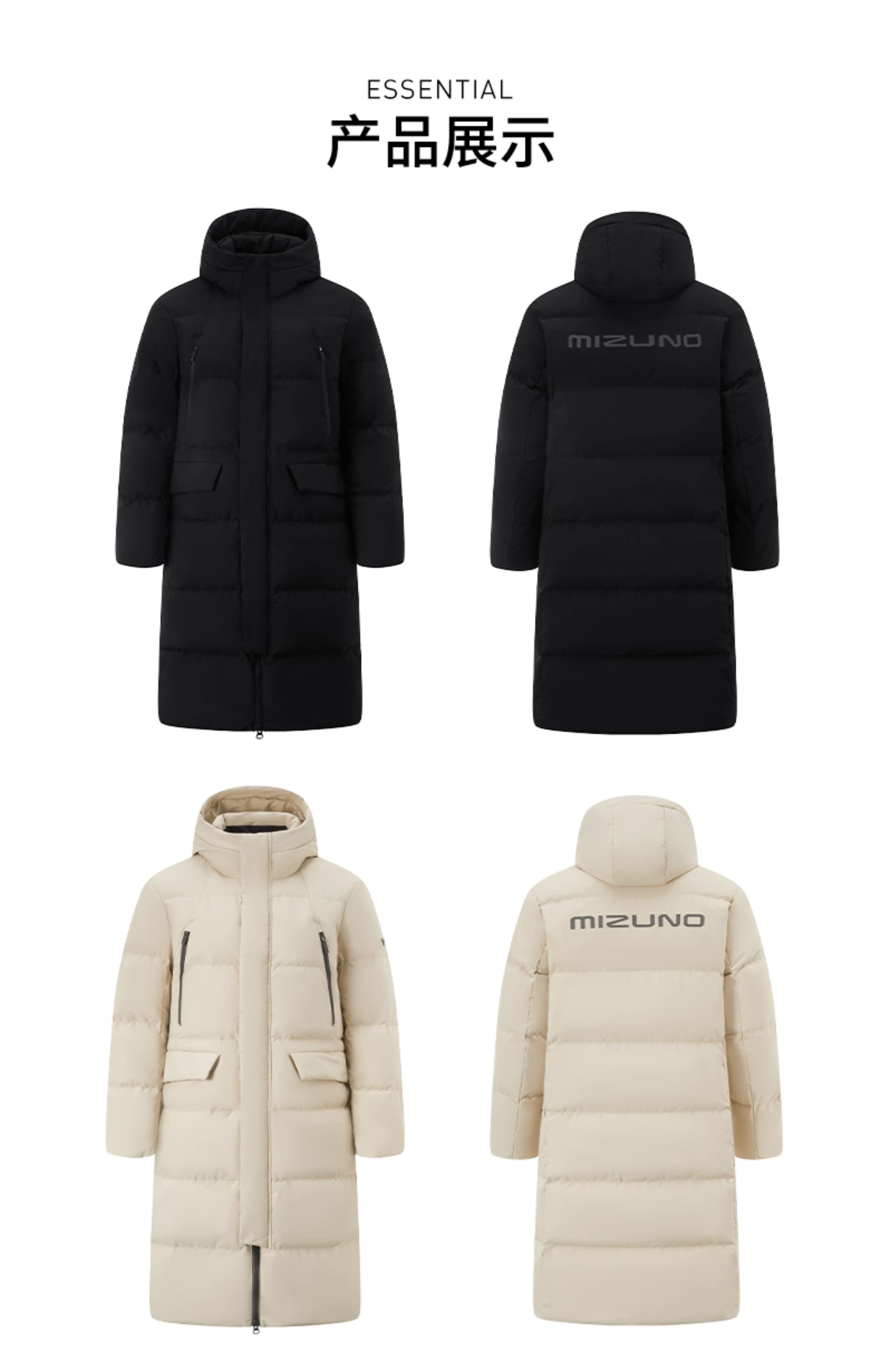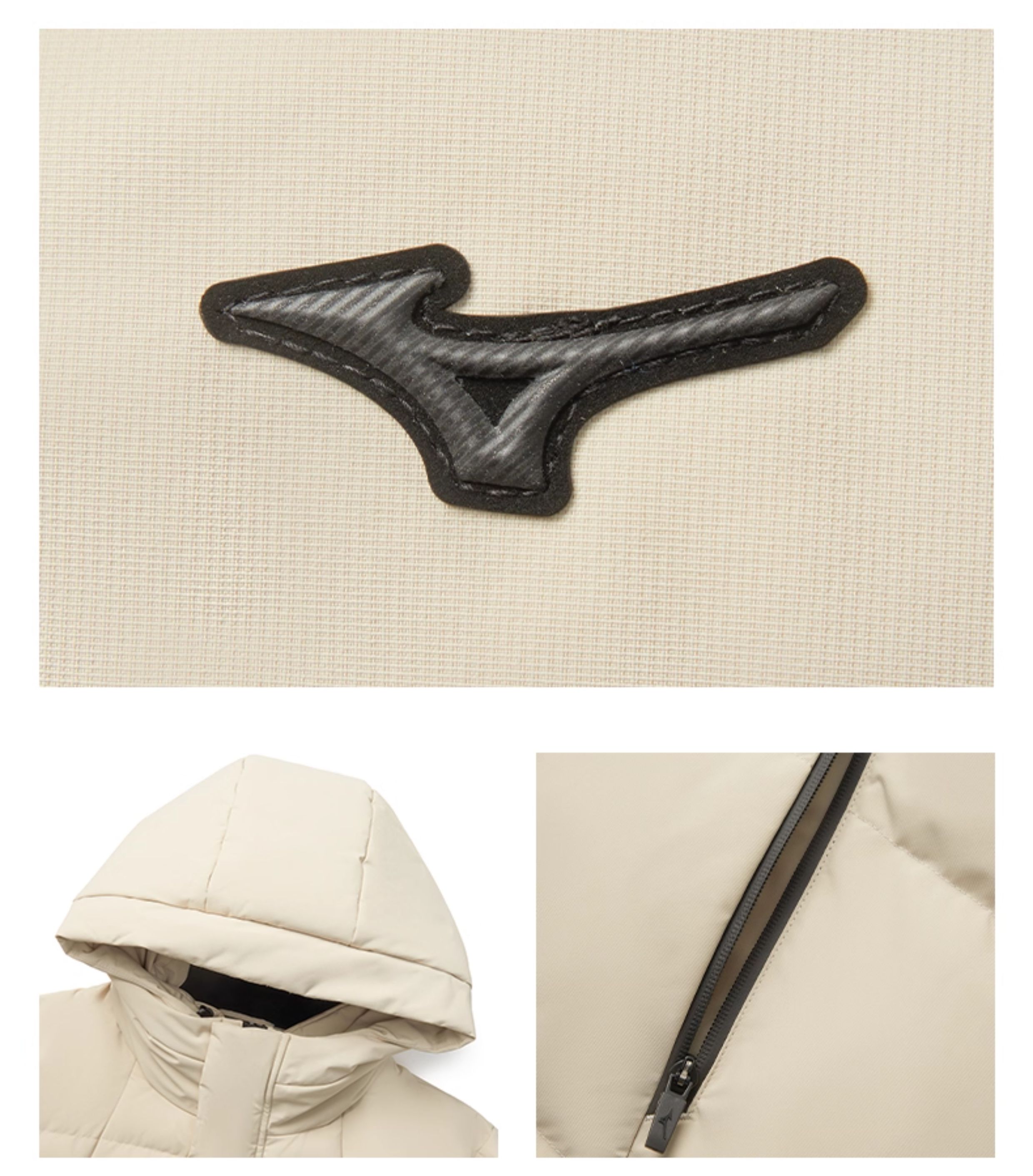 Mizuno Mizuno Men's and Women's Winter Mid-Length Windproof and Water-Repellent High-Fill down Jacket with Hood and Heat-Retaining Properties