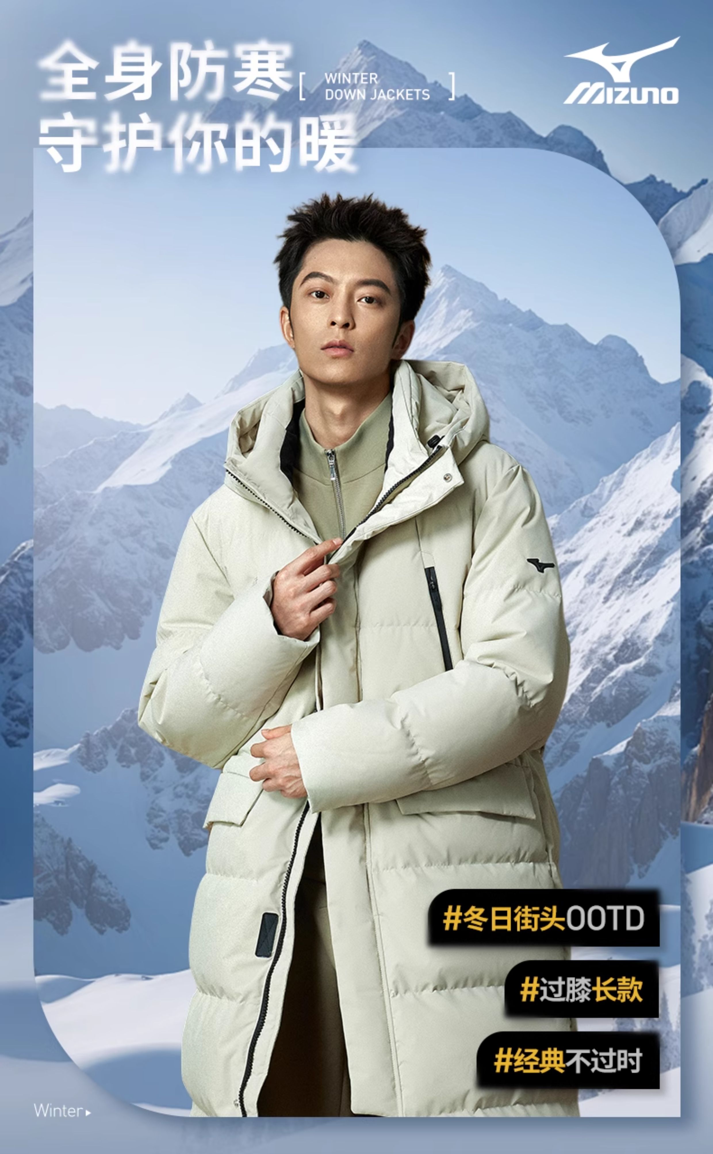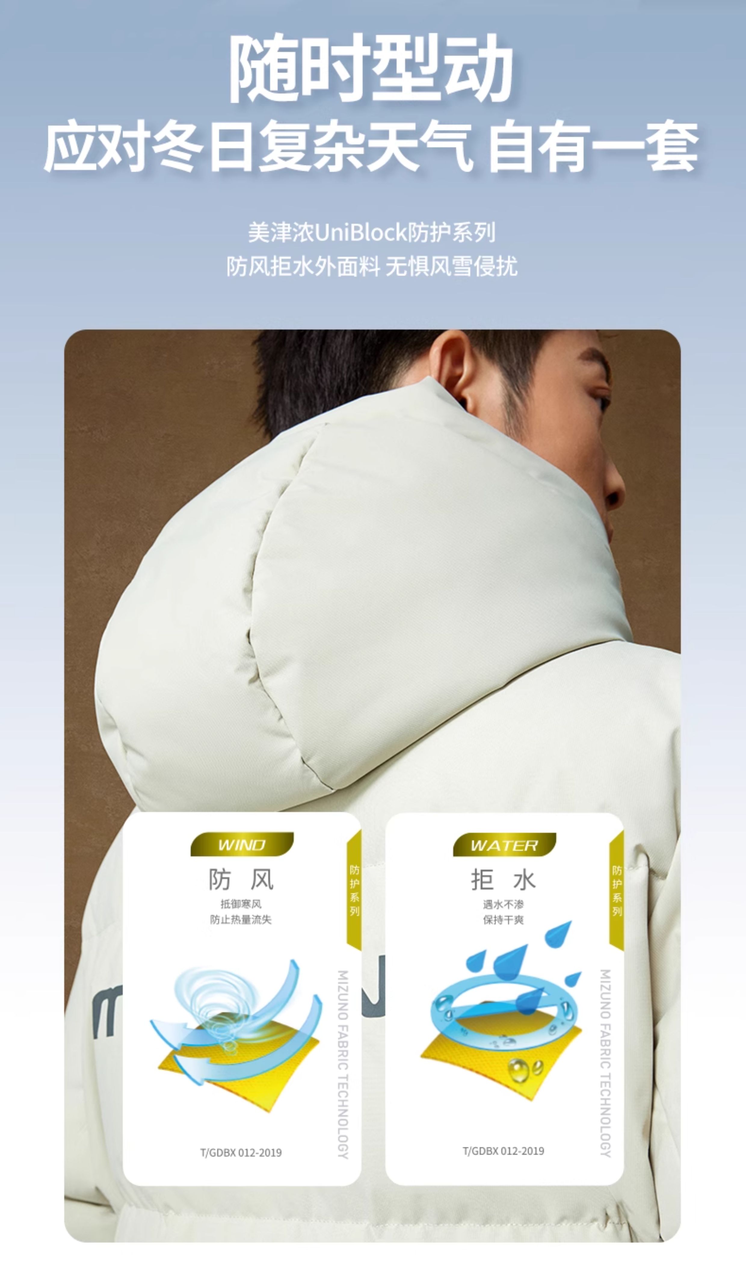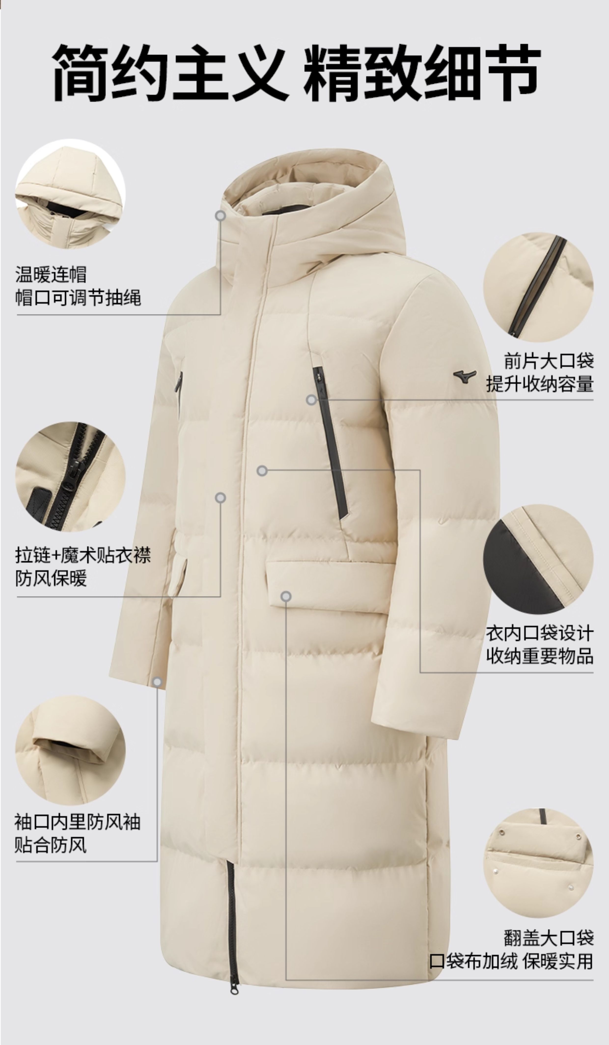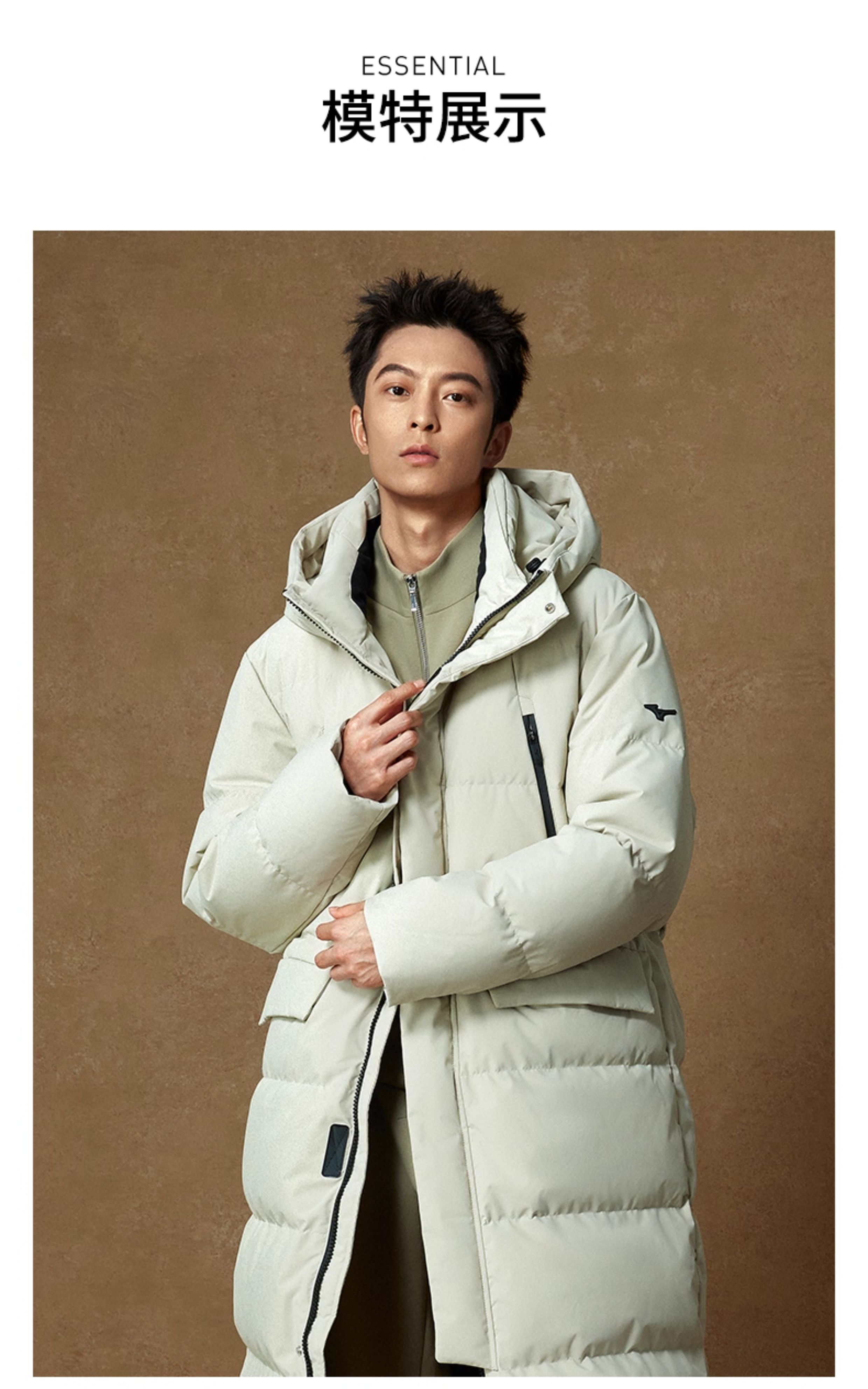 Mizuno Mizuno Men's and Women's Winter Mid-Length Windproof and Water-Repellent High-Fill down Jacket with Hood and Heat-Retaining Properties