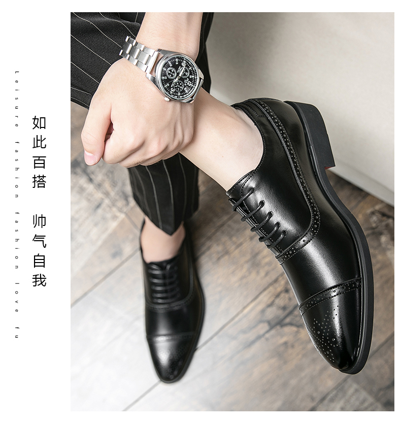 Italian Handmade Men's Shoes, Genuine Leather, Autumn and Winter New Trendy Brogue Leather Shoes, Men's Business British Style Wedding Groom Shoes