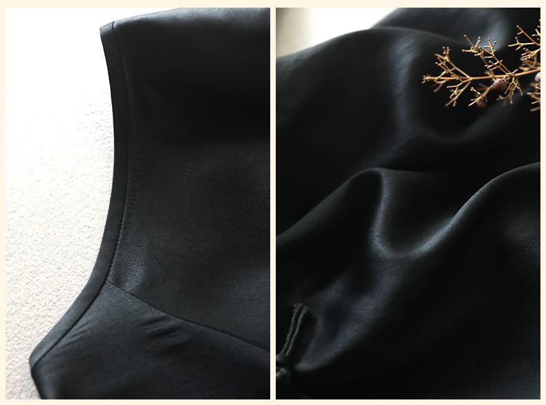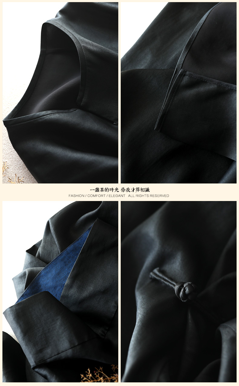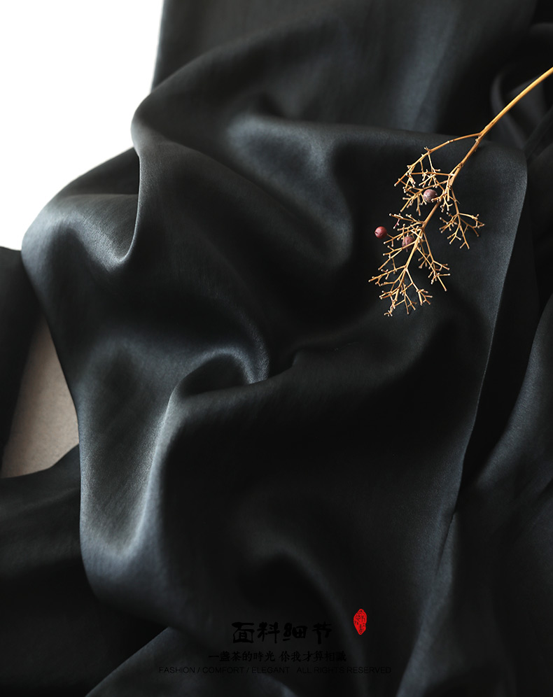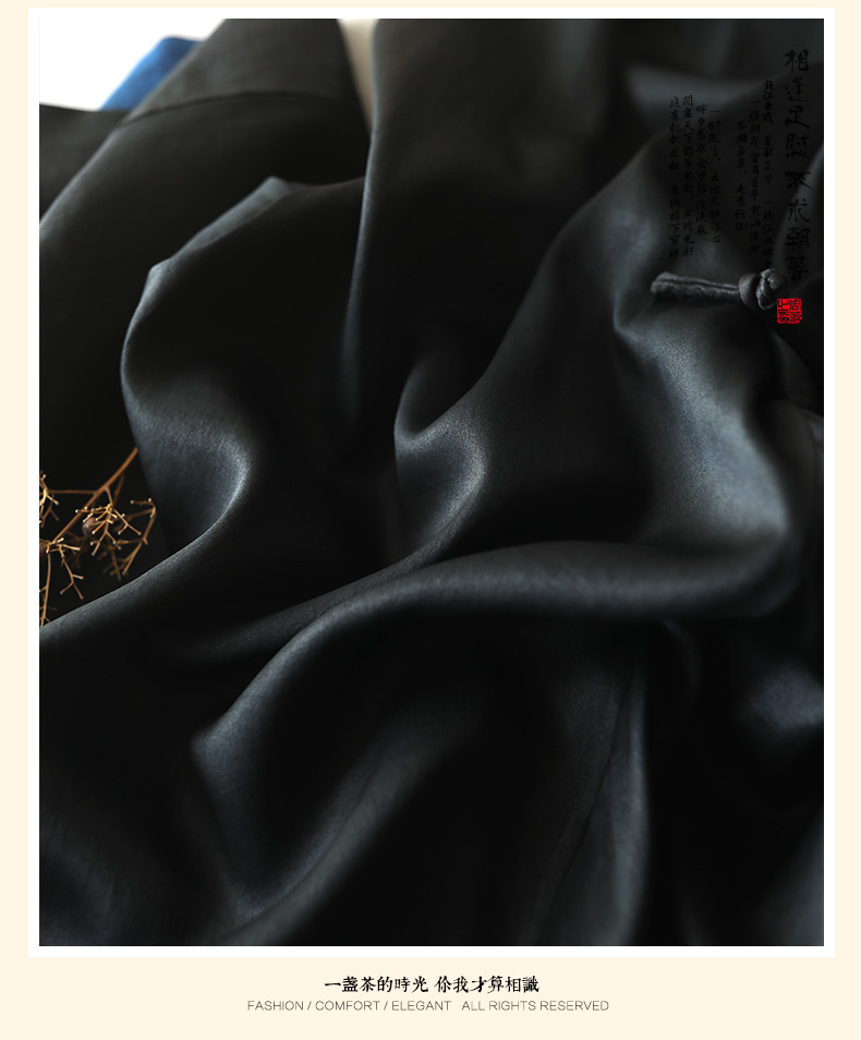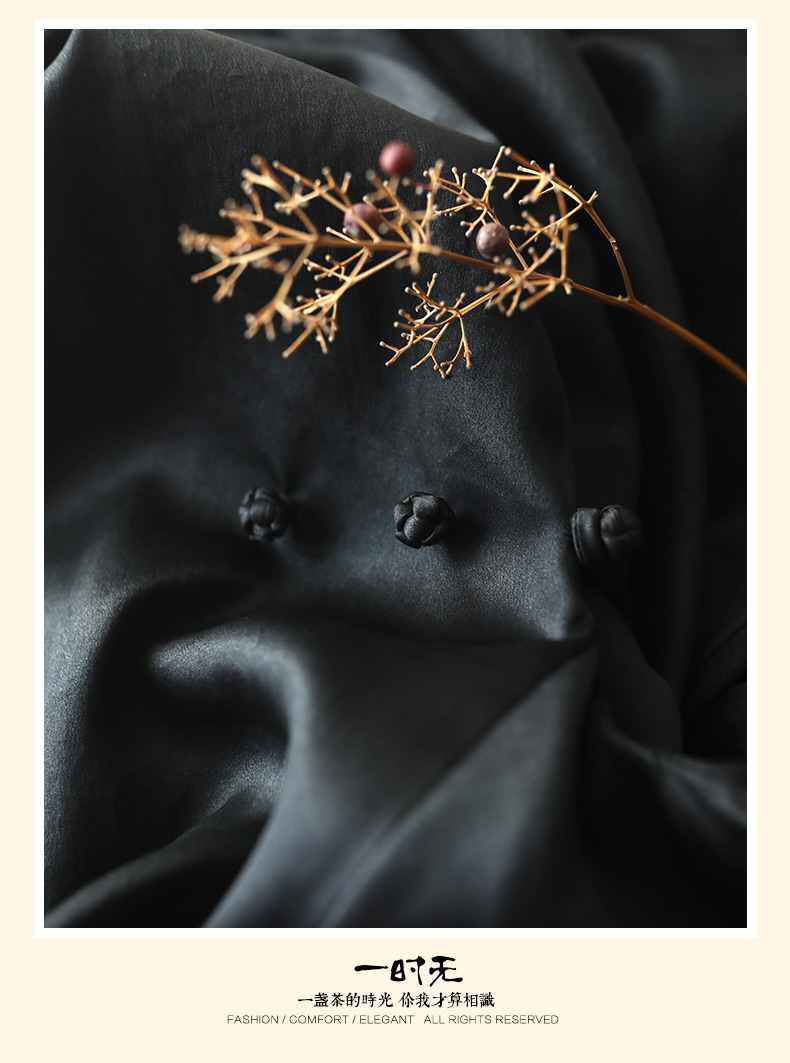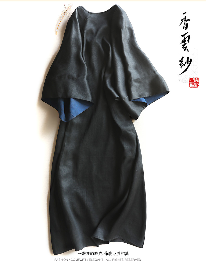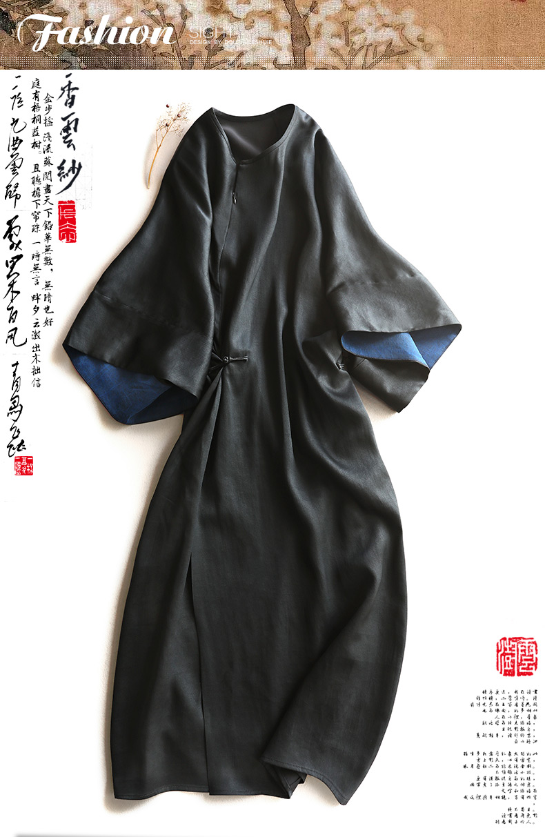 Yunshu Original Black Crepe Satin Xiangyun Silk Loose Oversized Sleeve Dress Early Autumn Buttoned Mulberry Silk Long Dress