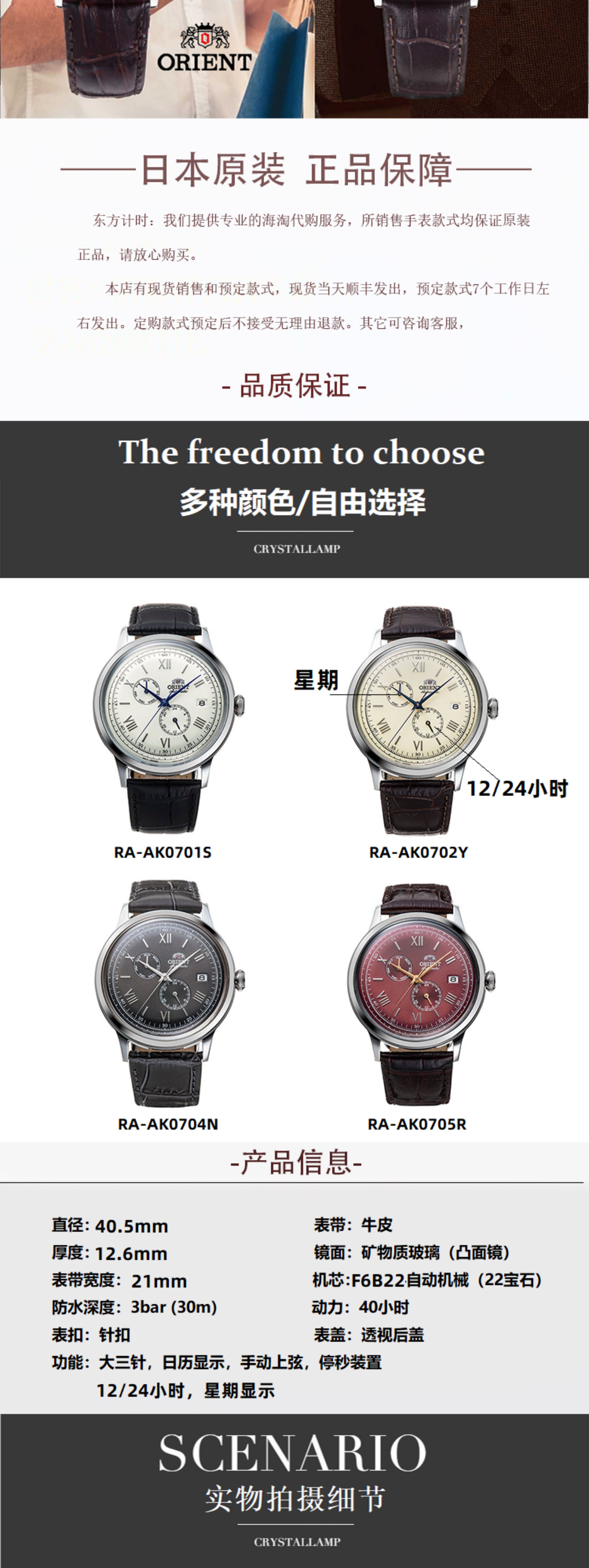 Orient Double Lion Small Blue Needle Automatic Mechanical Watch Bubble Mirror Ra-Ak0702Y Retro Men's Watch Japan