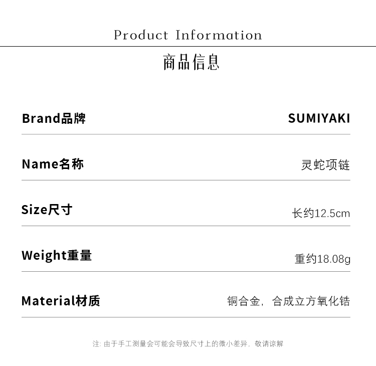 Sumiyaki New Year Snake Necklace Simple Pull-Adjustable Collar Snake Year Clavicle Chain High-End Neck Chain