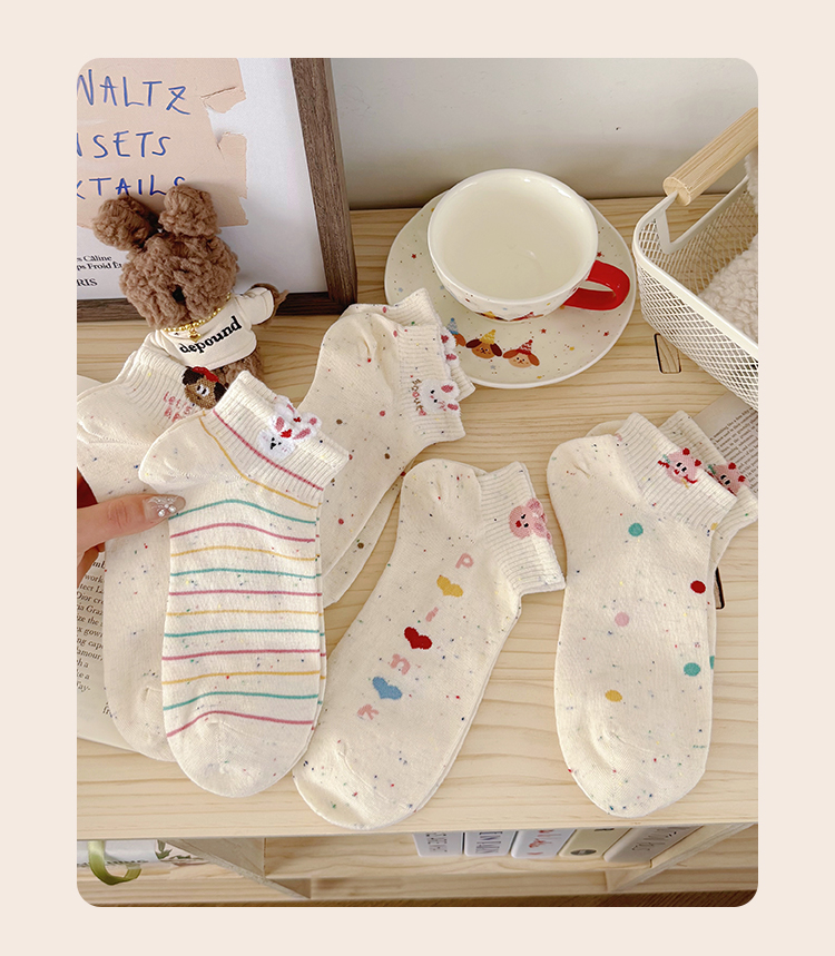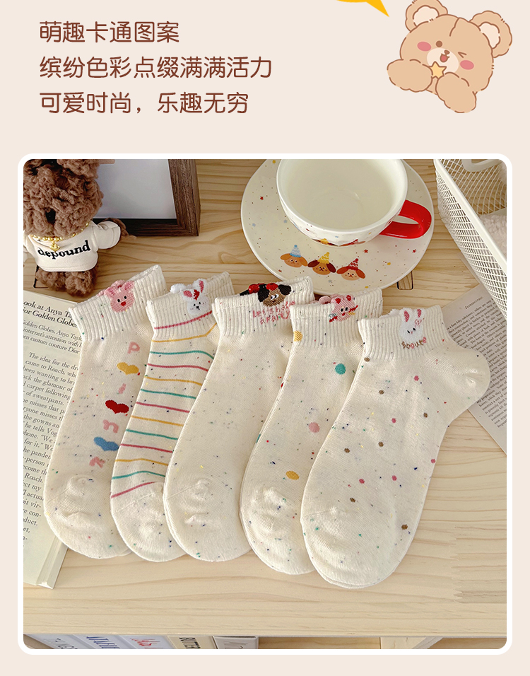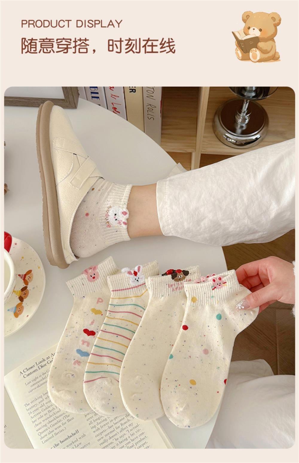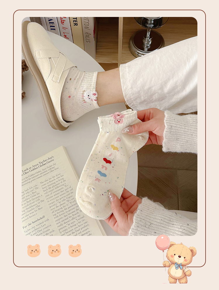 Cartoon Socks for Women, Short Socks for Spring and Summer, Breathable, Trendy, Cute, Yarn Bunny Short Socks, Low-Cut Boat Socks