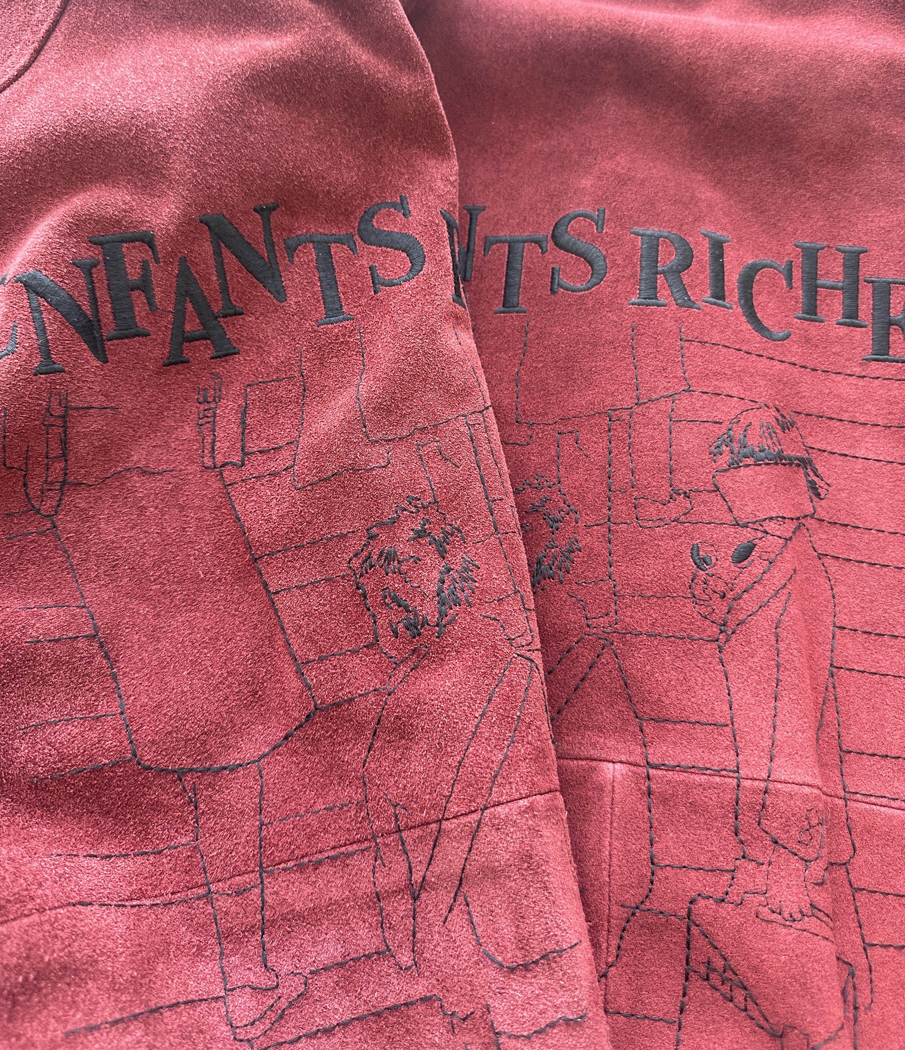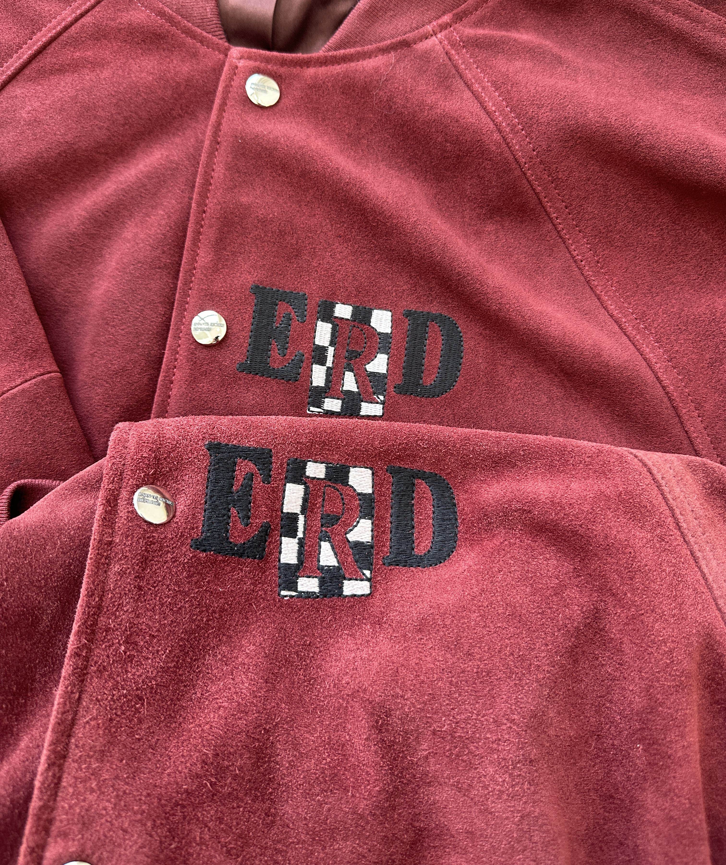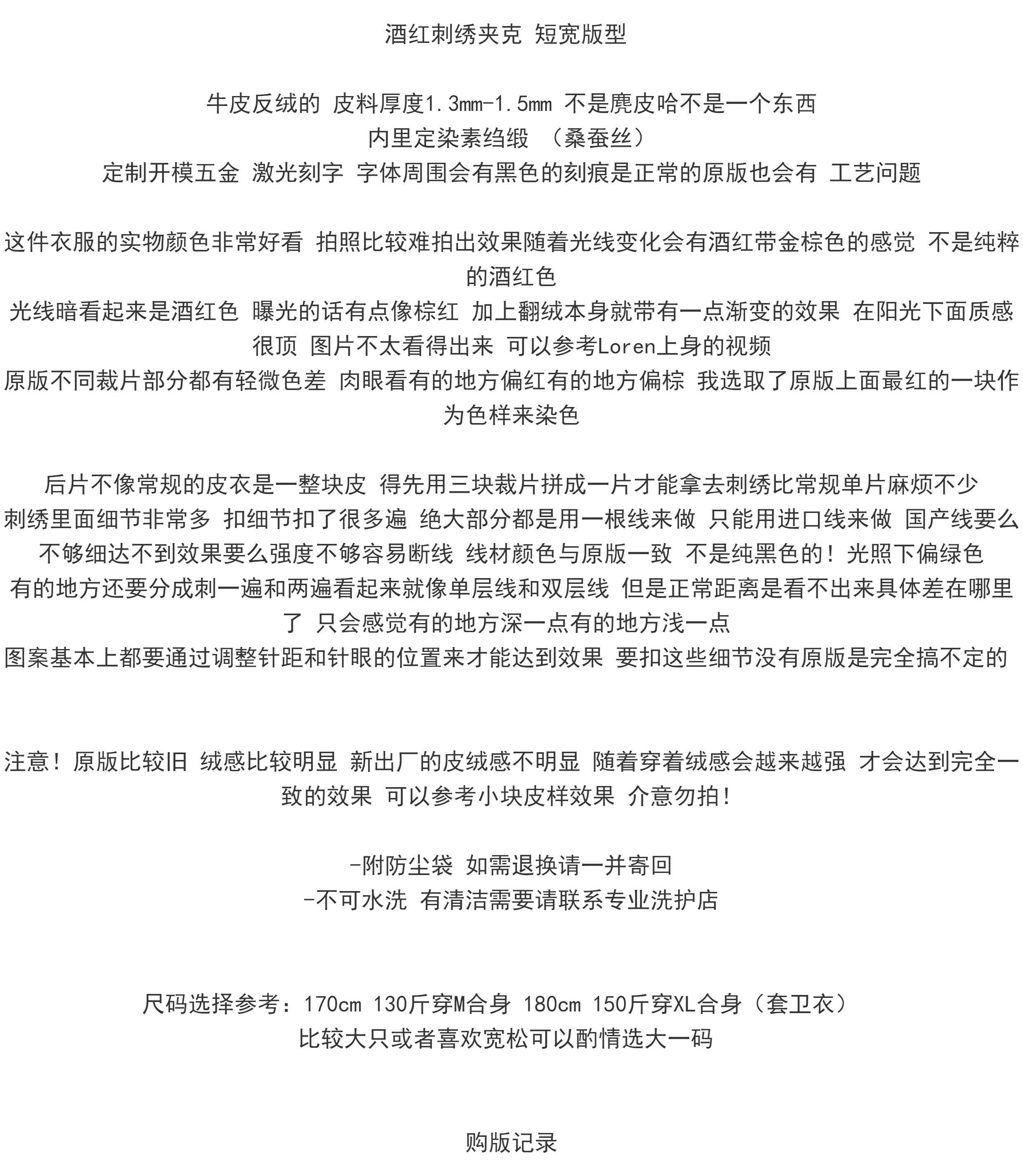 Loren's Same Style Erd Melancholic Rich Second-Generation Wine Red Jacket, Genuine Leather Suede Embroidered Short Wide Leather Jacket Bomber