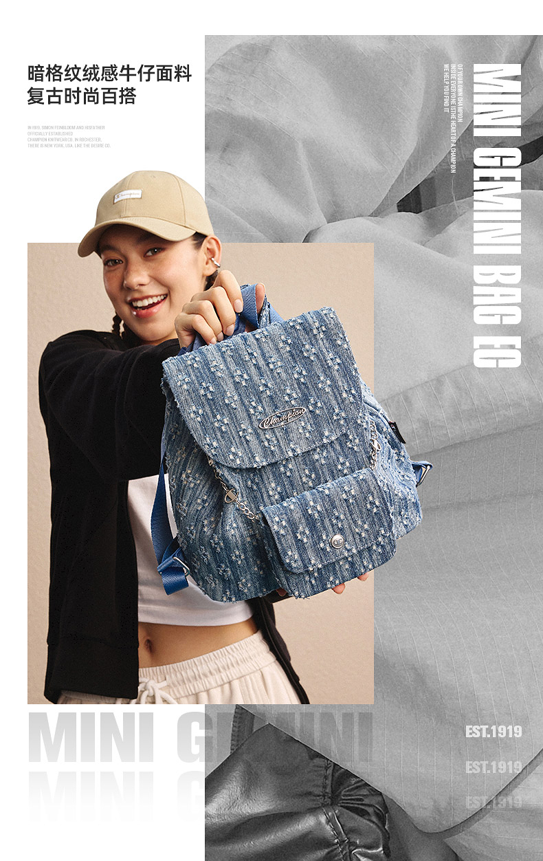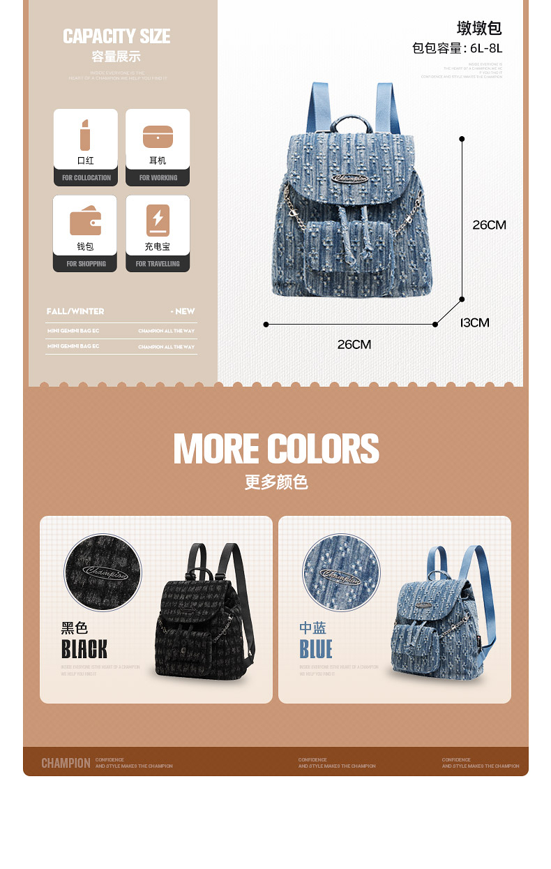 Champion Small Backpack 25 Autumn and Winter New Mini Puffer Bag Small Chanel-Style Travel and Commuting Backpack