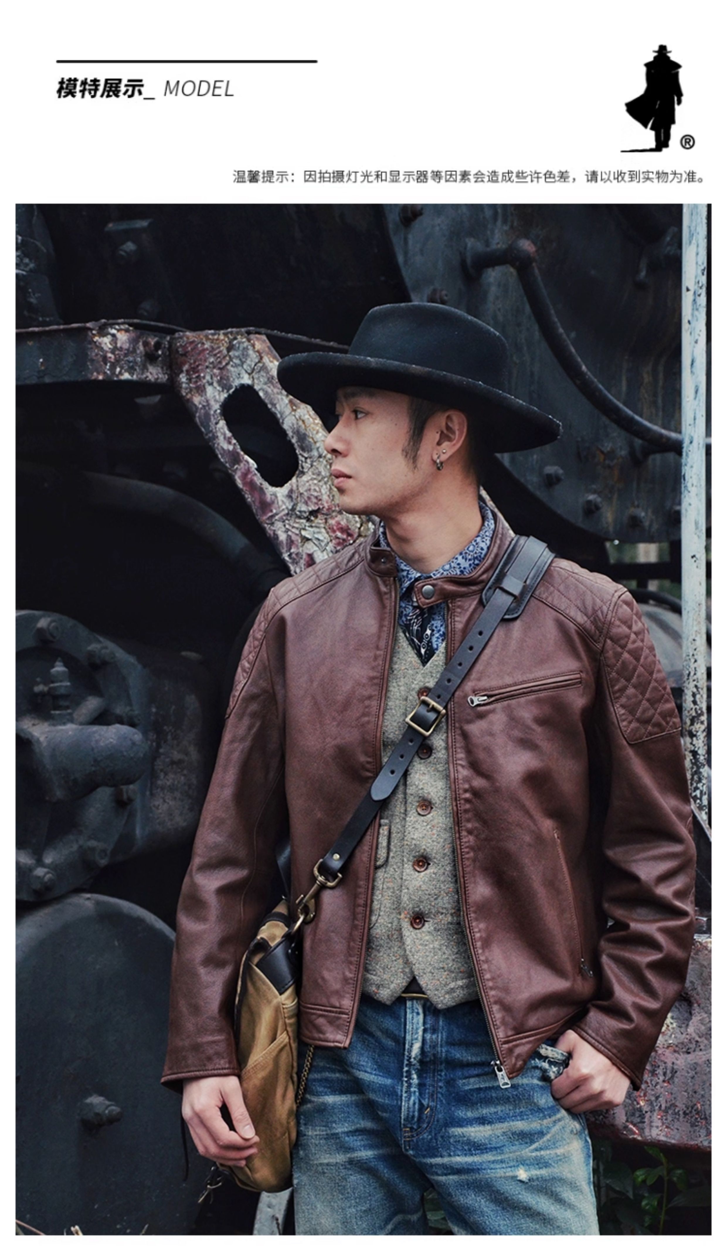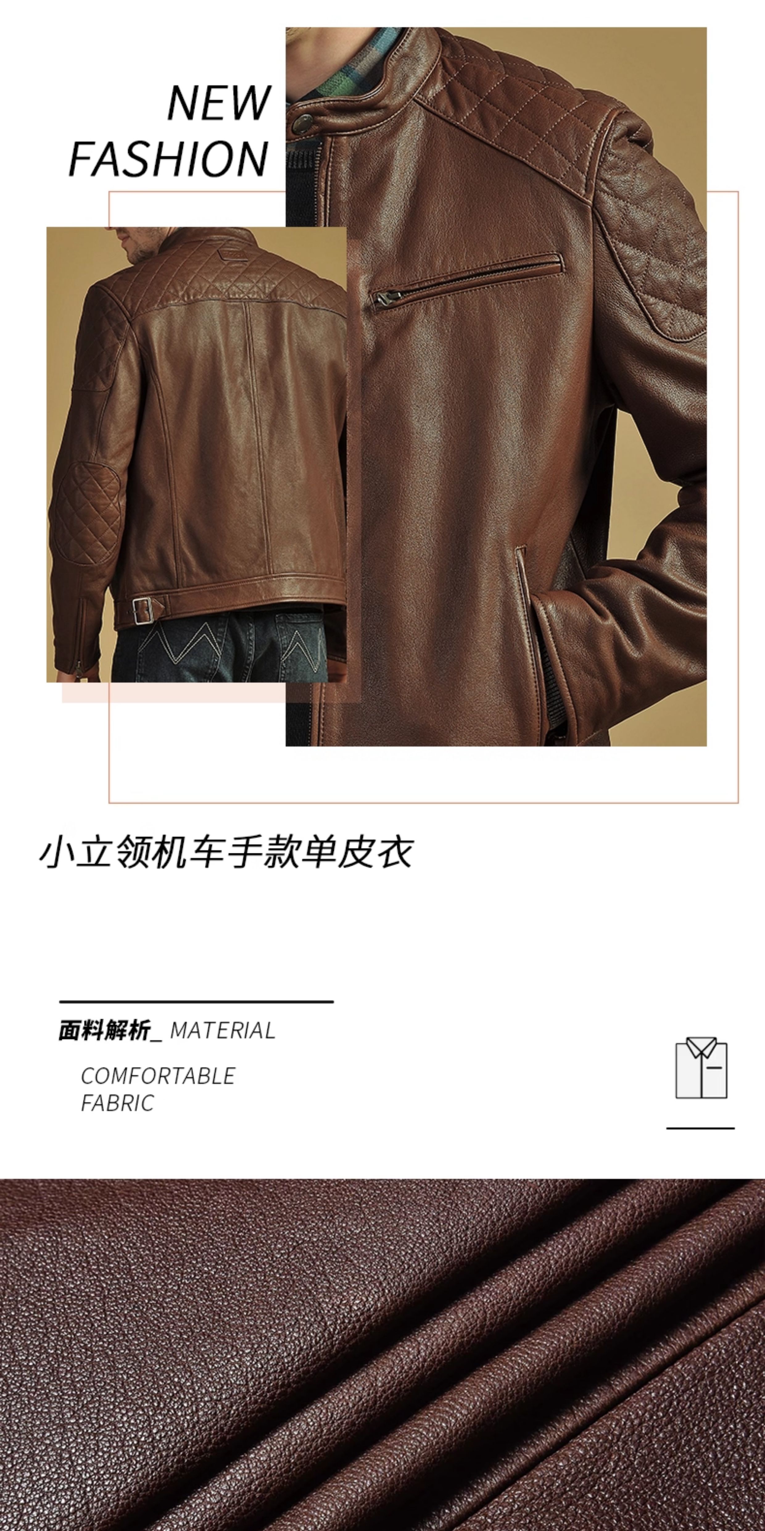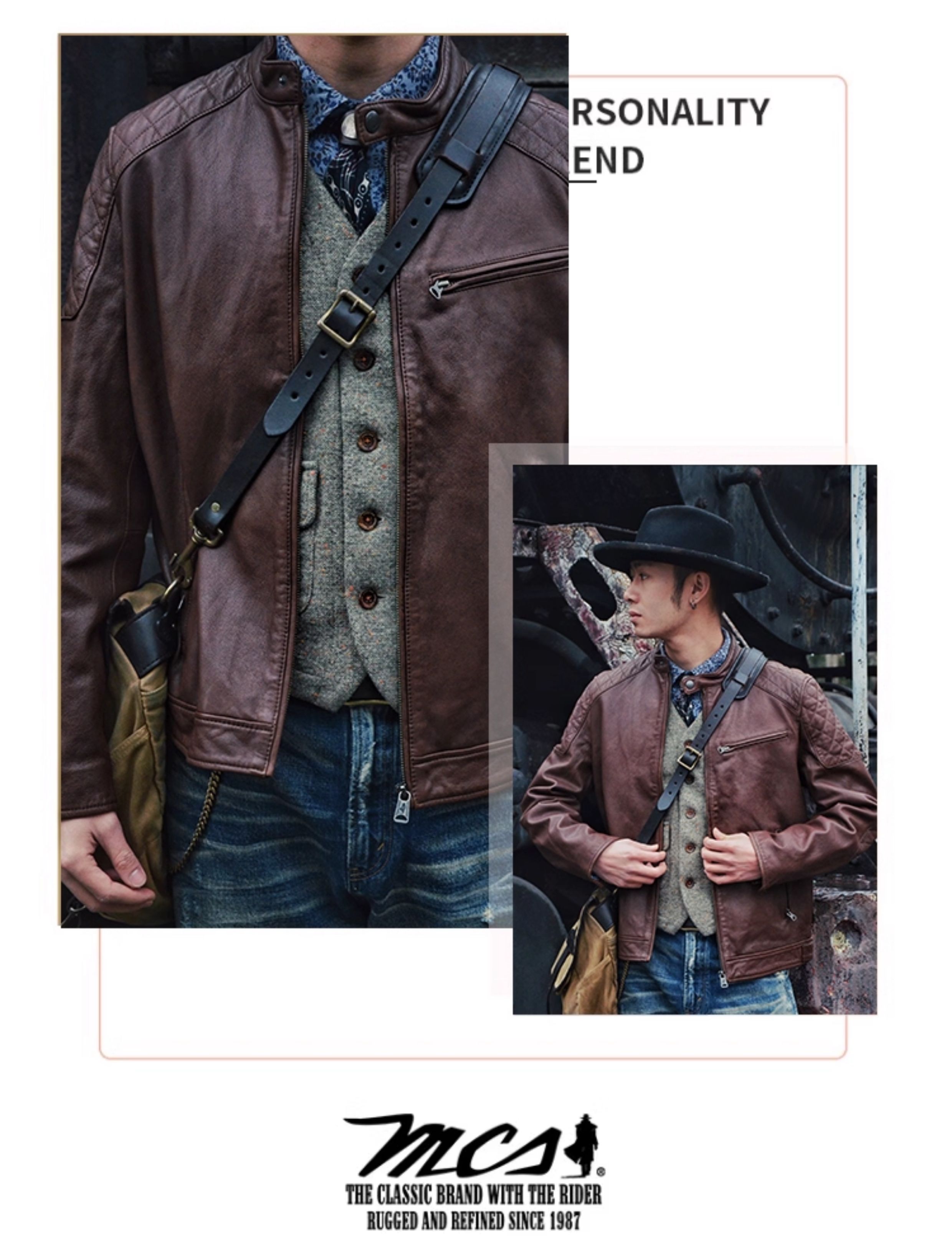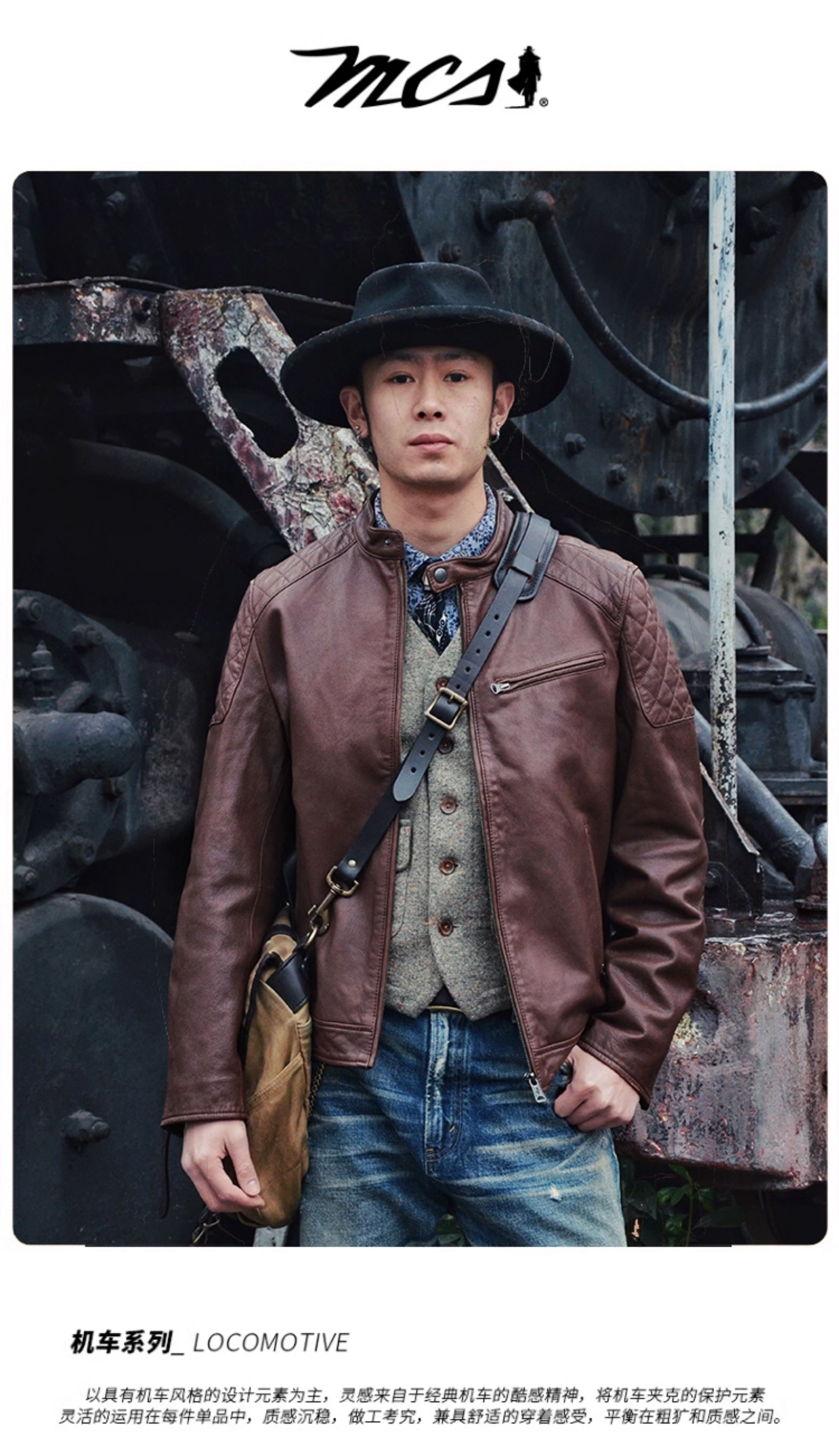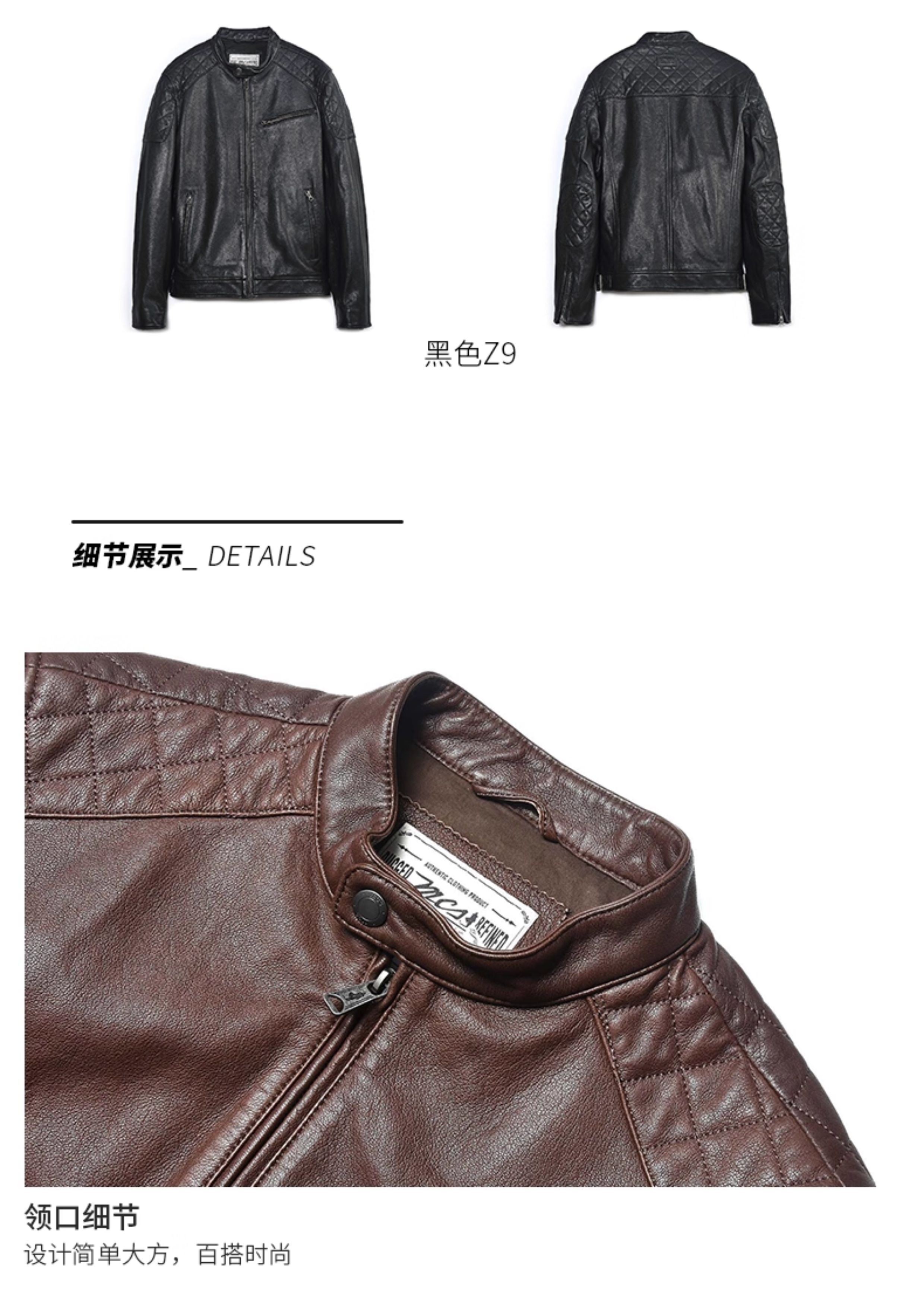 Mcs Is Derived from Marlboro, a Men's Stand-Collar Biker Sheepskin Genuine Leather Jacket, Slim-Fit Leather Jacket