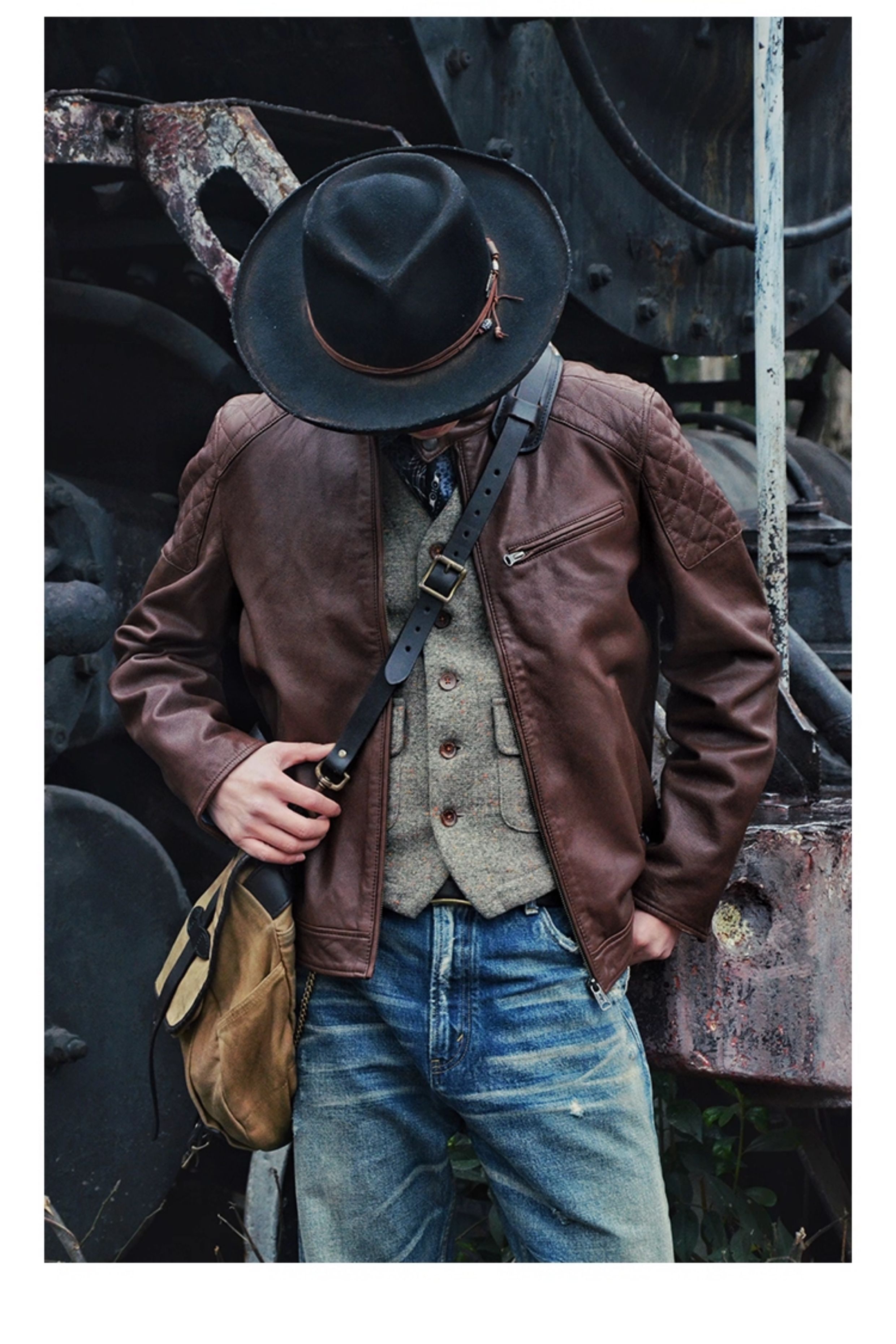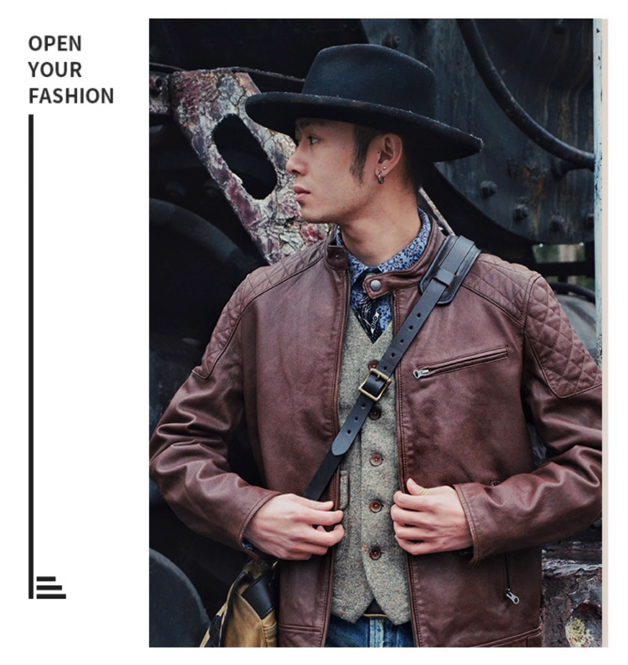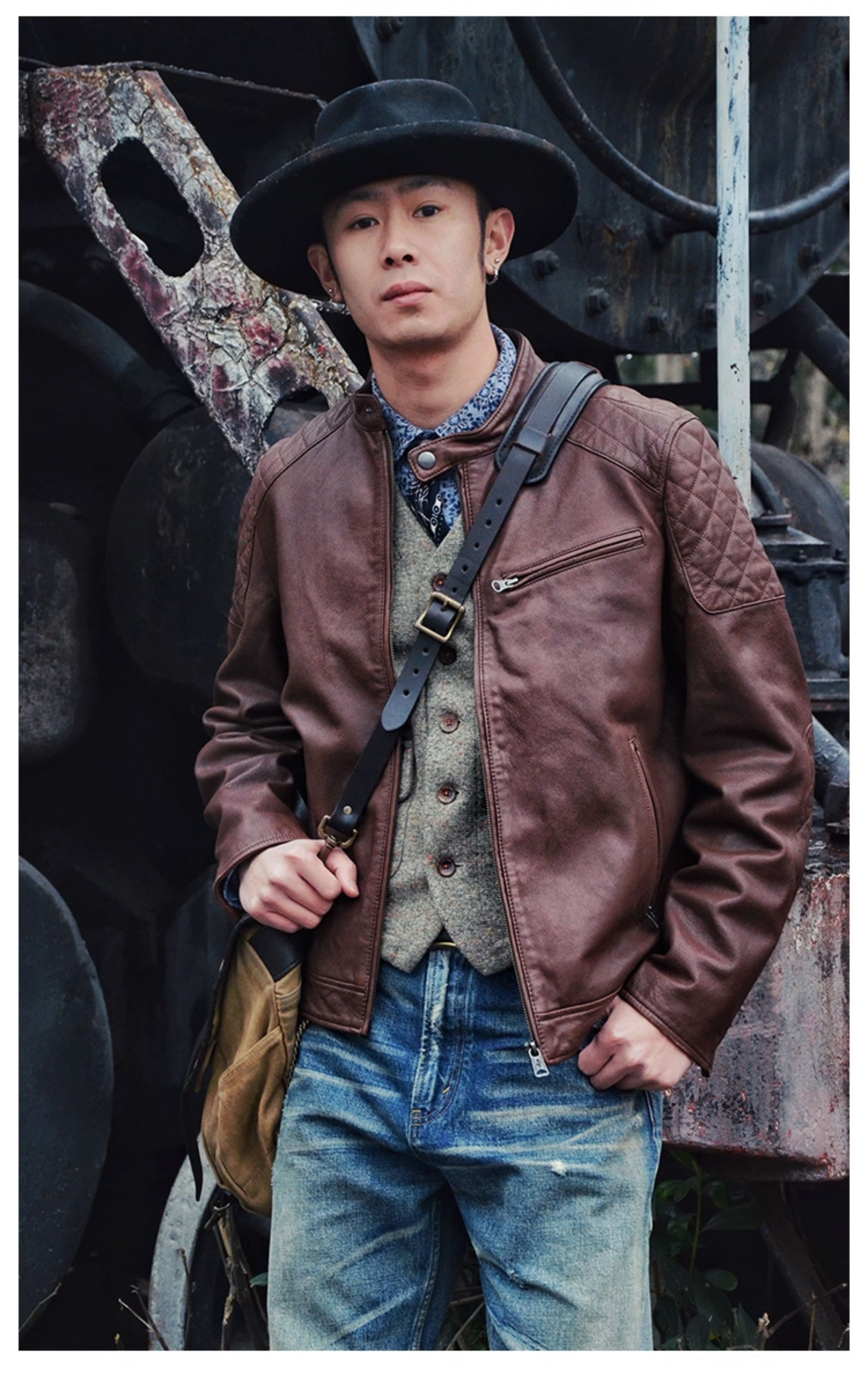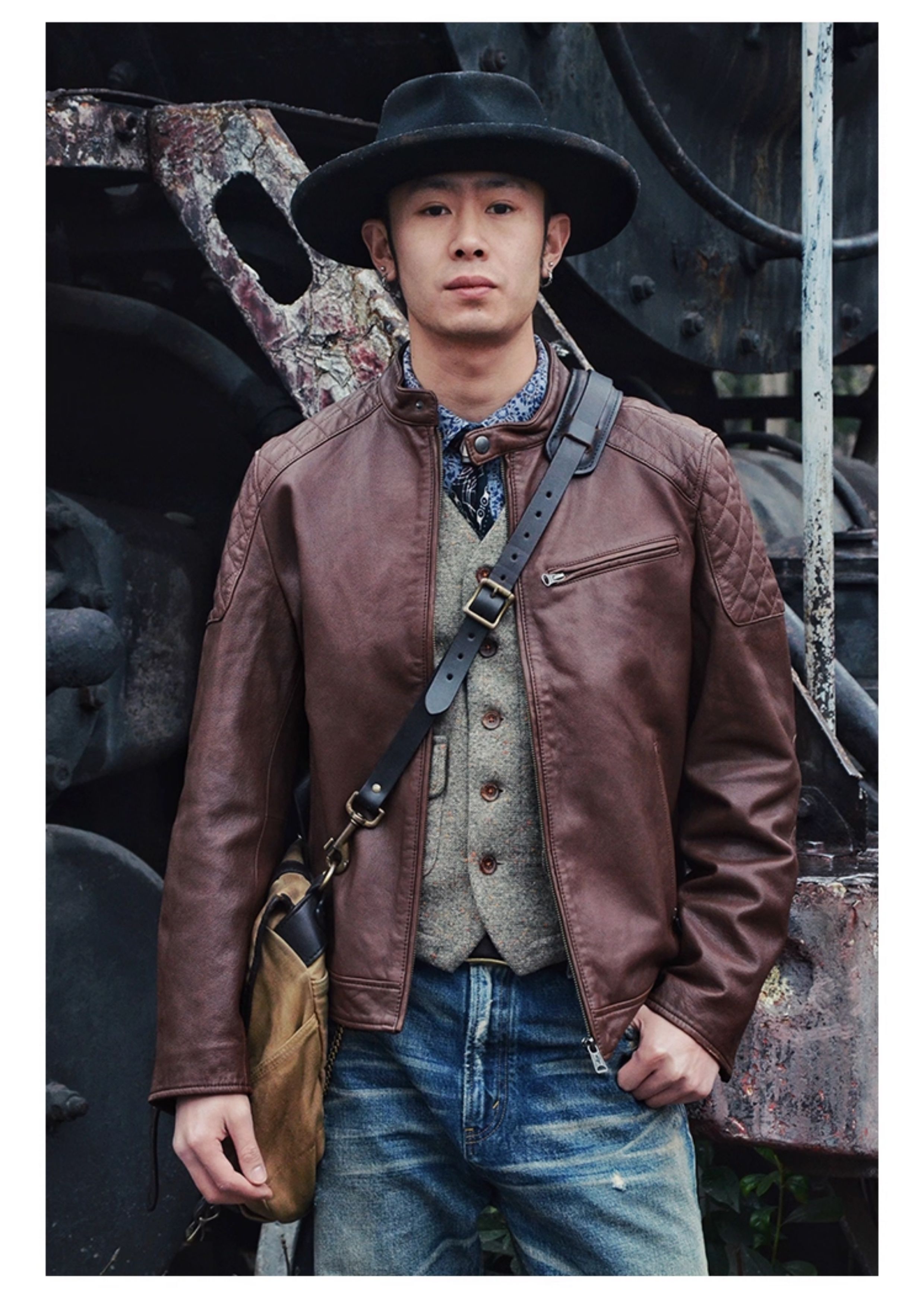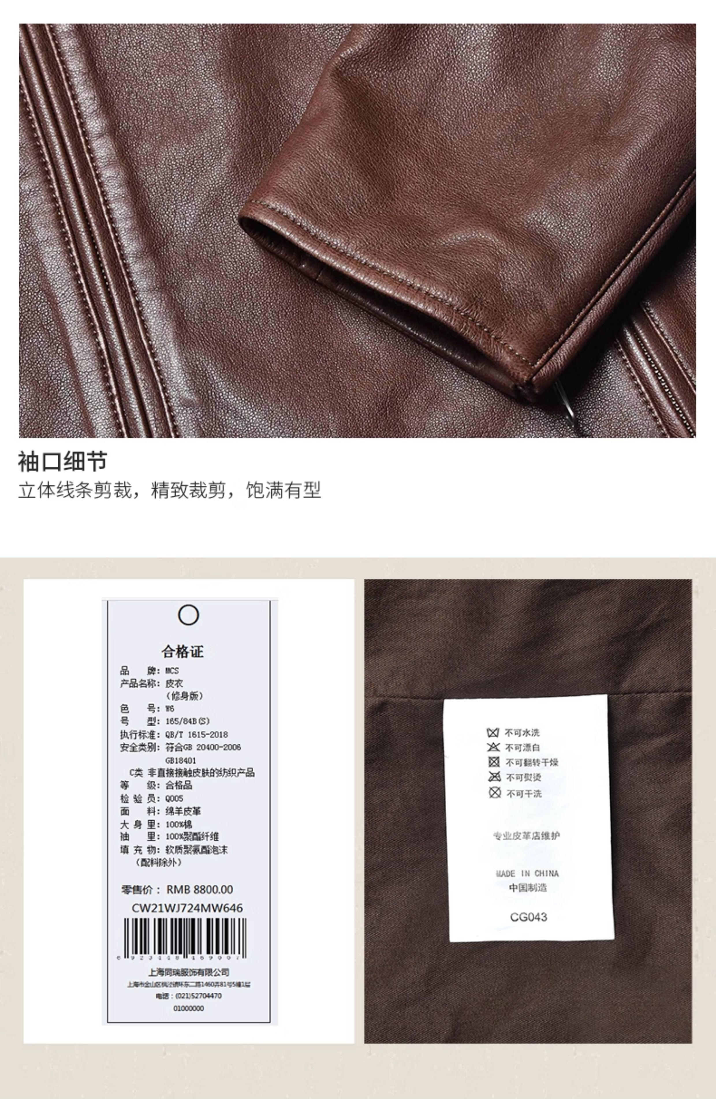 Mcs Is Derived from Marlboro, a Men's Stand-Collar Biker Sheepskin Genuine Leather Jacket, Slim-Fit Leather Jacket