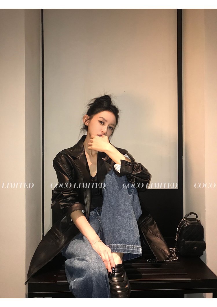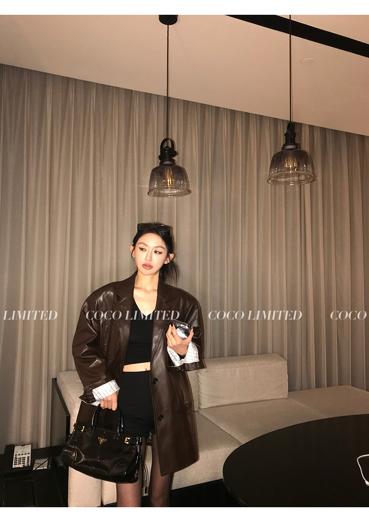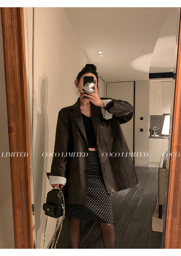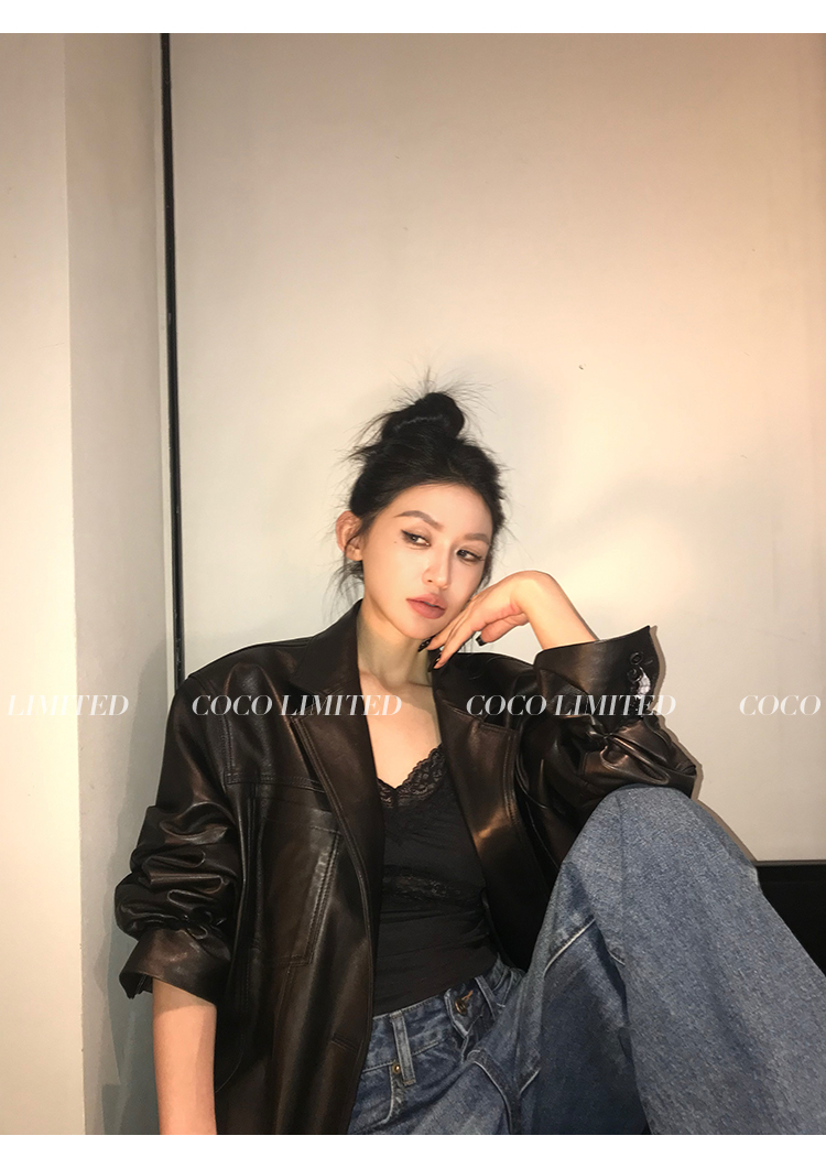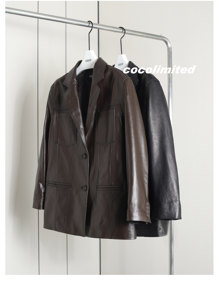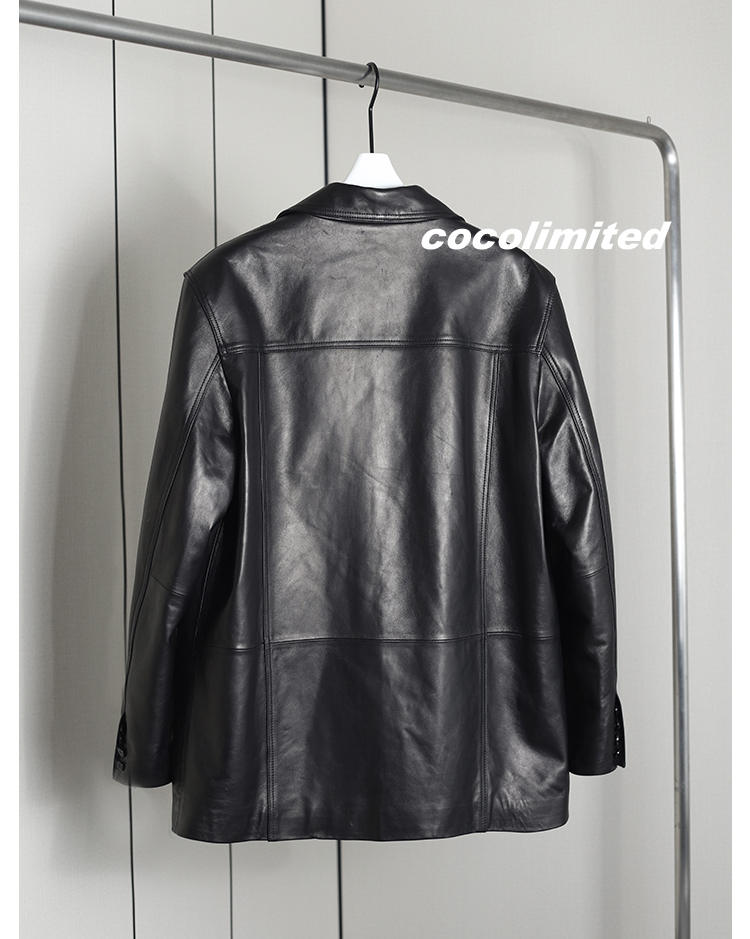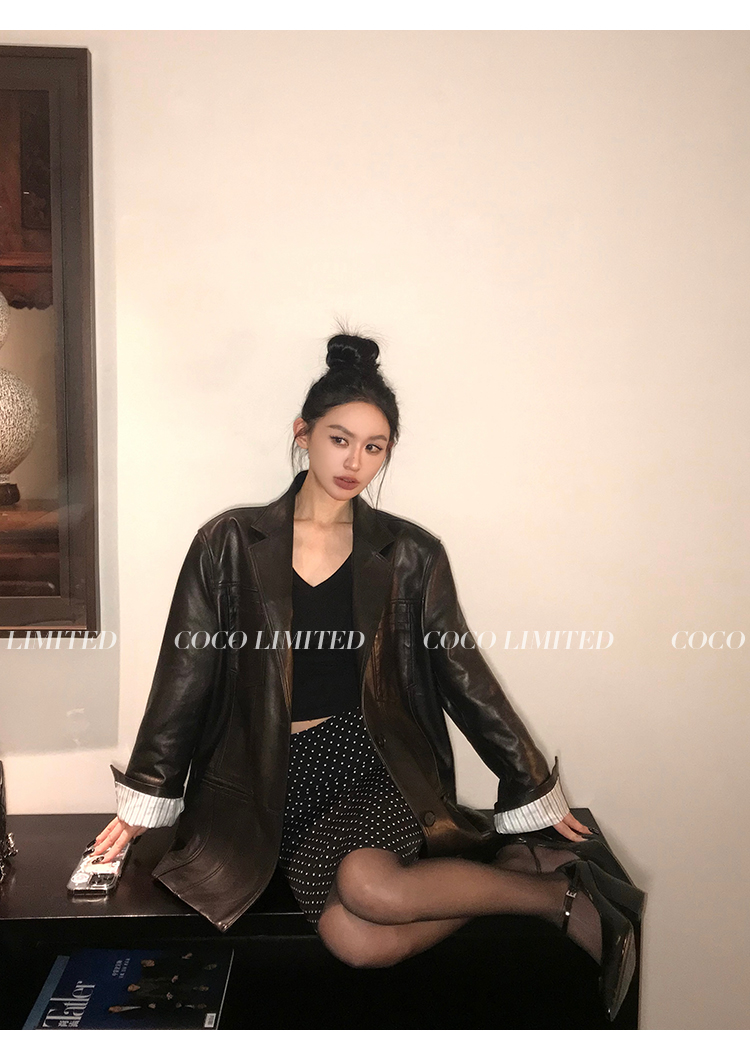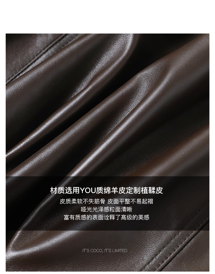 Coco Fur's New Imported Vegetable-Tanned Sheepskin Leather Jacket, Vintage Washed Coat for Women