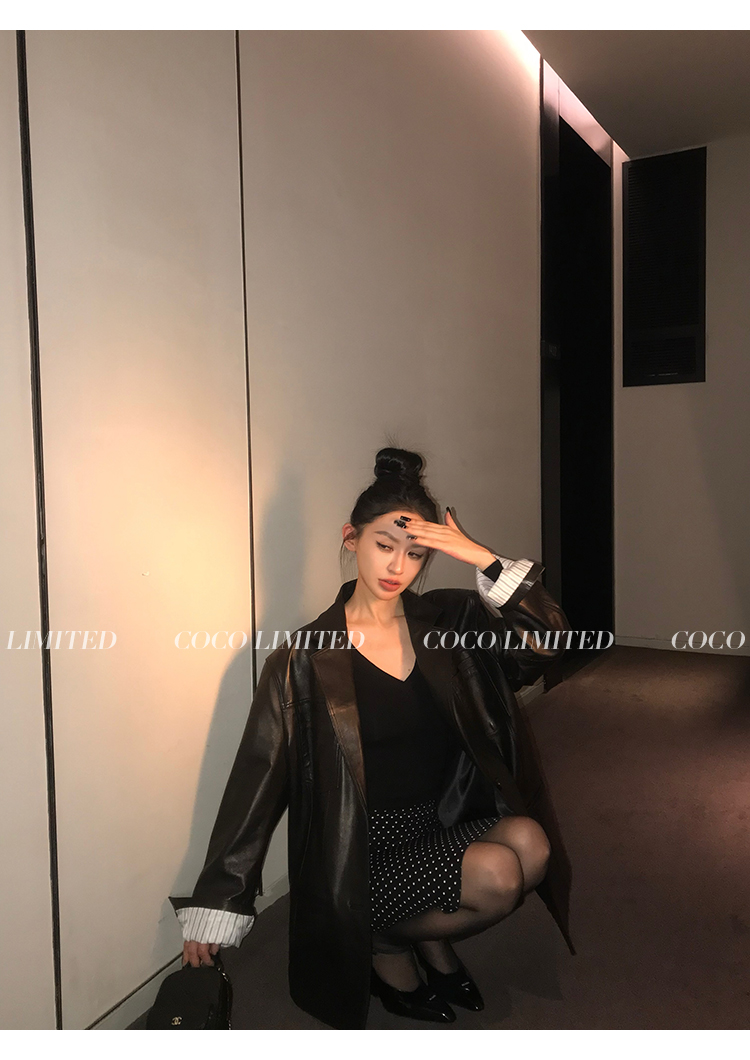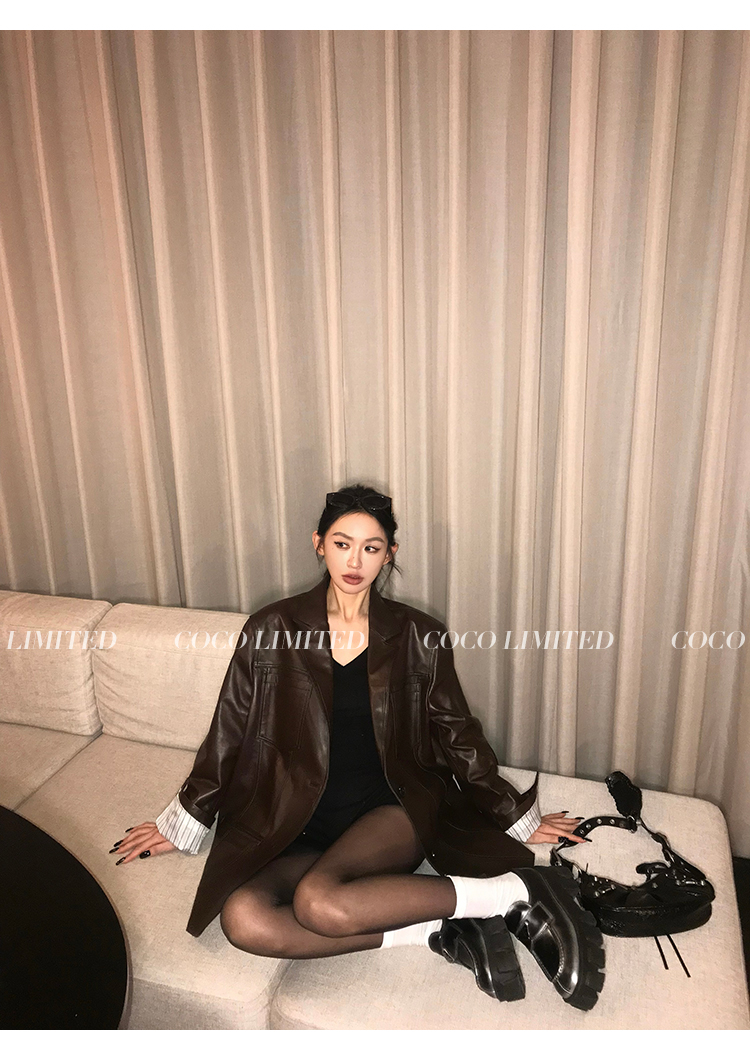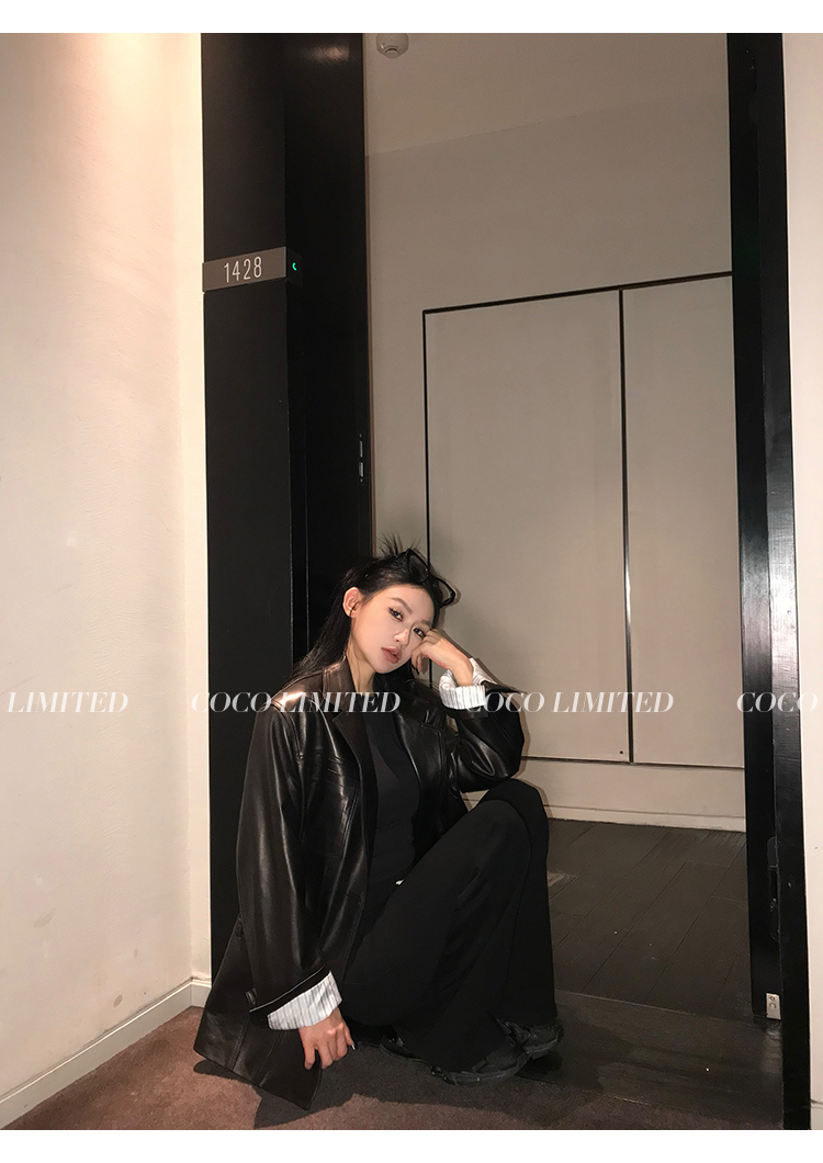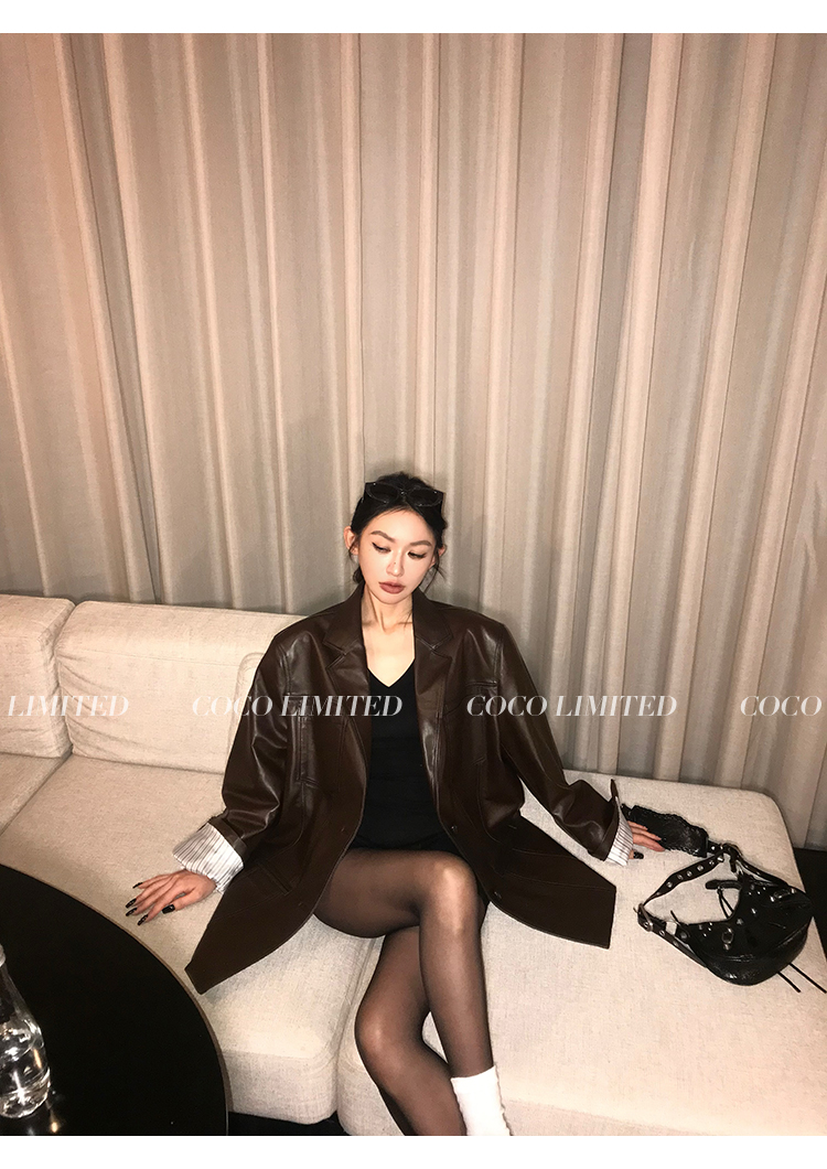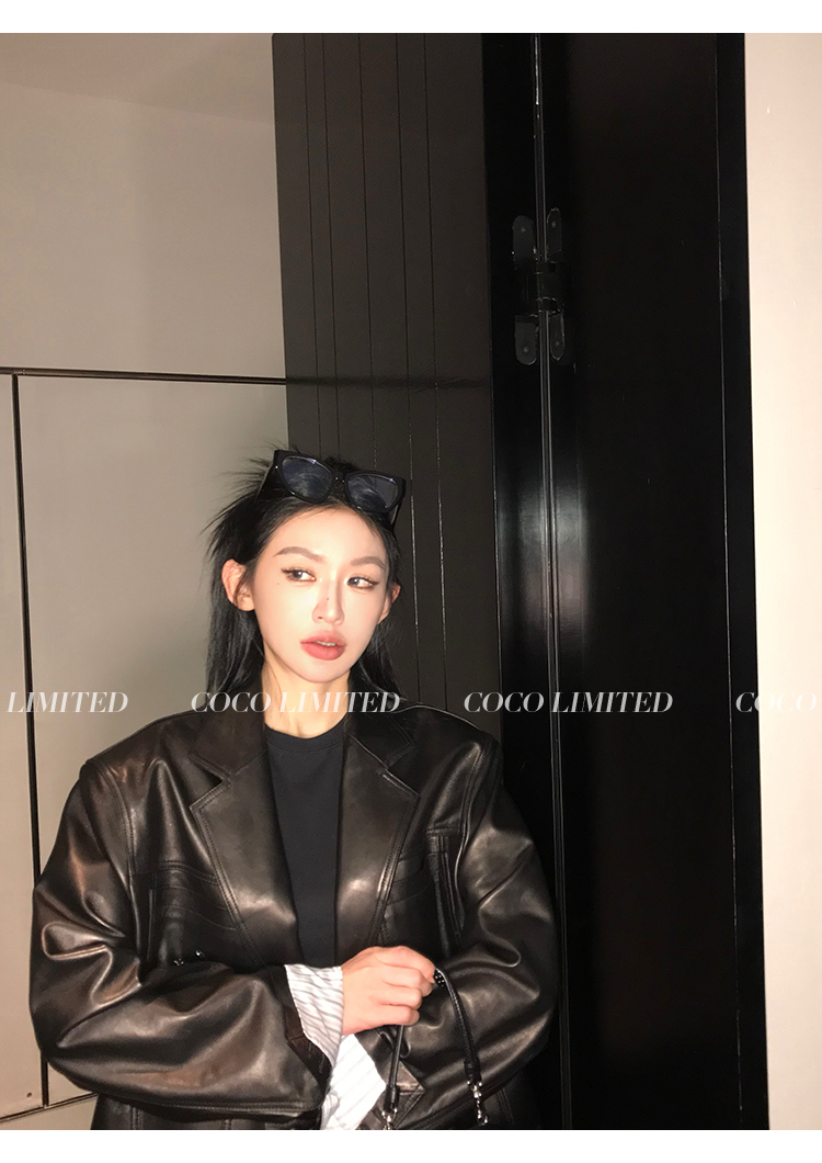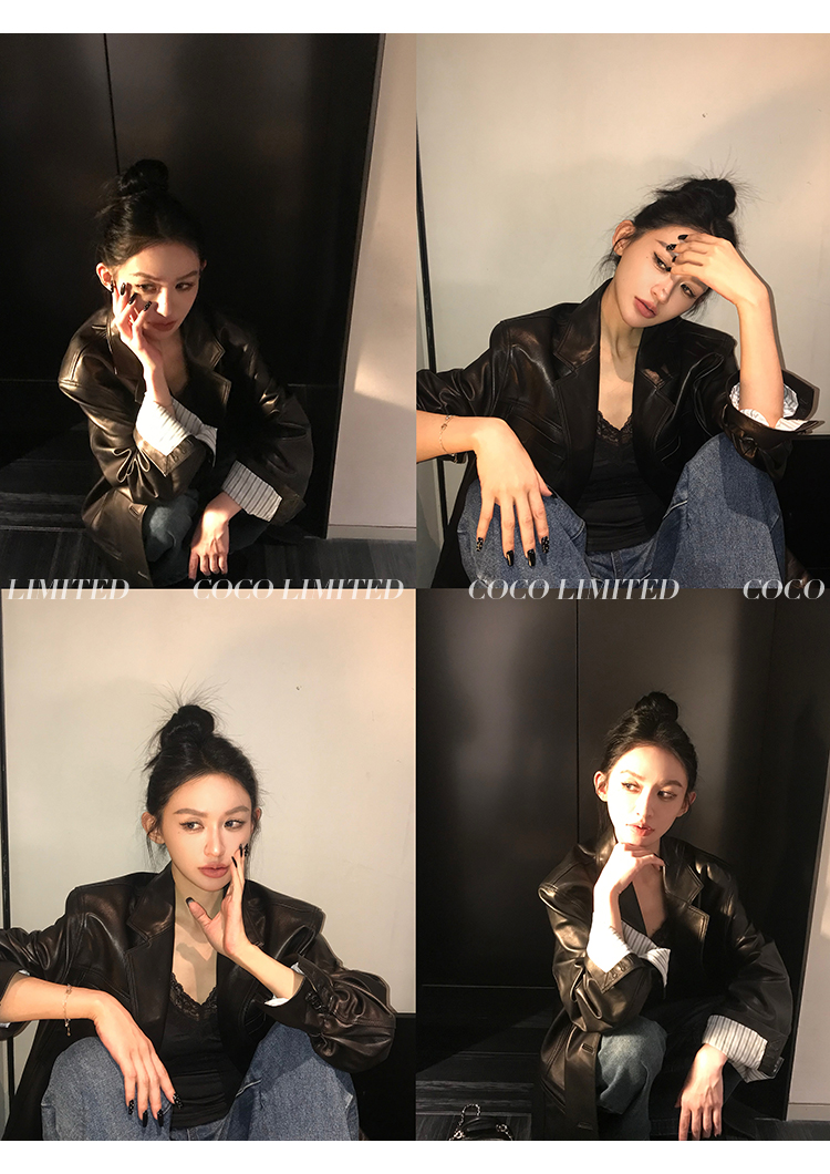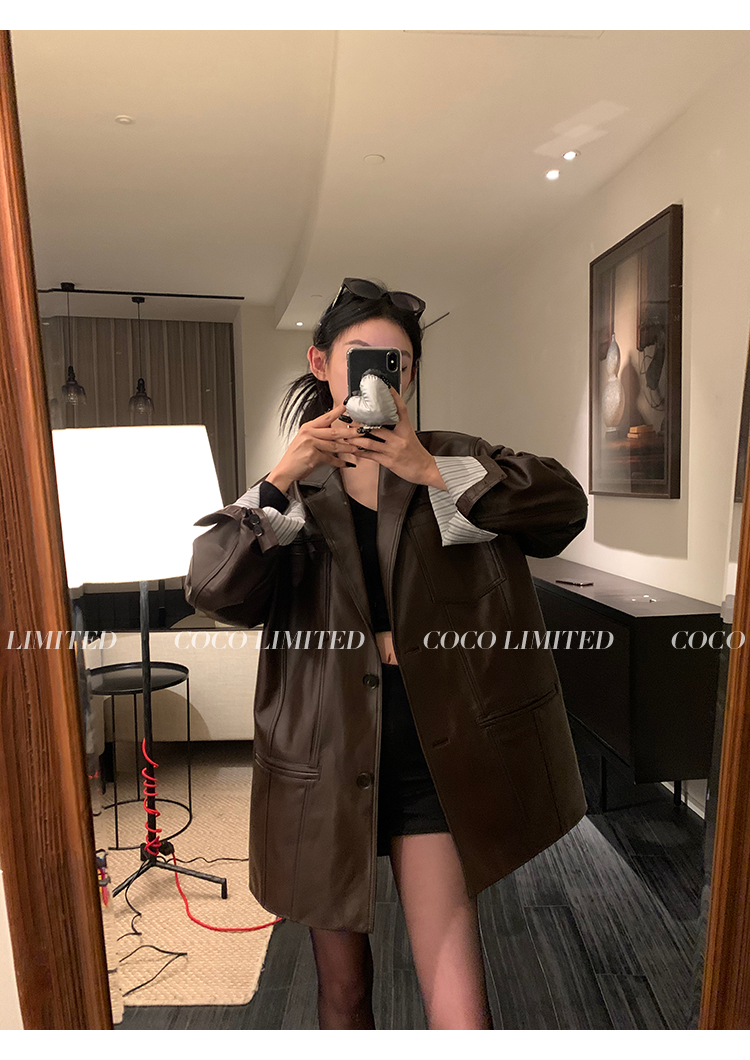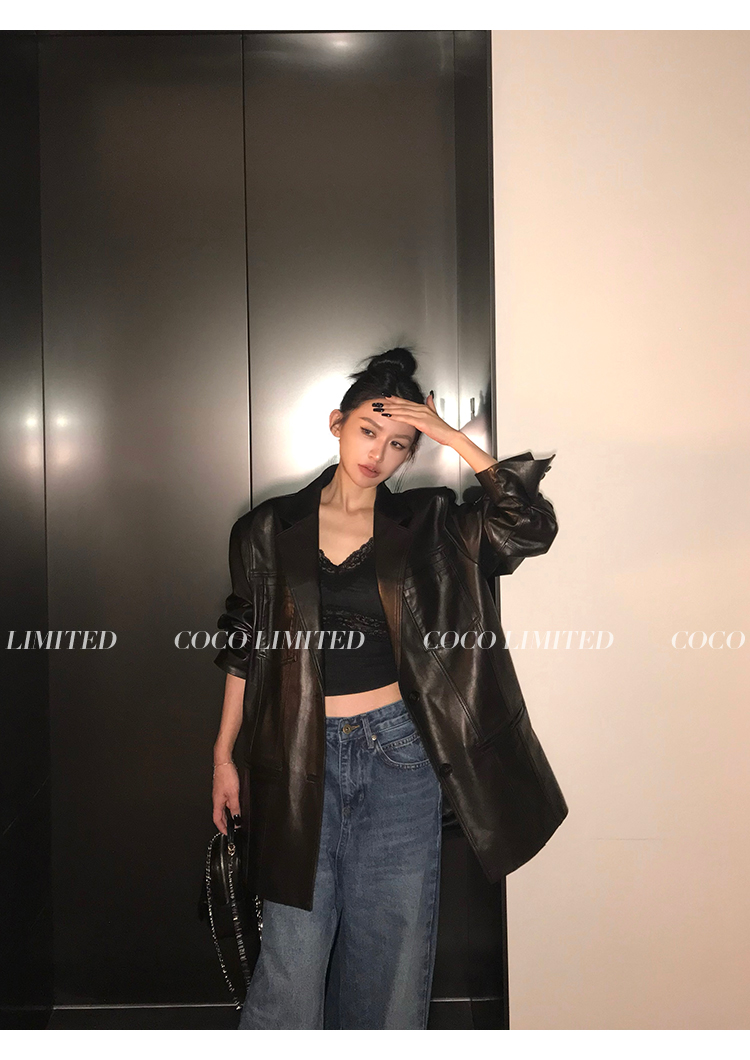 Coco Fur's New Imported Vegetable-Tanned Sheepskin Leather Jacket, Vintage Washed Coat for Women