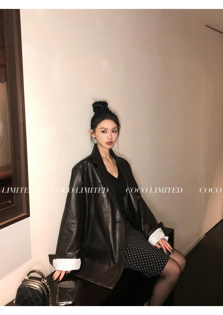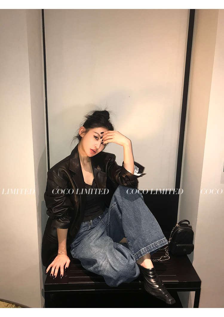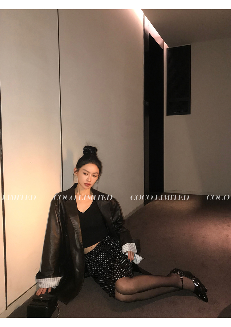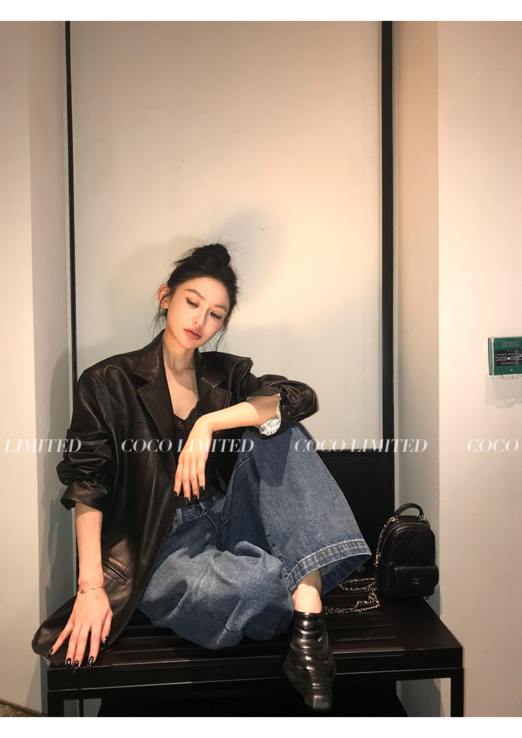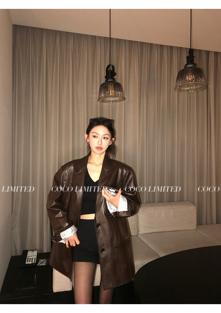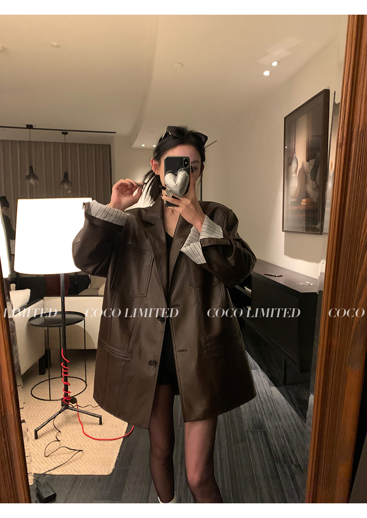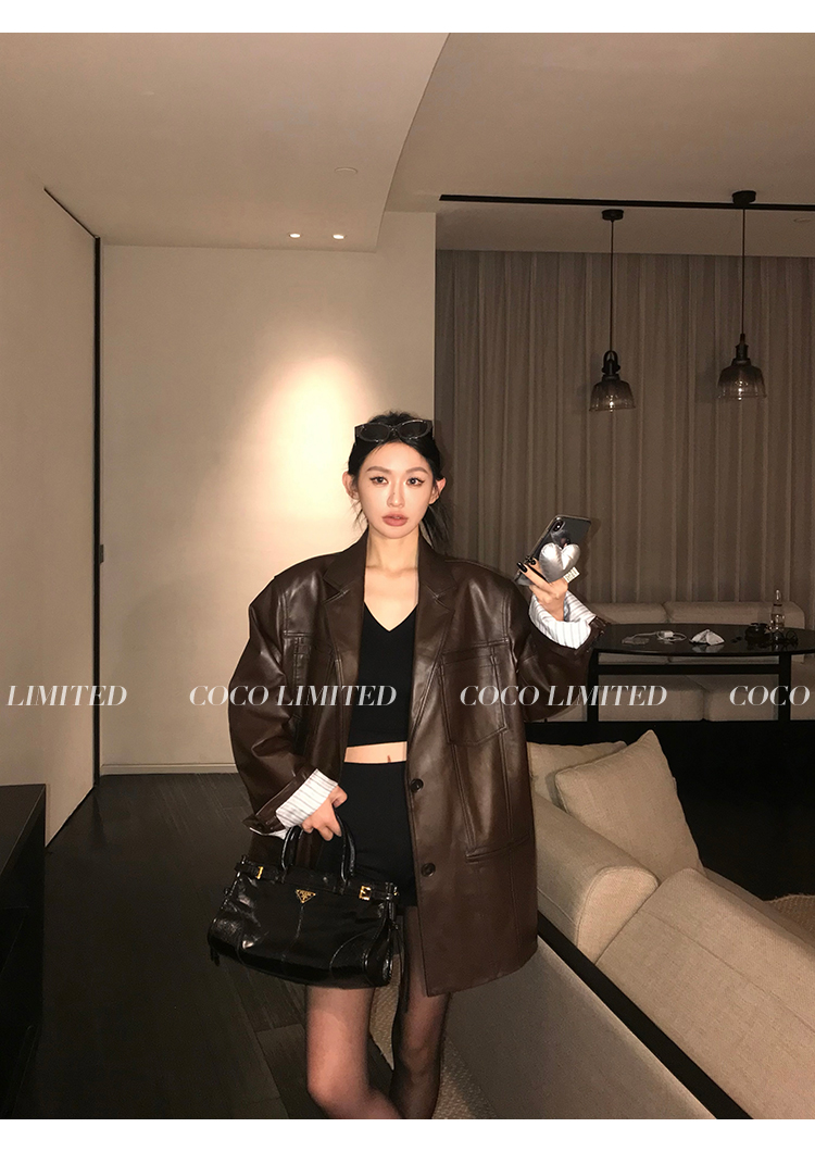 Coco Fur's New Imported Vegetable-Tanned Sheepskin Leather Jacket, Vintage Washed Coat for Women