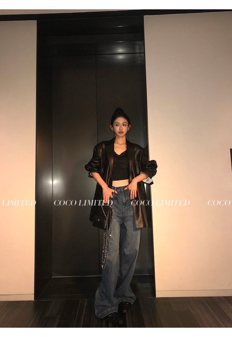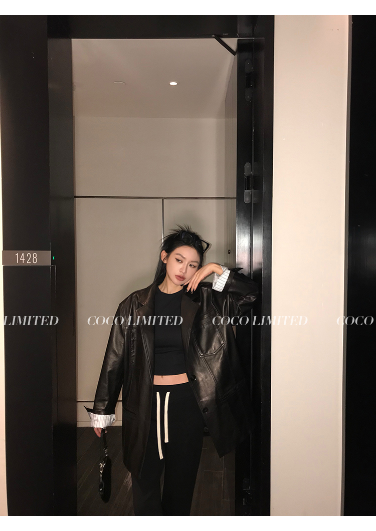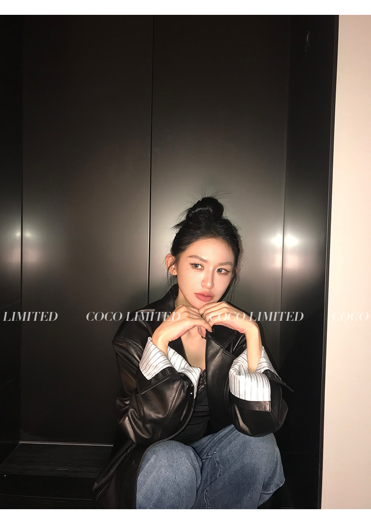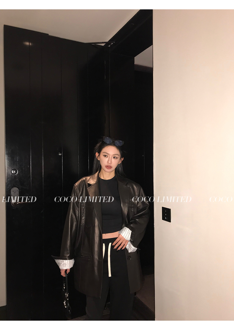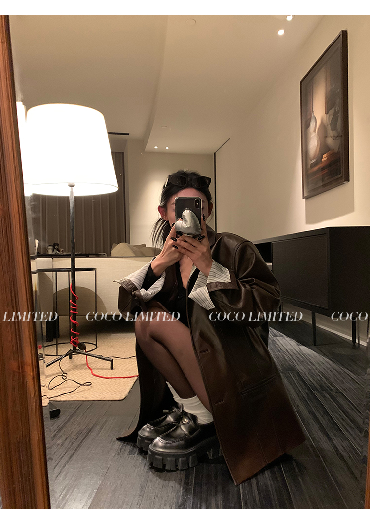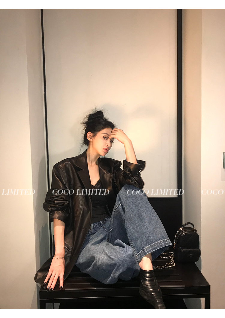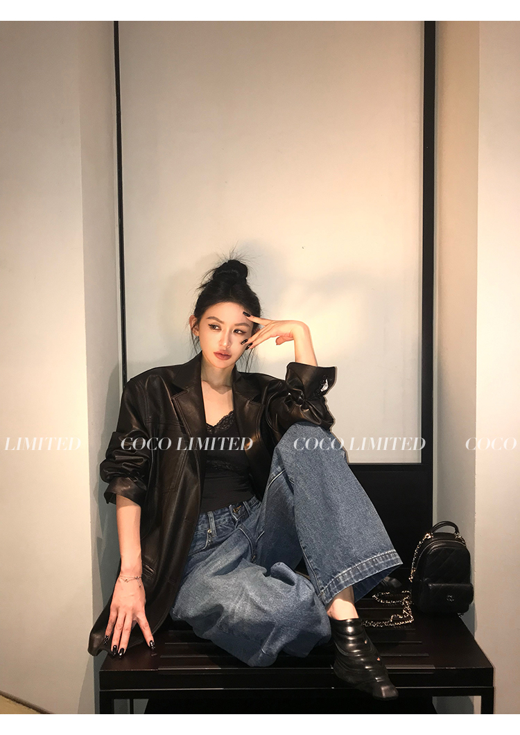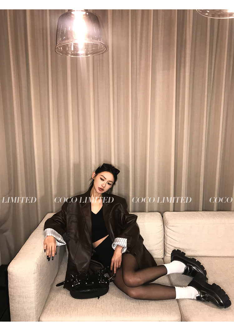 Coco Fur's New Imported Vegetable-Tanned Sheepskin Leather Jacket, Vintage Washed Coat for Women