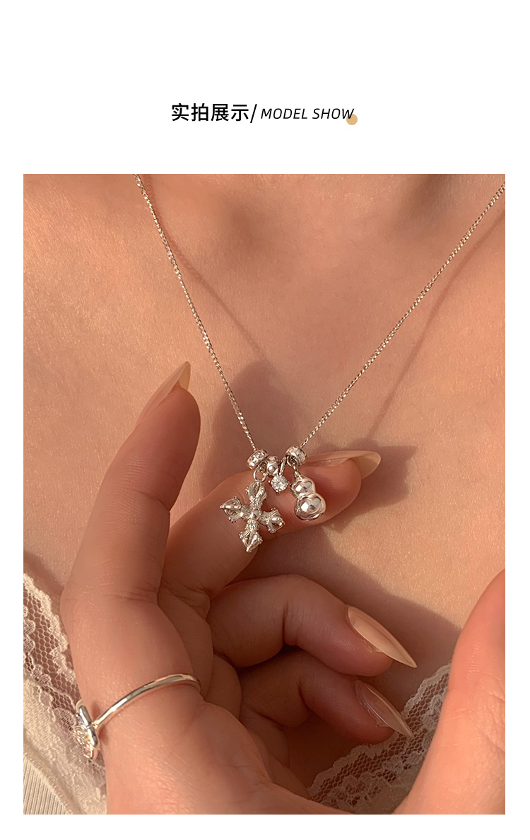 Sterling Silver Vajra Gourd Necklace for Women, Light Luxury, High-End Fashion, Cross Clavicle Chain, Unique and Trendy Jewelry