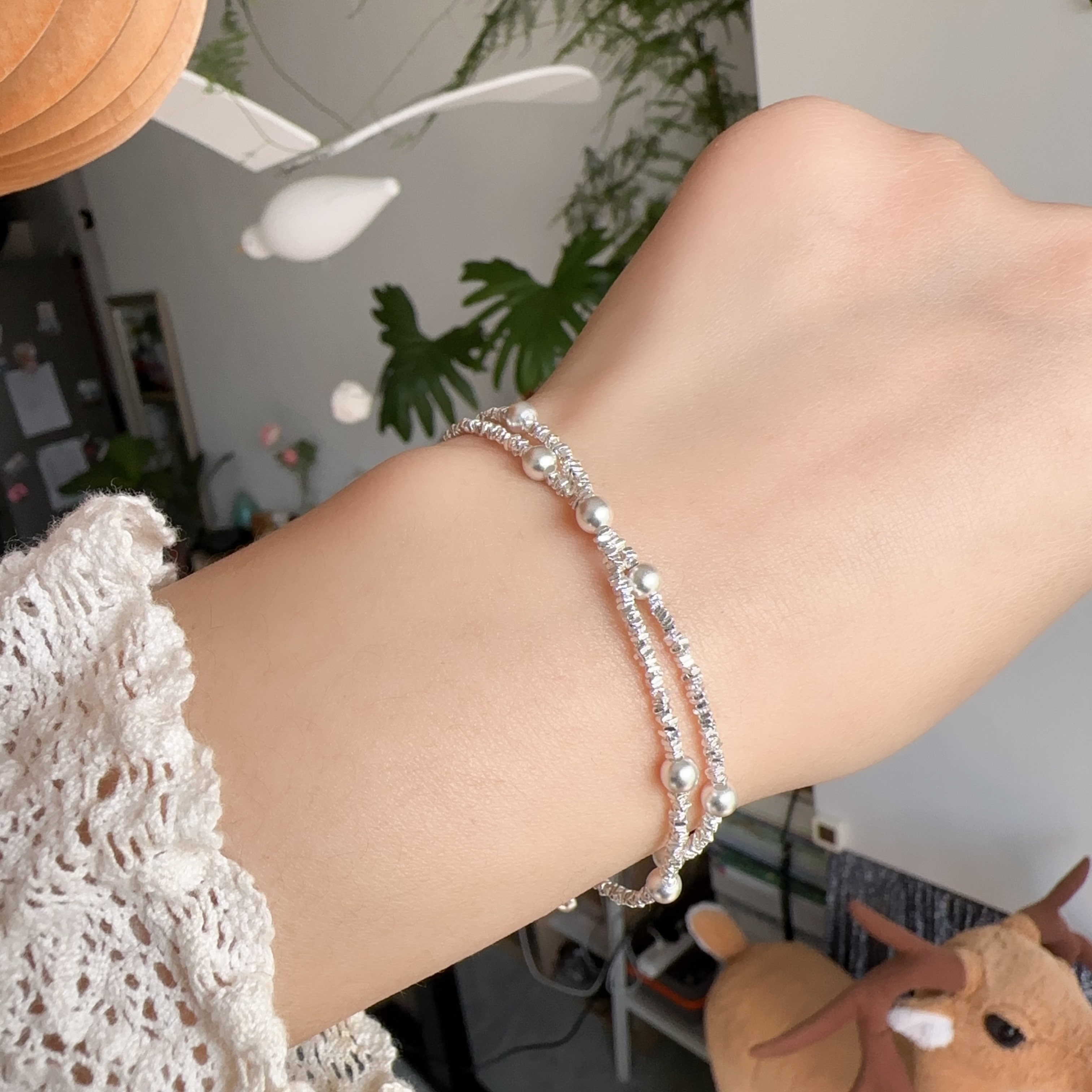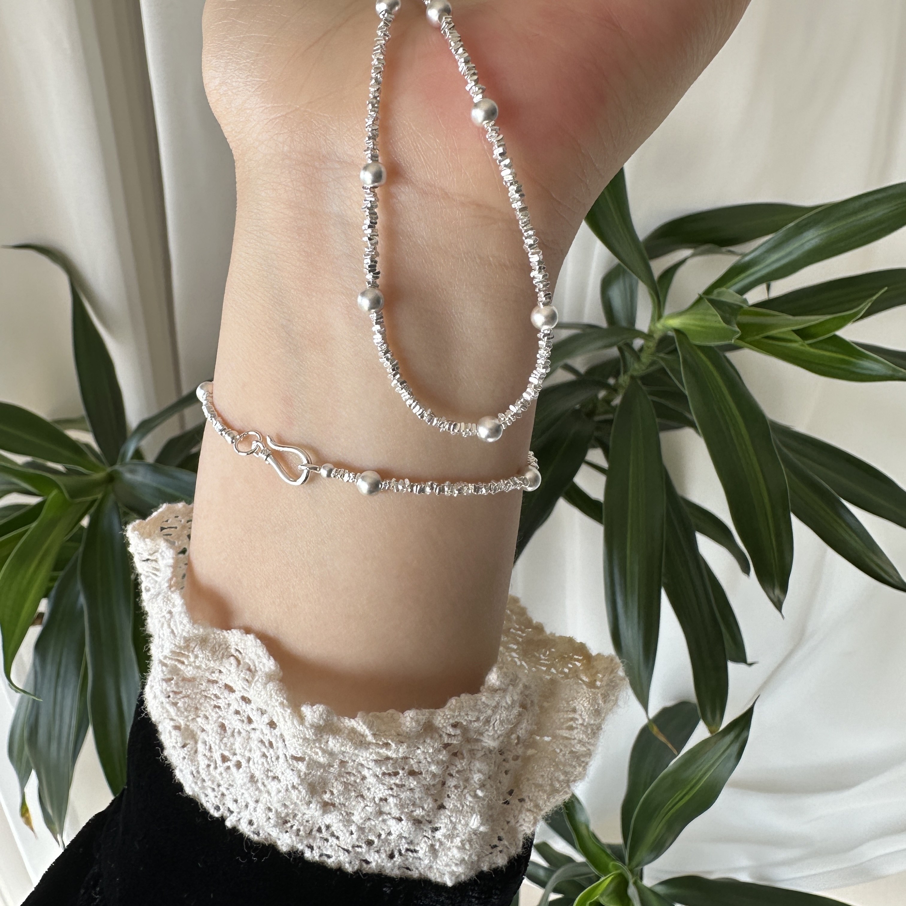 Pure Silver Bracelet 999 Sterling Silver Starry Silver Fragments Light Luxury Pure Silver Design Simple Handmade Clasp Classic Plain Style