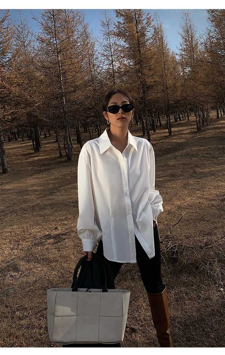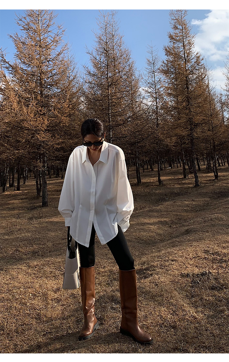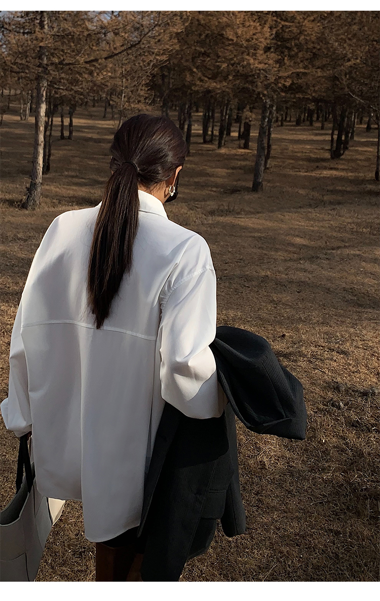 Neva Hu White Long-Sleeved Shirt for Women, Stylish Design, 2025 New Korean Version, Retro Hong Kong Style, Casual and Versatile Top