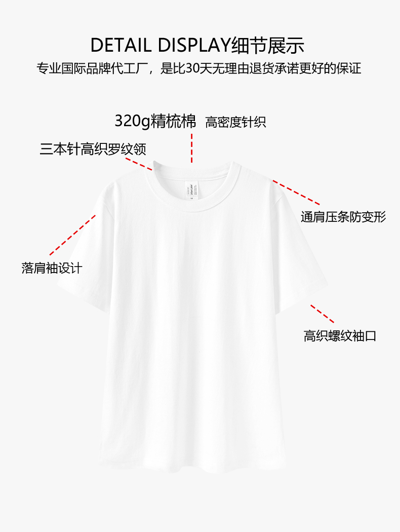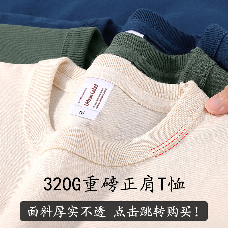 Three-Needle 320g Heavyweight Pure Cotton Short-Sleeve T-Shirt for Men, Non-See-Through, Pure White, American-Style Loose Half-Sleeve Base Shirt