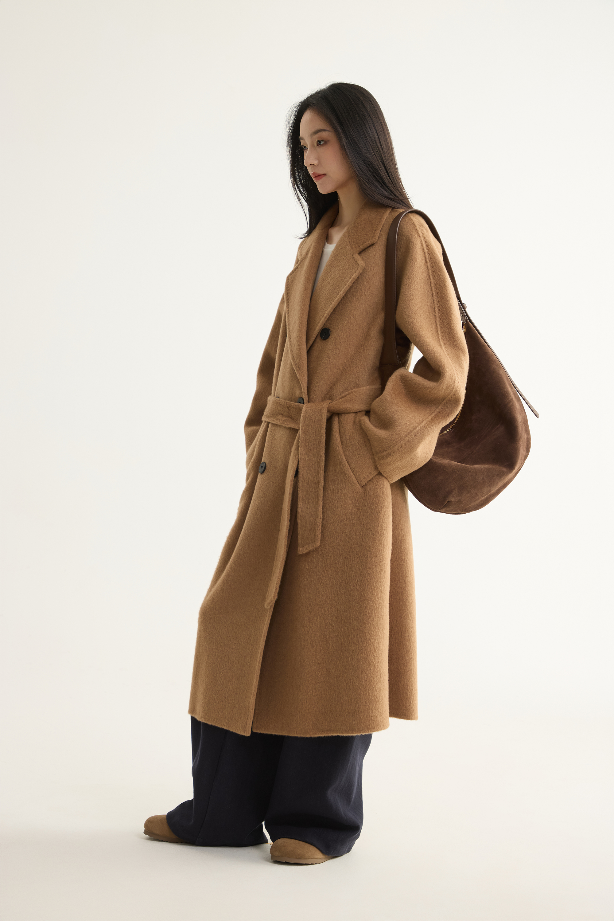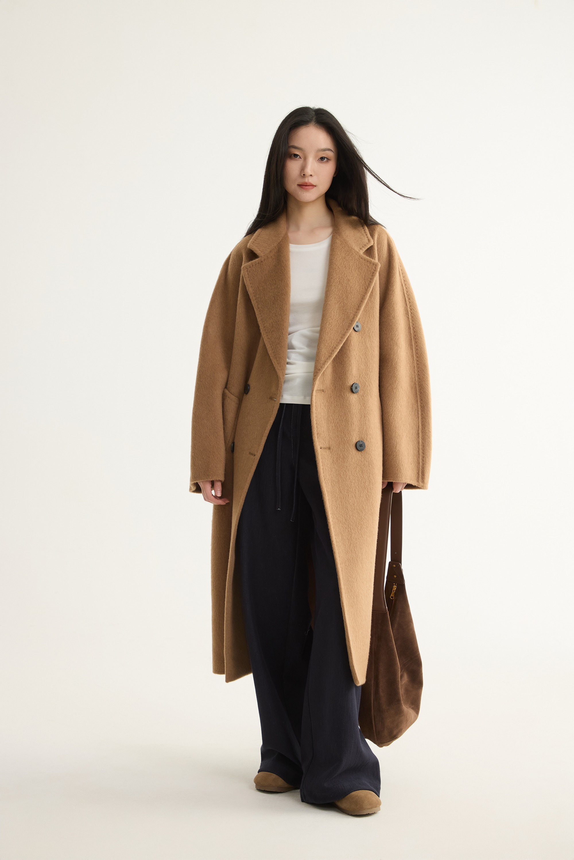 Fuxu 100% Yak Wool/Little Camel Wool/Beibei Mid-Length Coat for Women 101801 Double-Sided Woolen Coat
