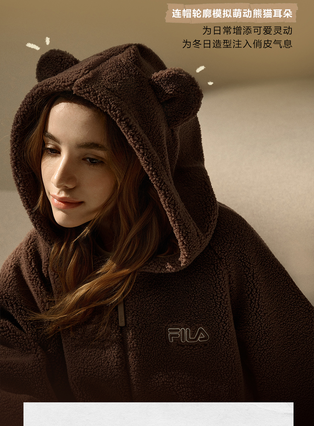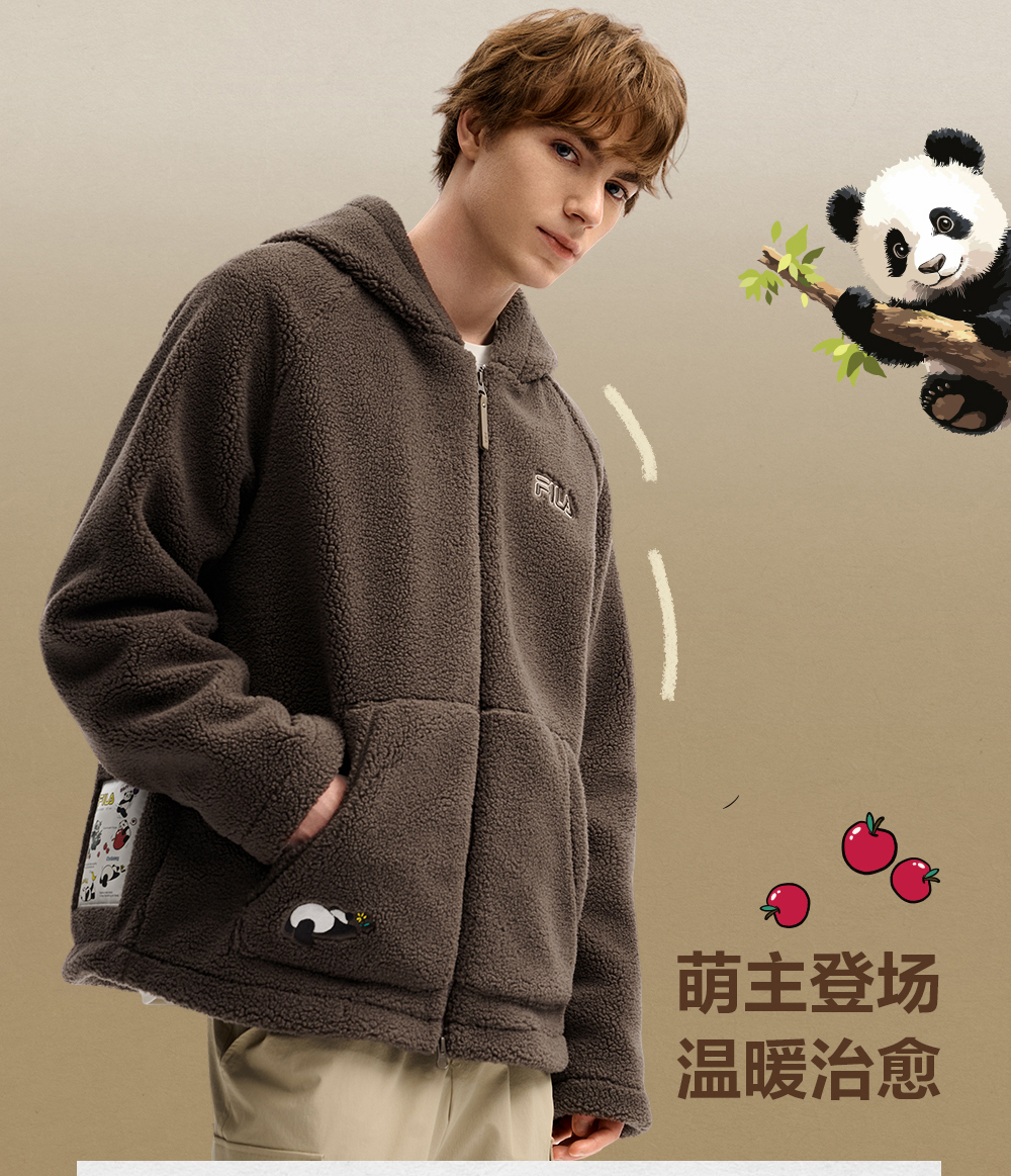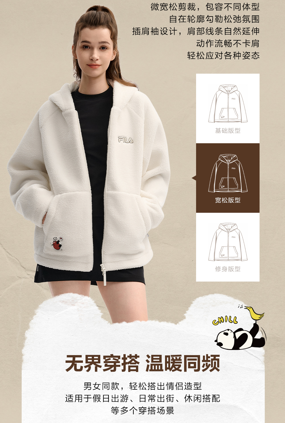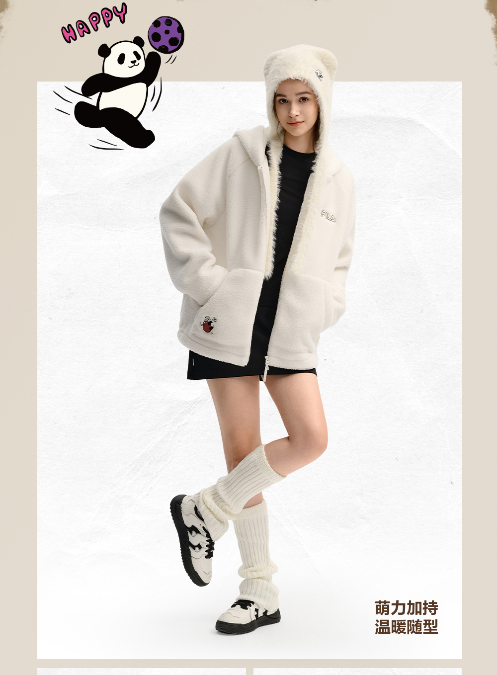 Fila Official Couple Knitted Hooded Jacket 25 Winter New Panda Faux Shearling Warm Casual Top