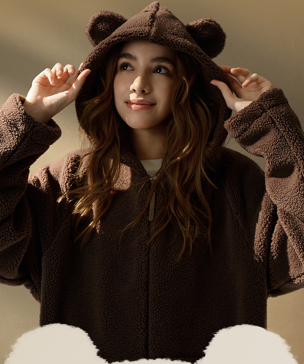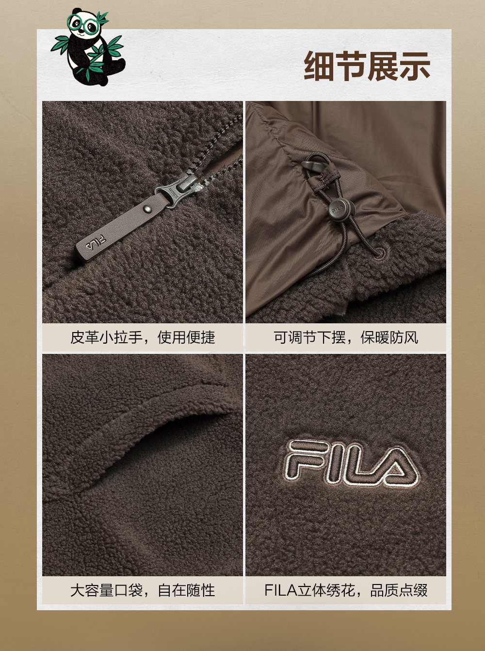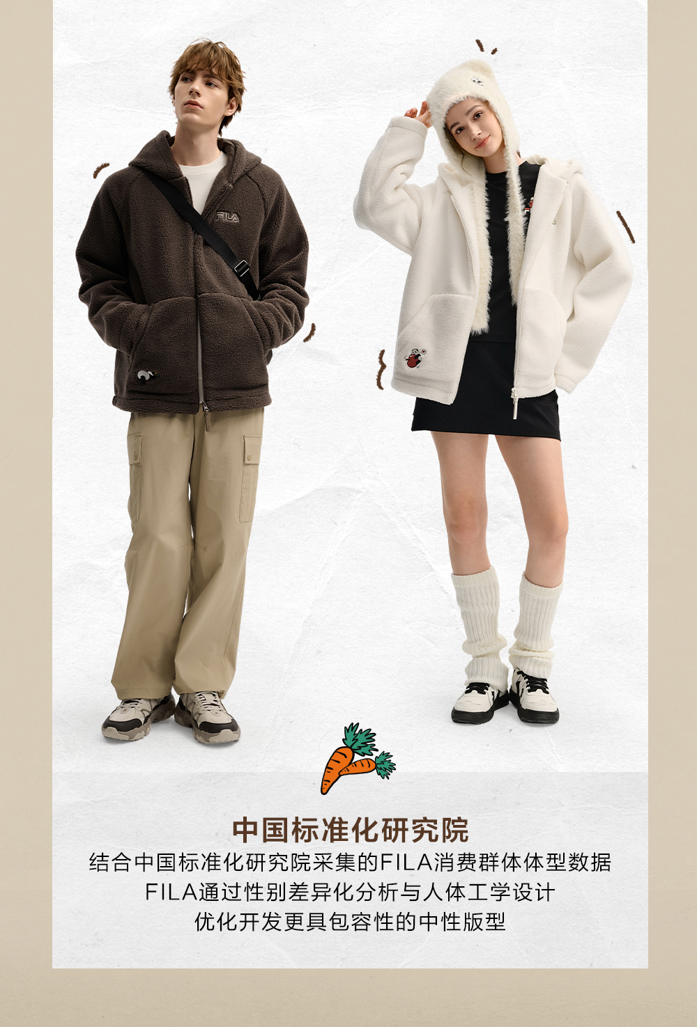 Fila Official Couple Knitted Hooded Jacket 25 Winter New Panda Faux Shearling Warm Casual Top