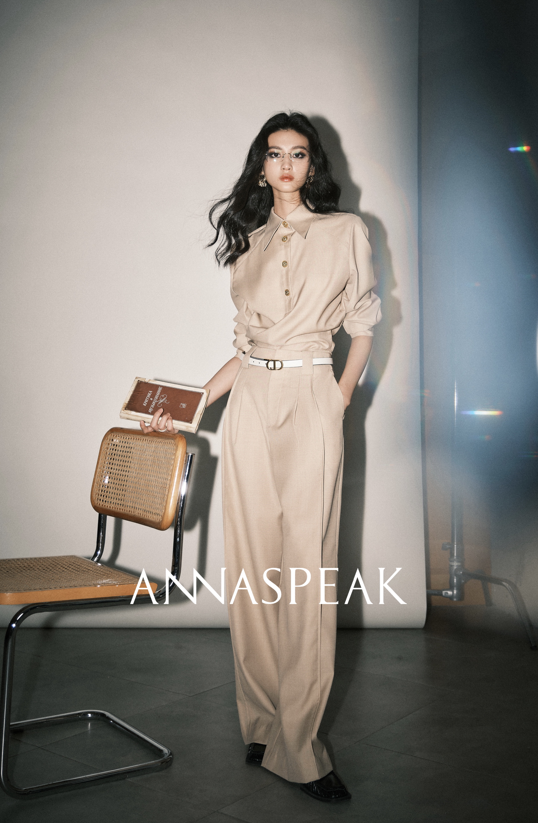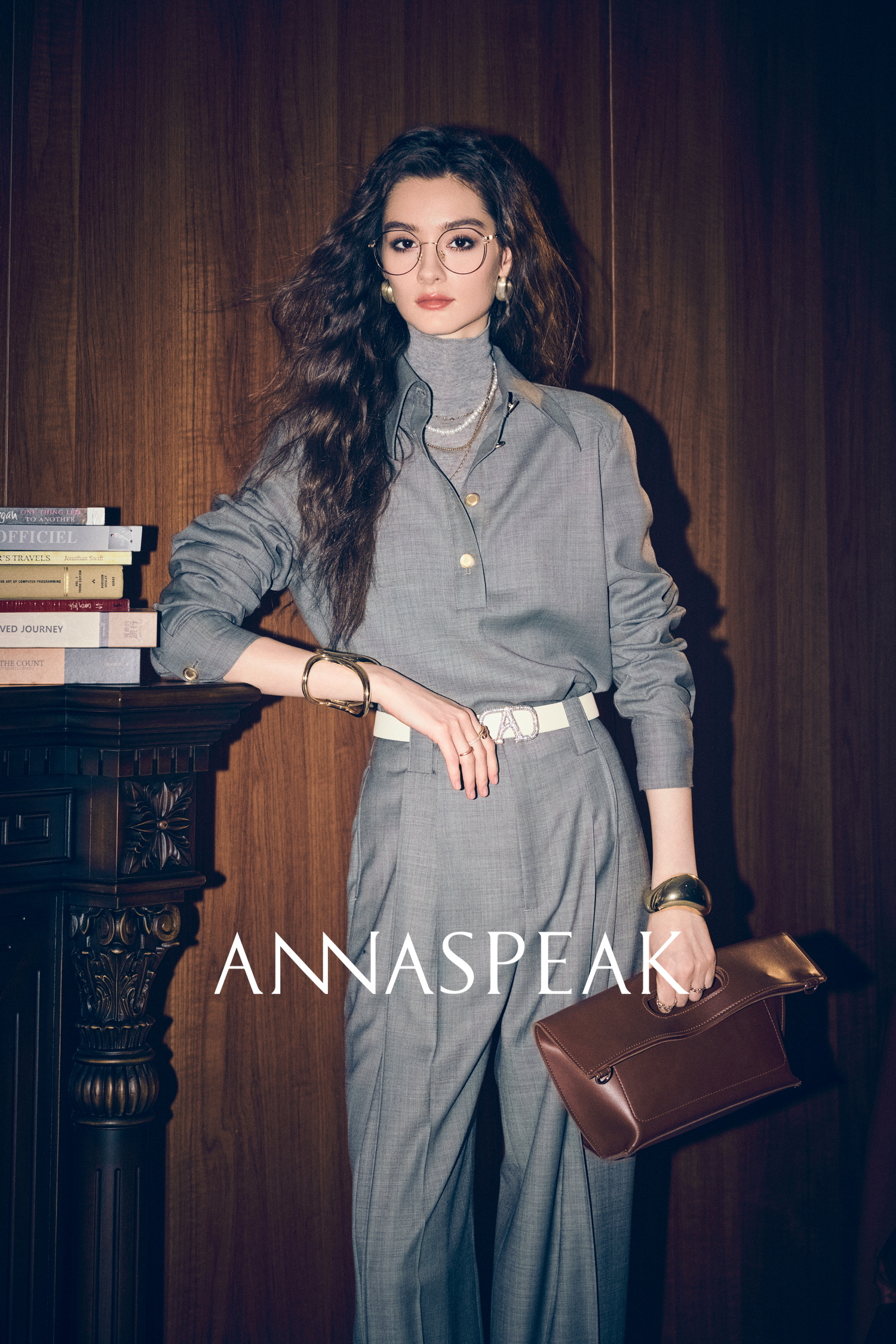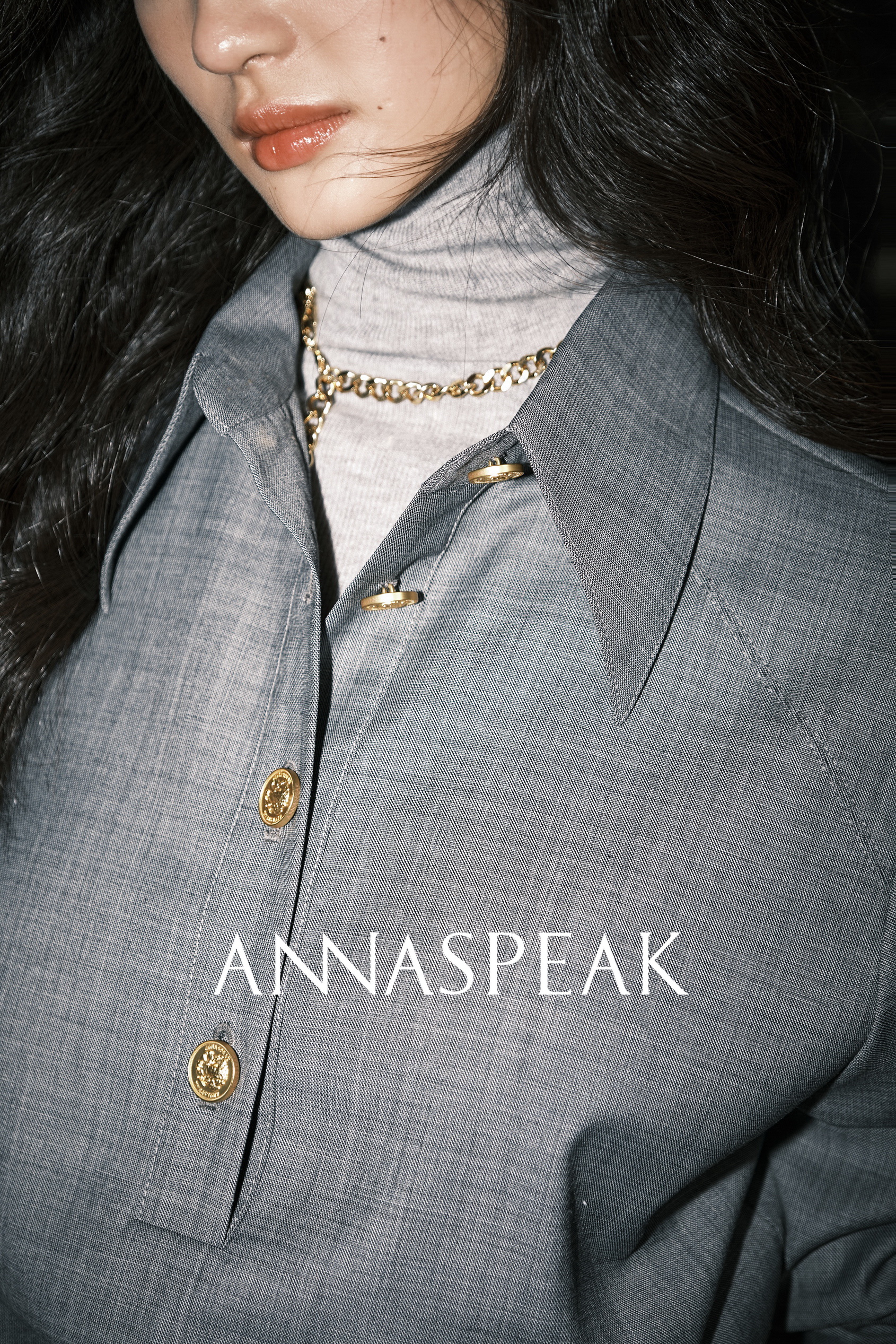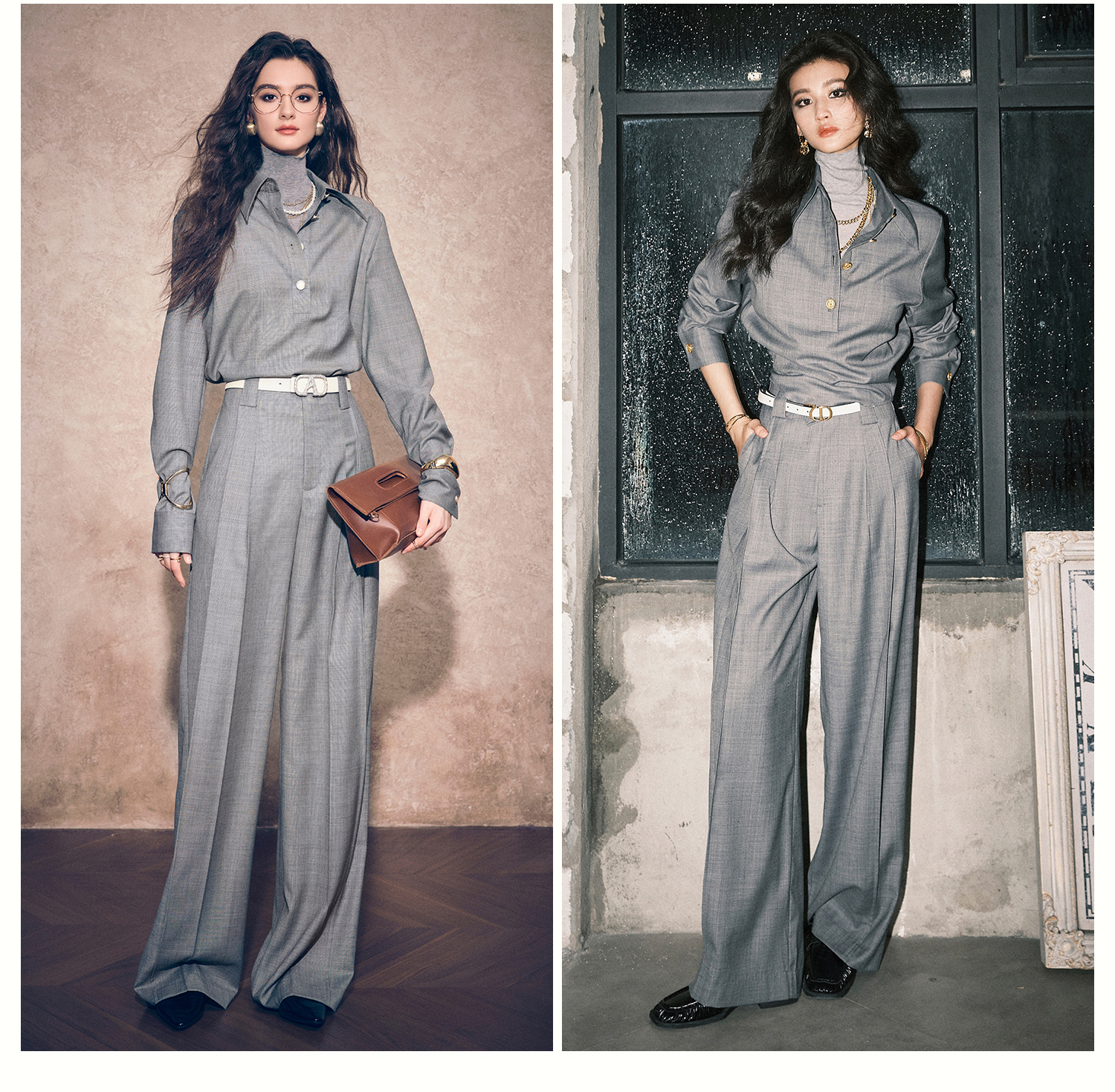 Annaspeak Has Sold Tens of Thousands of Pieces of Old Money Style Irregular Bias-Cut Gray Wool Shirt and Trousers Suit for Women in Autumn and Winter