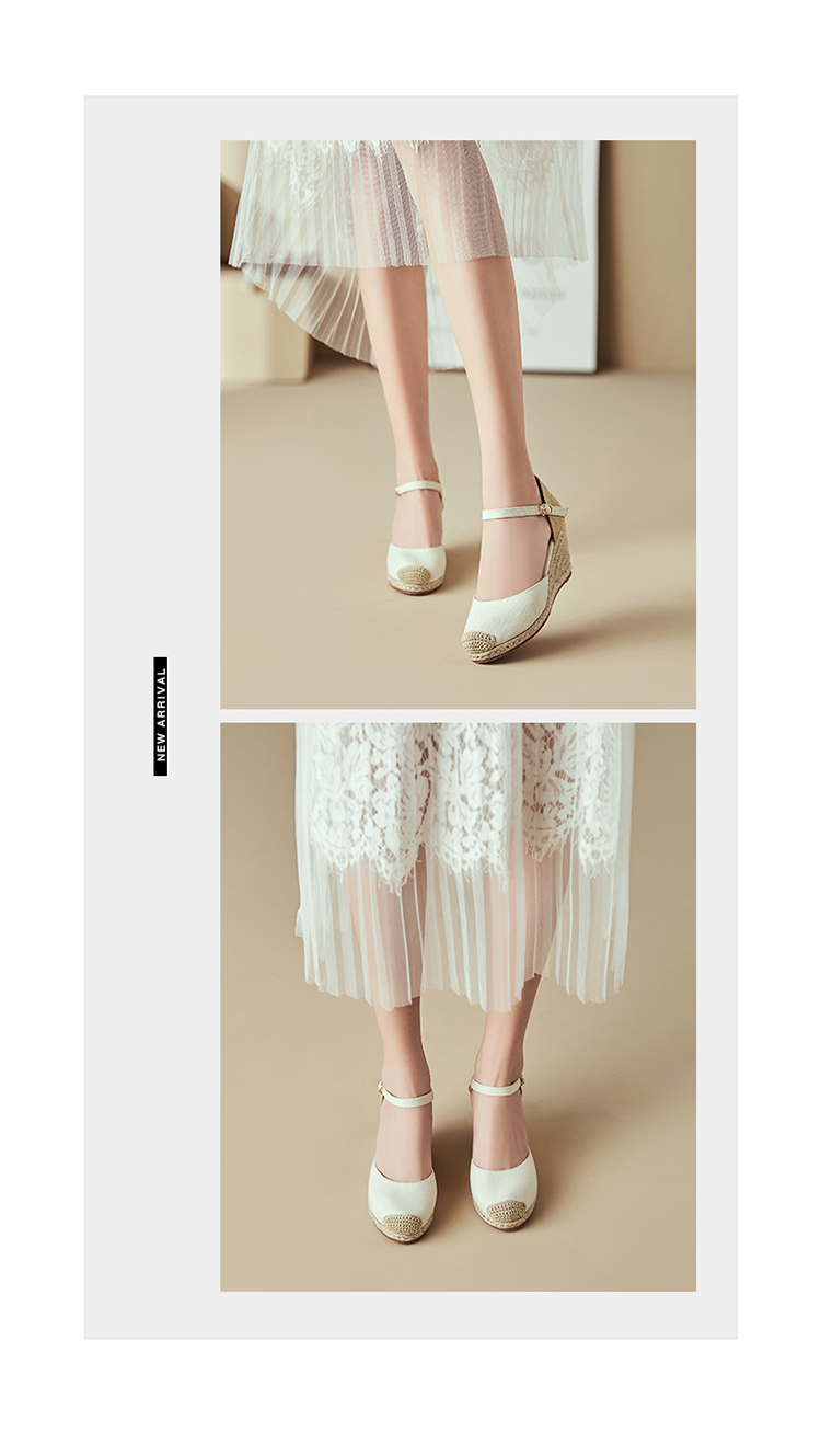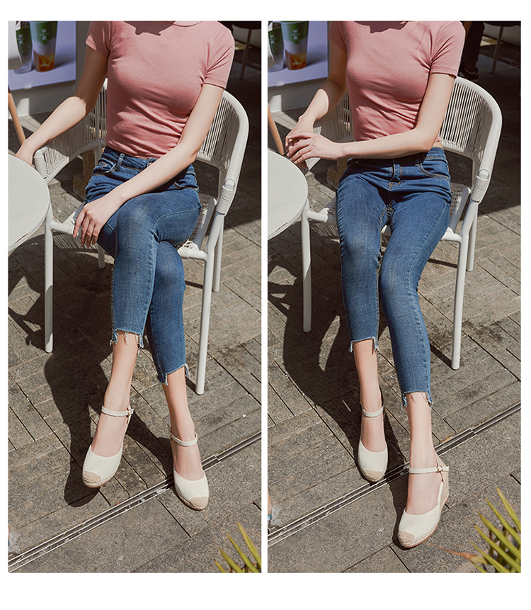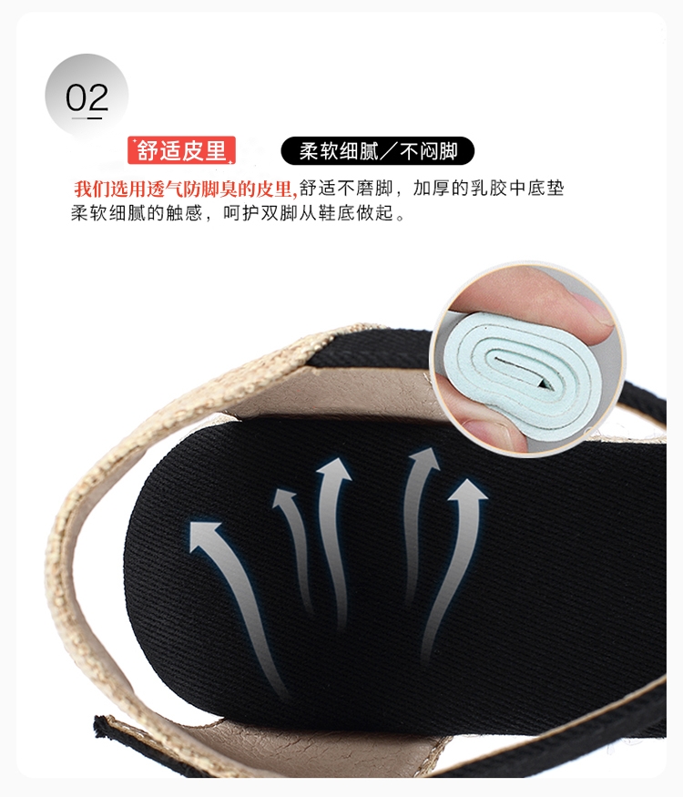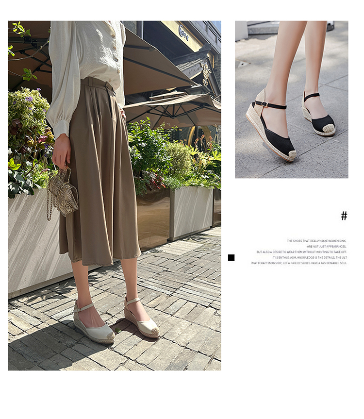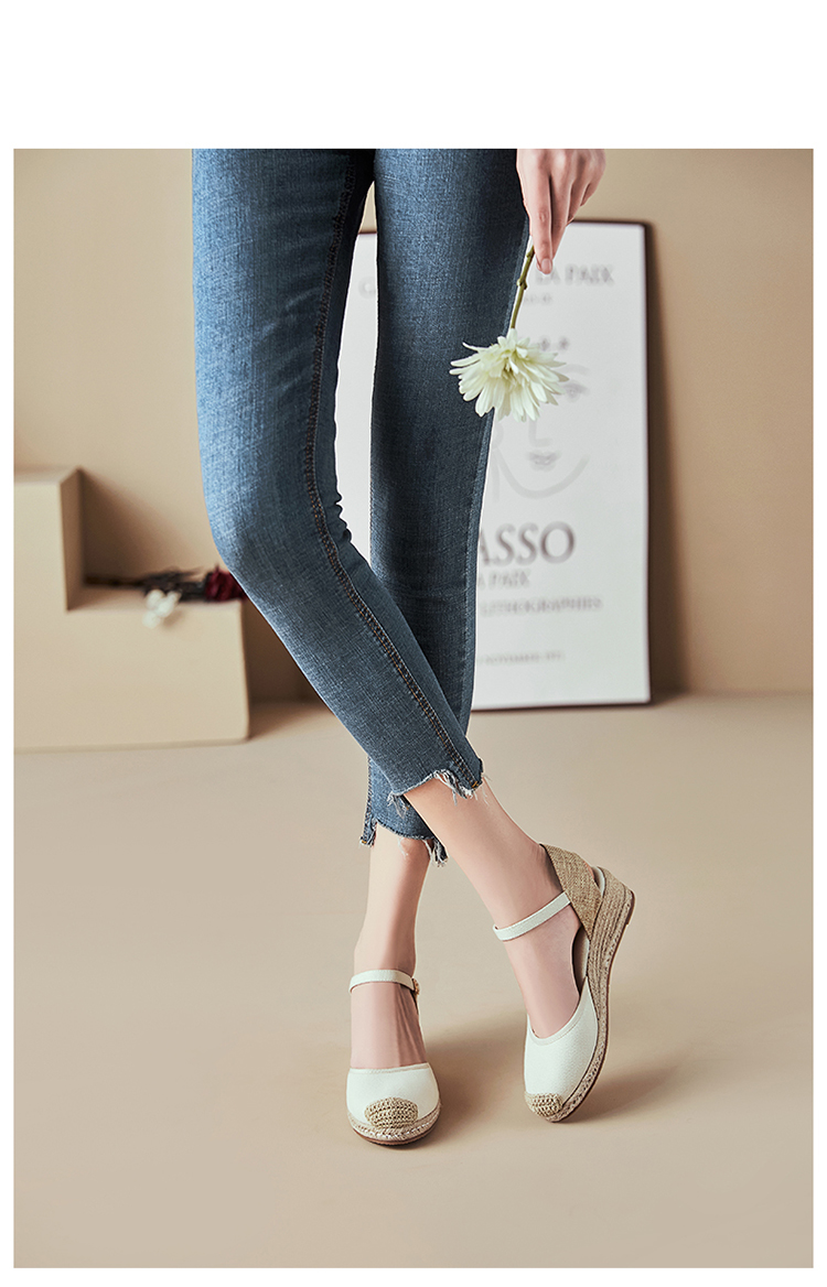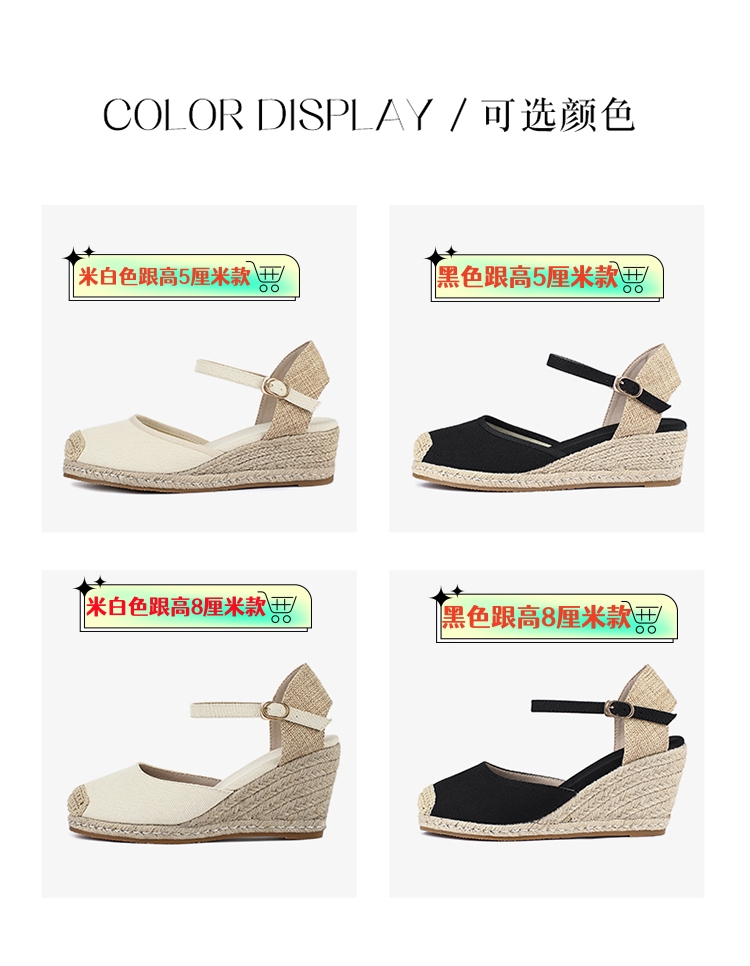 Summer New Style Straw Woven Toe-Cap Chunky Heel High-Heeled French Wedge Height-Increasing Breathable Thick-Soled Canvas Fisherman Sandals for Women Trendy