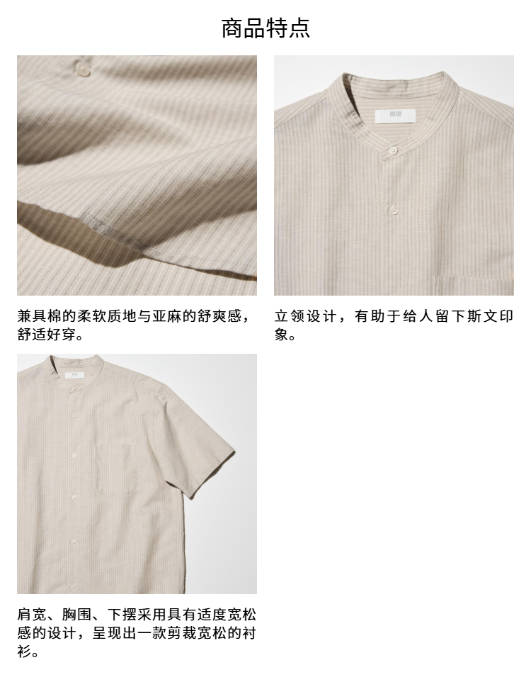 Uniqlo Men's and Women's Cotton and Linen Striped Stand-Up Collar Shirts/Short-Sleeved Shirts Cardigans Casual 25 New Styles 474529