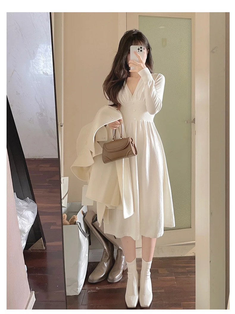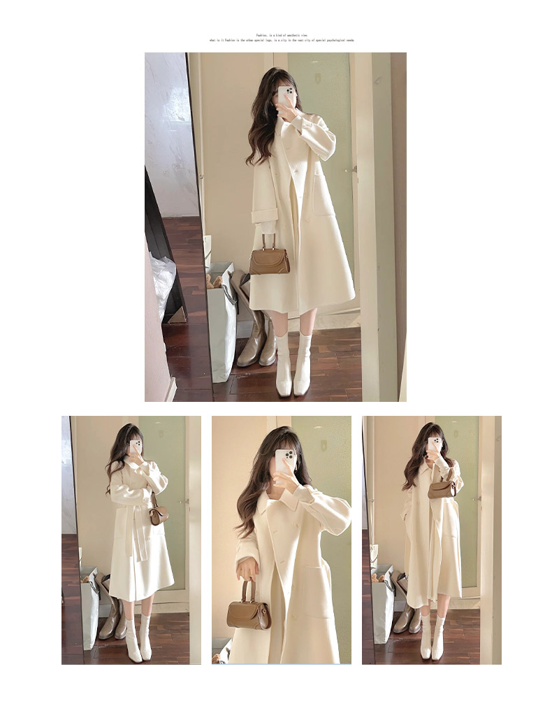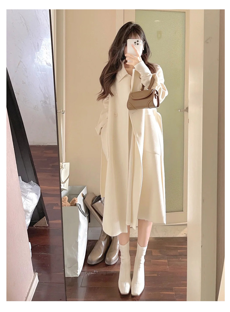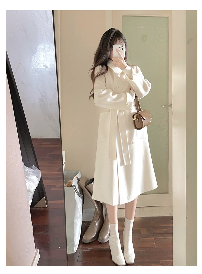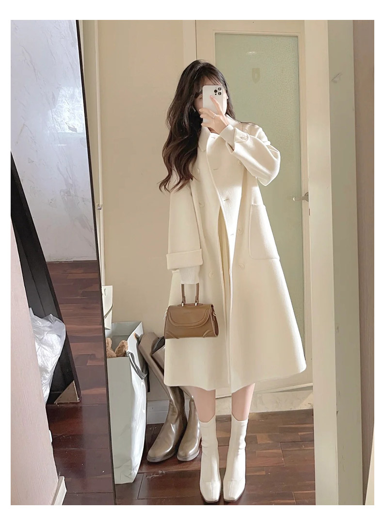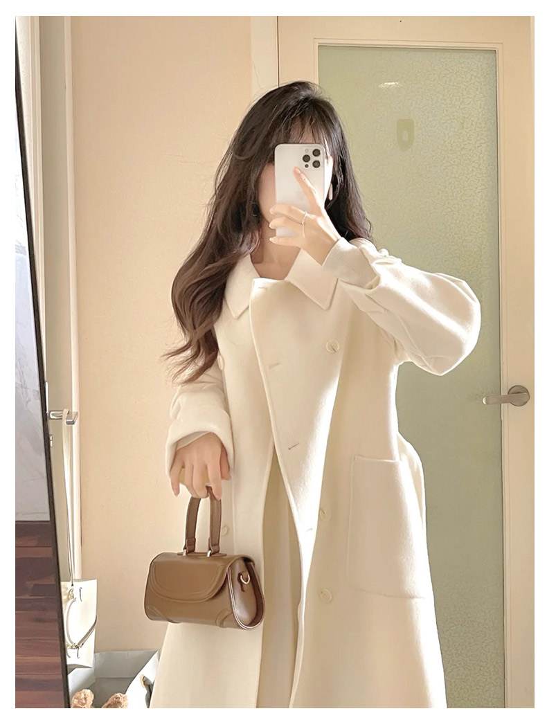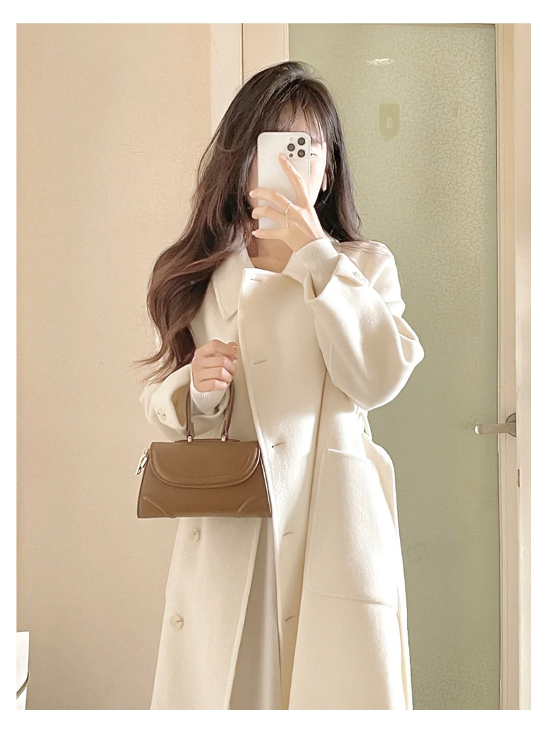 Off-White Double-Sided Cashmere Coat for Women, Mid-Length, Slimming, High-End Feel, Double-Sided Nylon, 2025 Autumn and Winter Thick Woolen Coat