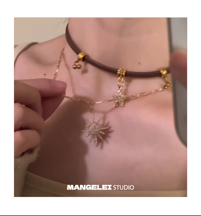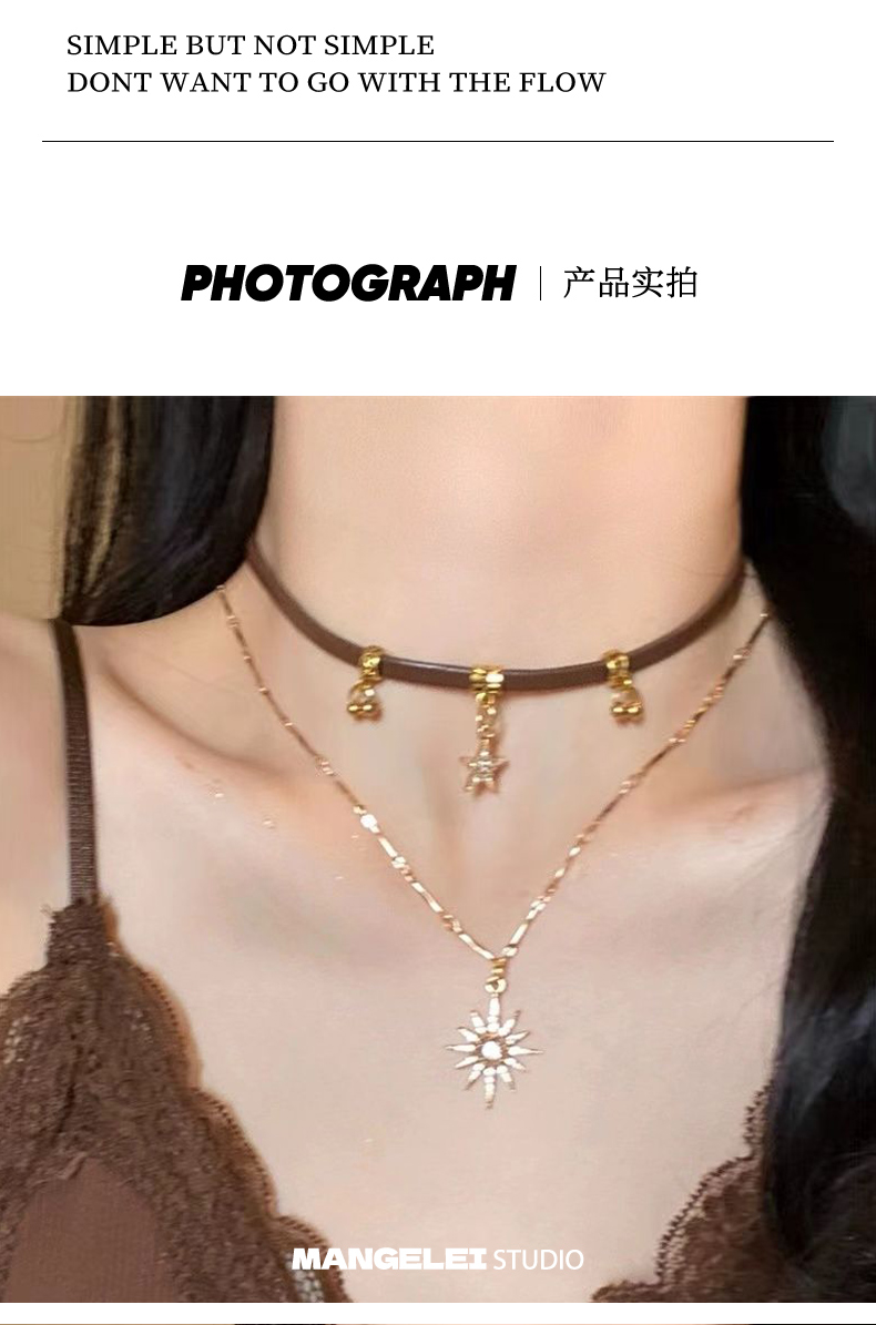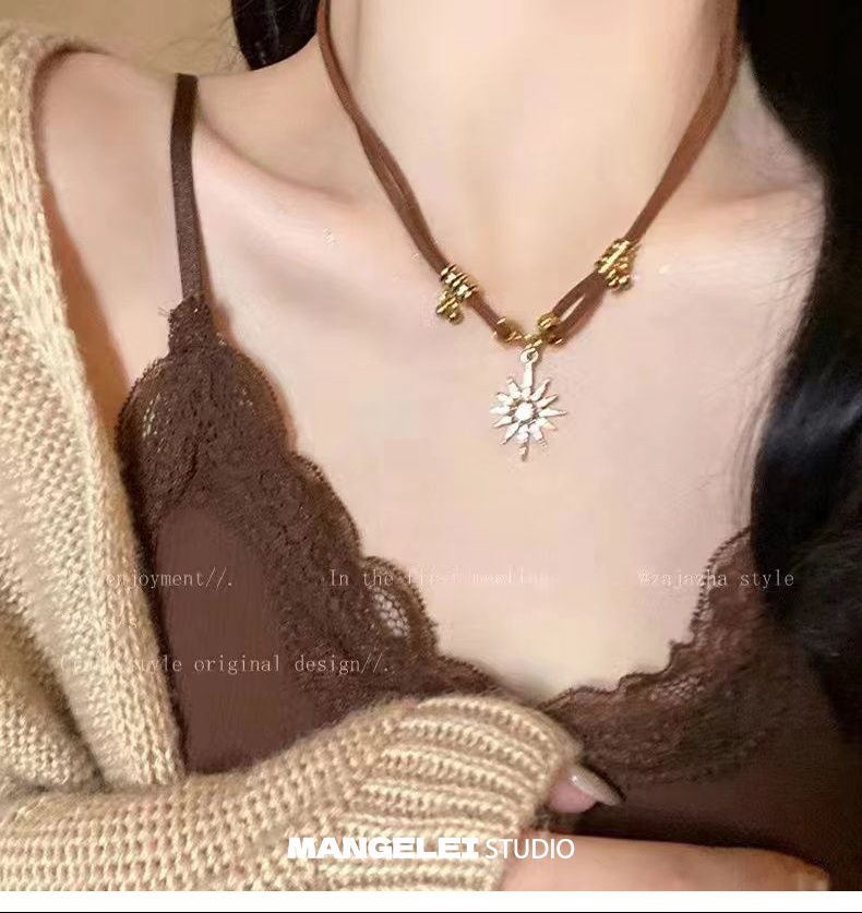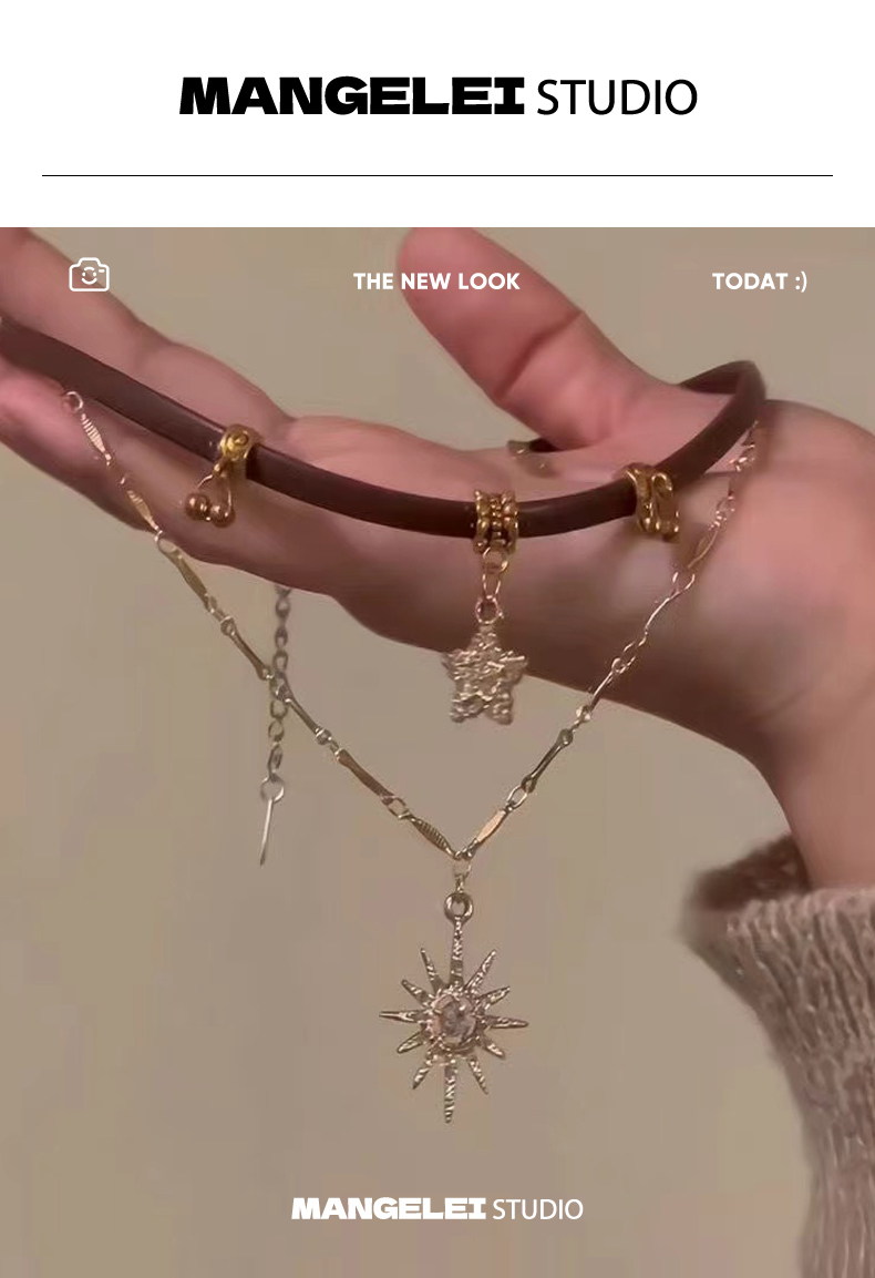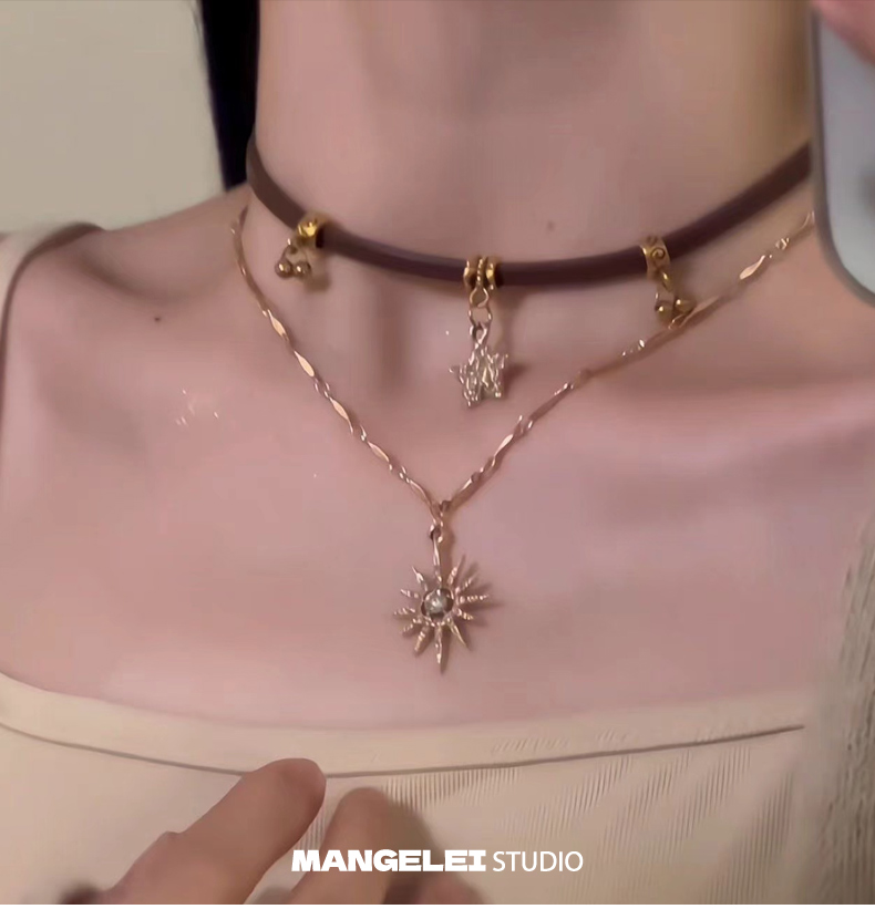 Maillard Sun Star Necklace for Women, Vintage Sweet Cool Spicy Girl Personality, Niche High-End Clavicle Chain Sweater Chain