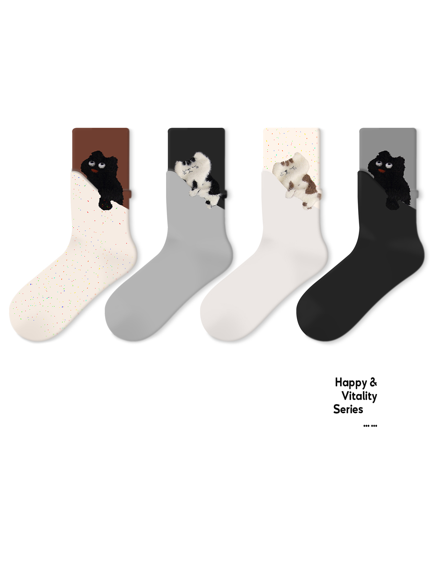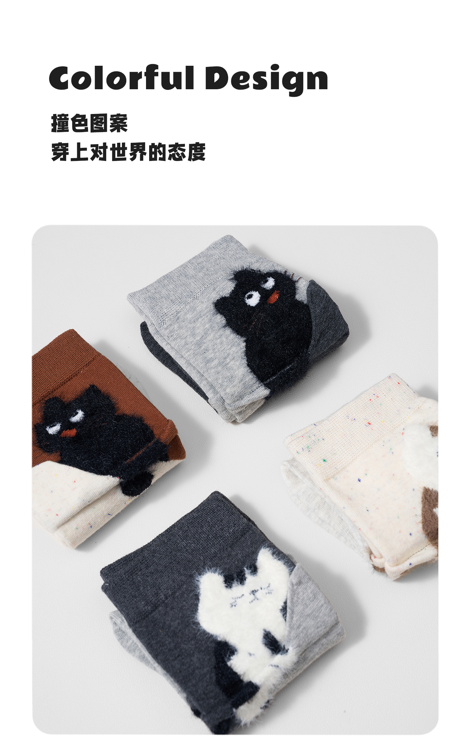 Women's Mid-Calf Socks, Spring and Autumn Style, Trendy Cute Cat Long Socks, 2025 New Popular Long Cotton Socks for Autumn and Winter