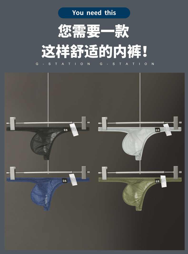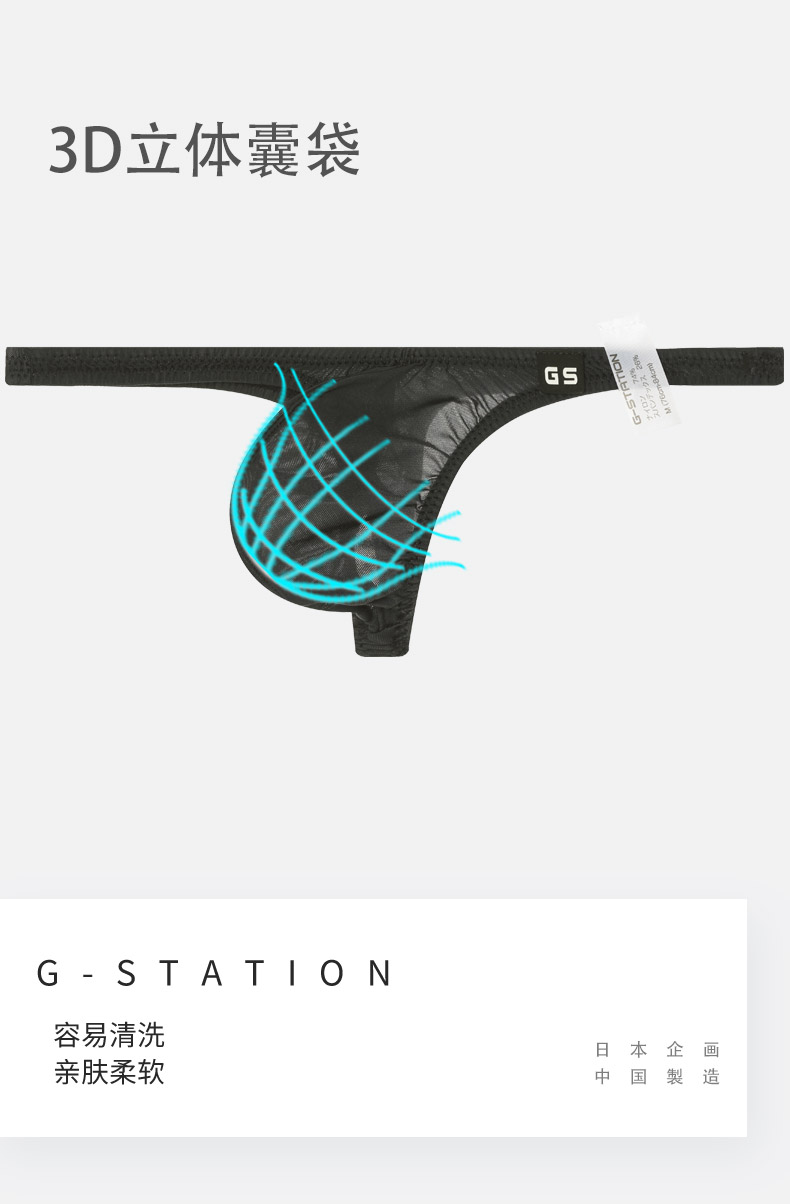 G-Station Japanese Style Sexy Small Size Low-Waist Tight-Fitting Men's Thong Underwear Made in Japan with Ultra-Thin Silky Fabric