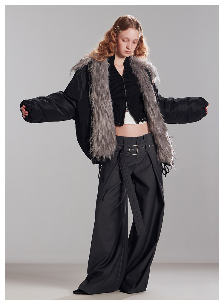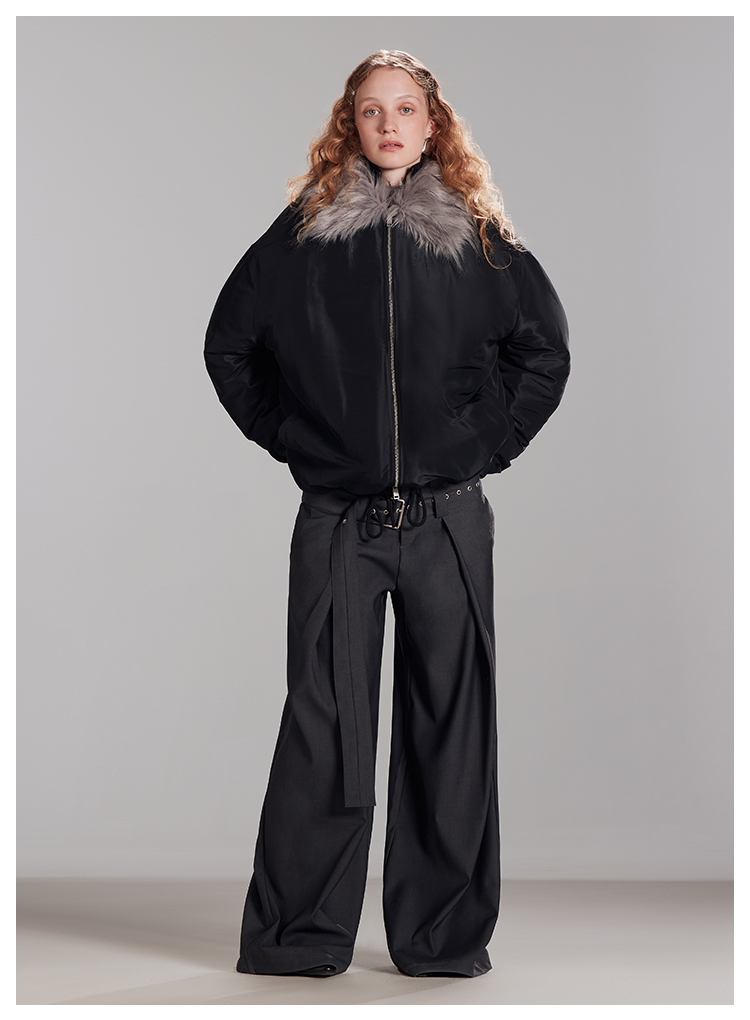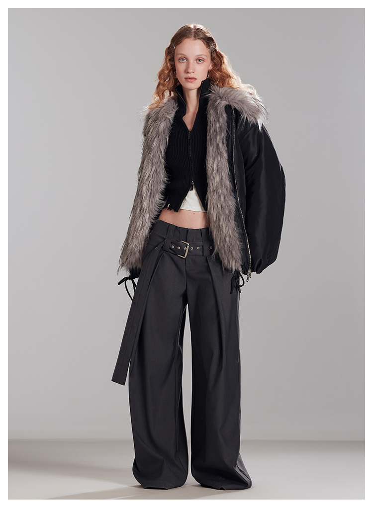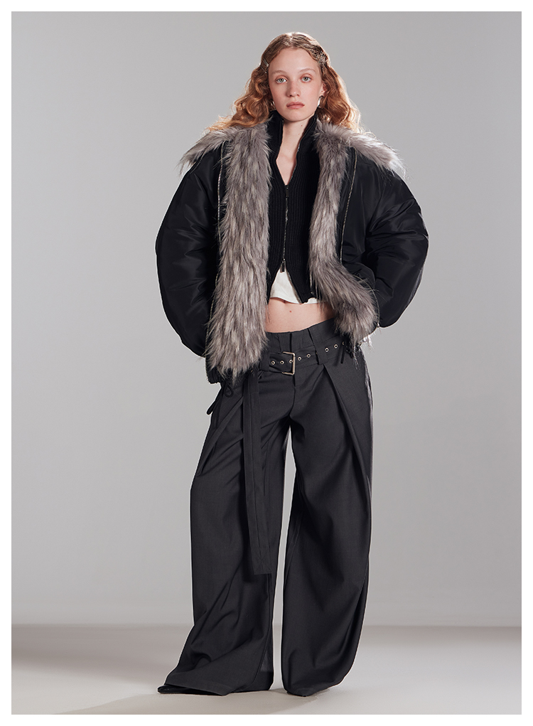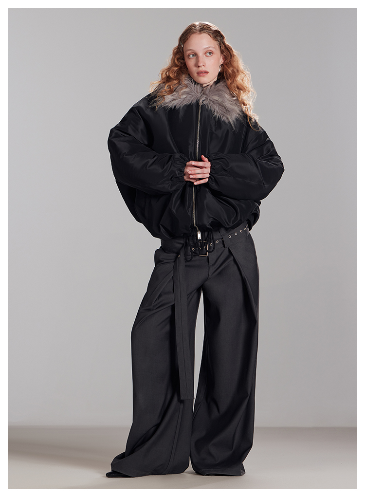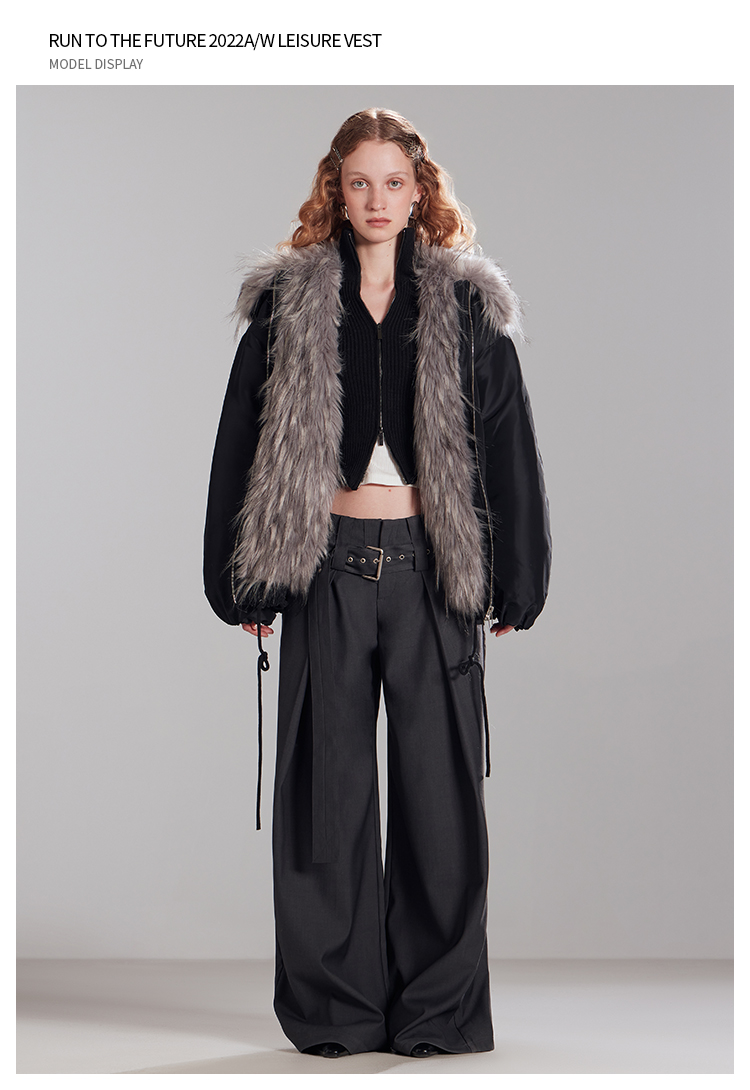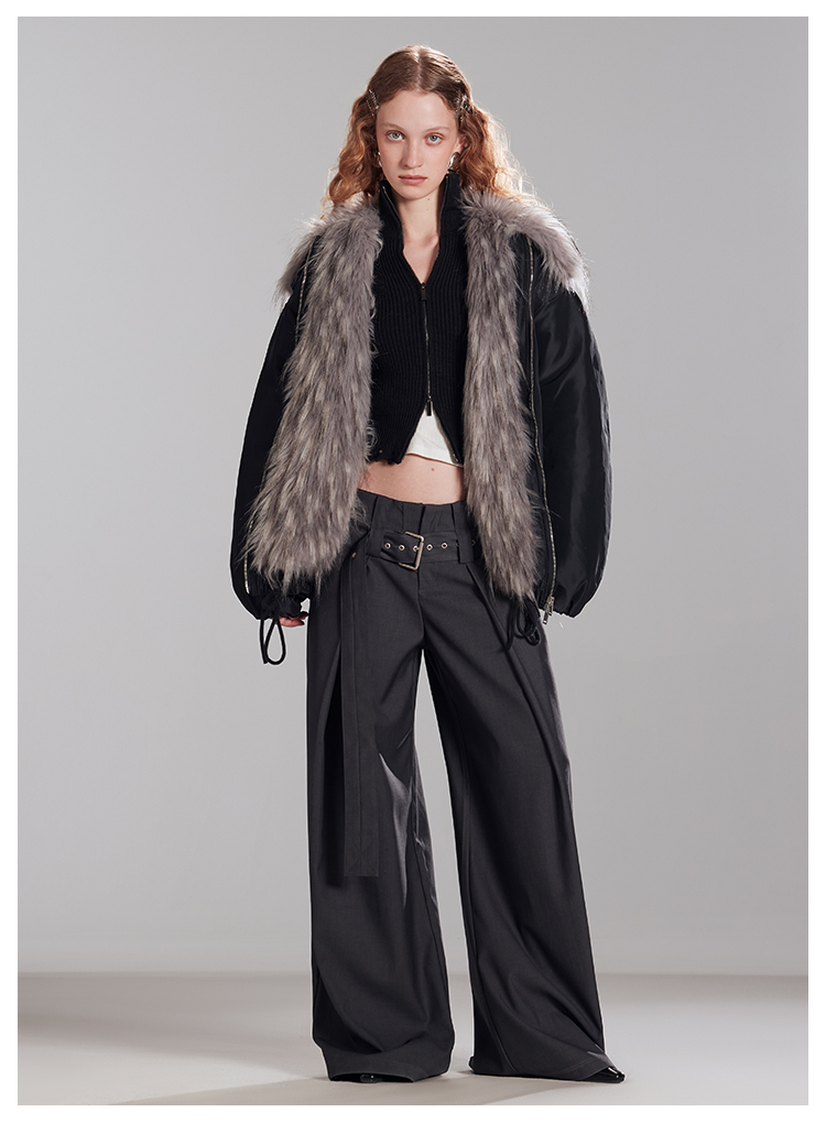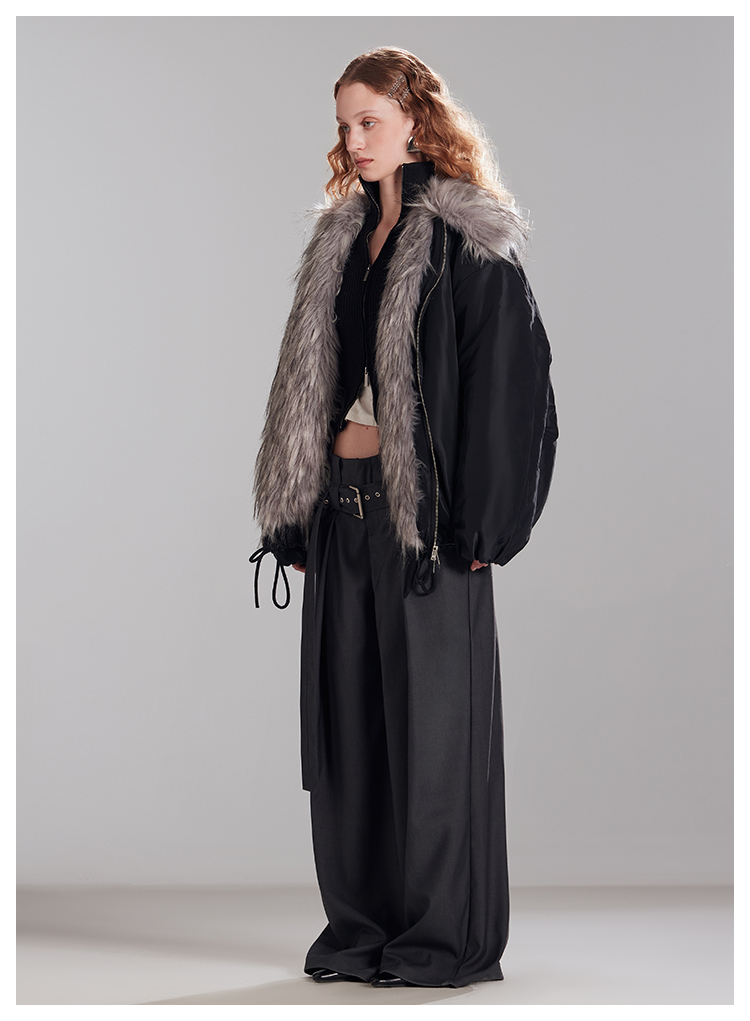 Original Black Shimmer Parka for Women, Winter Mixed-Color Cotton Coat, Faux Raccoon Fur Thickened Cotton Jacket