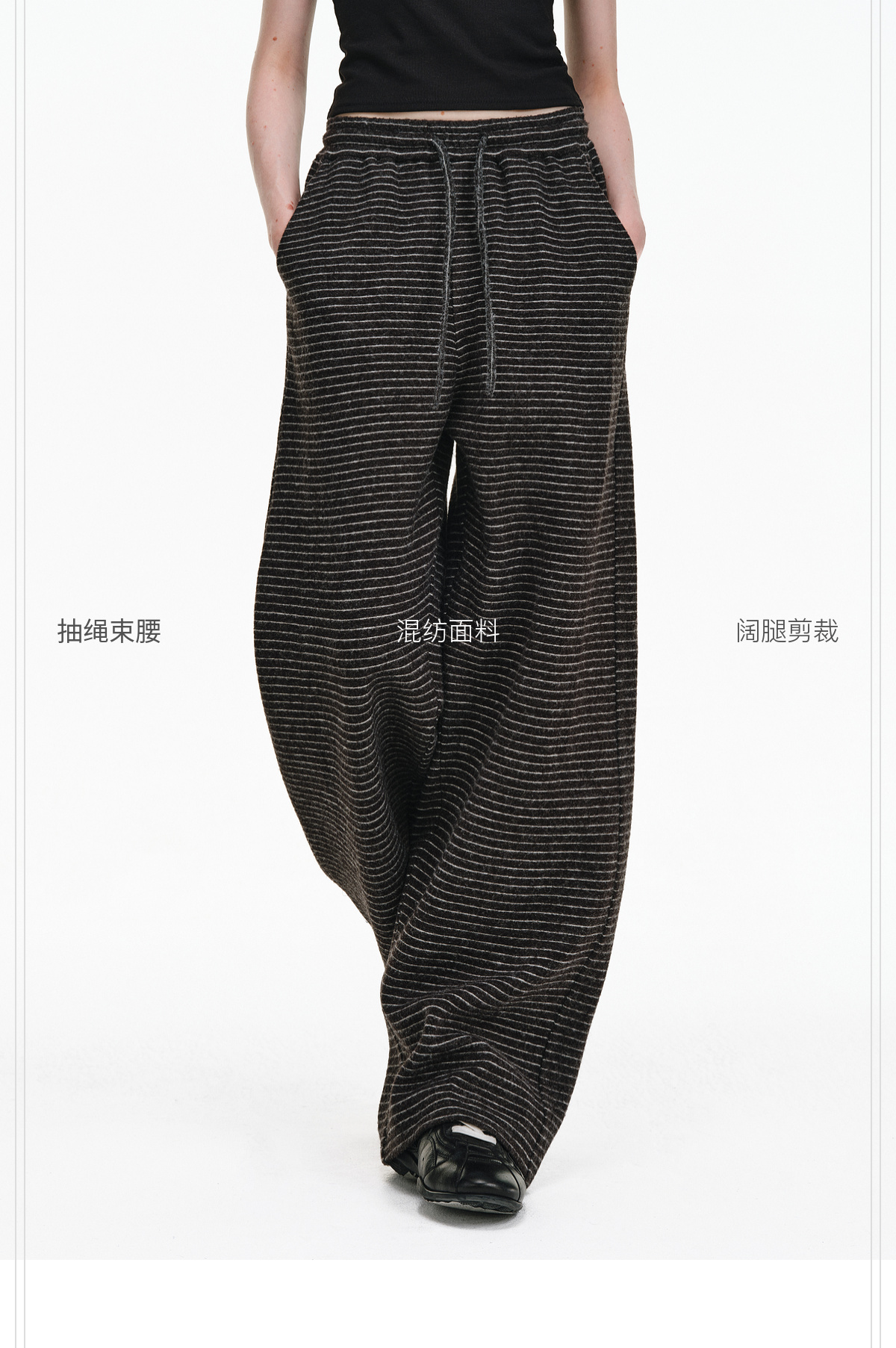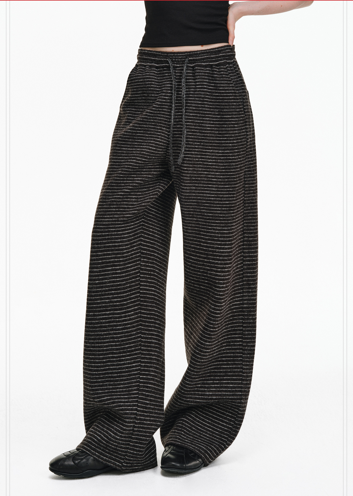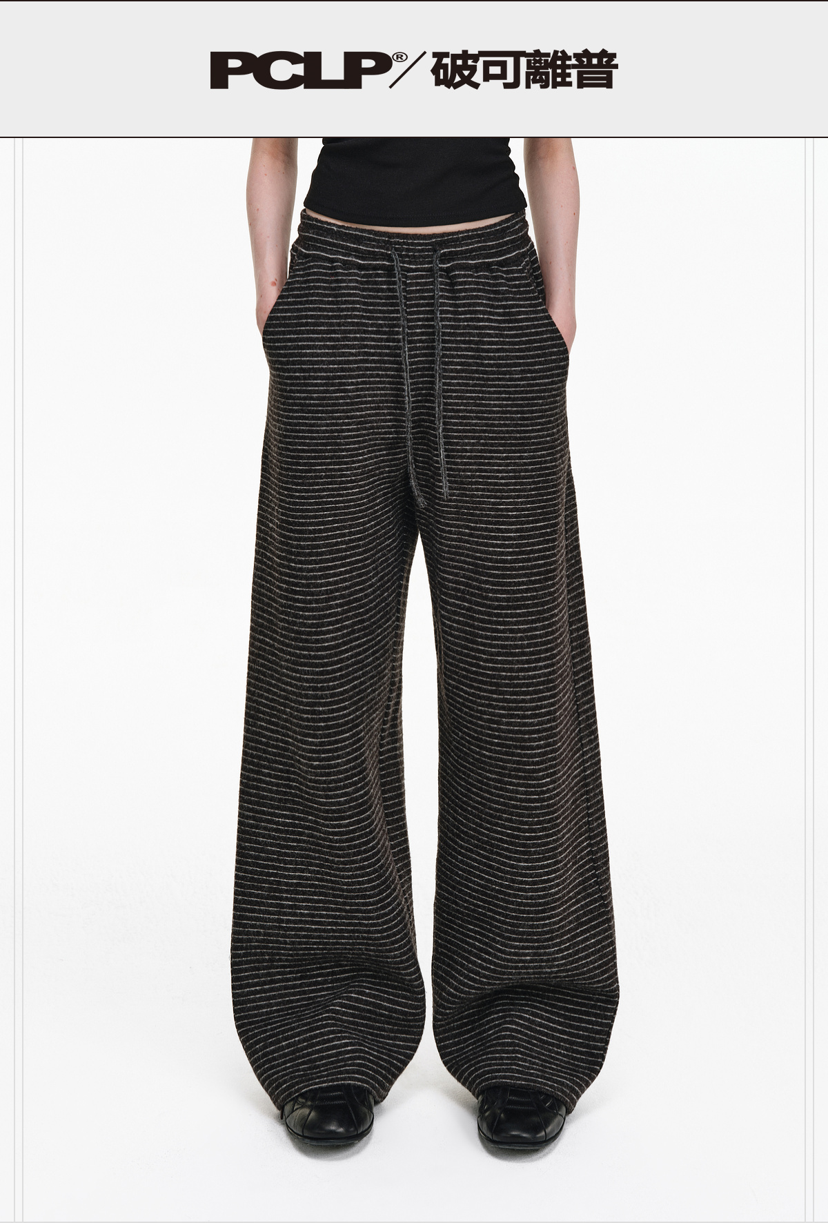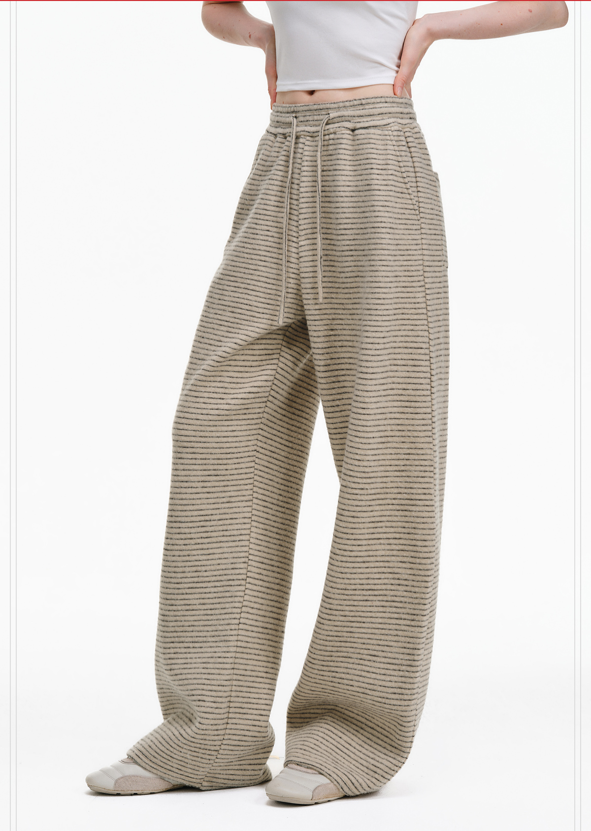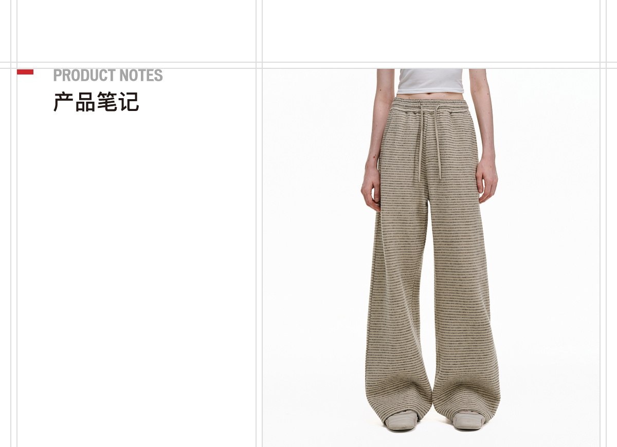 Pclp Curved Hem Casual Striped Sweatpants, Versatile Loose Straight-Leg Drapey Wide-Leg Drawstring Design Long Pants for Autumn and Winter