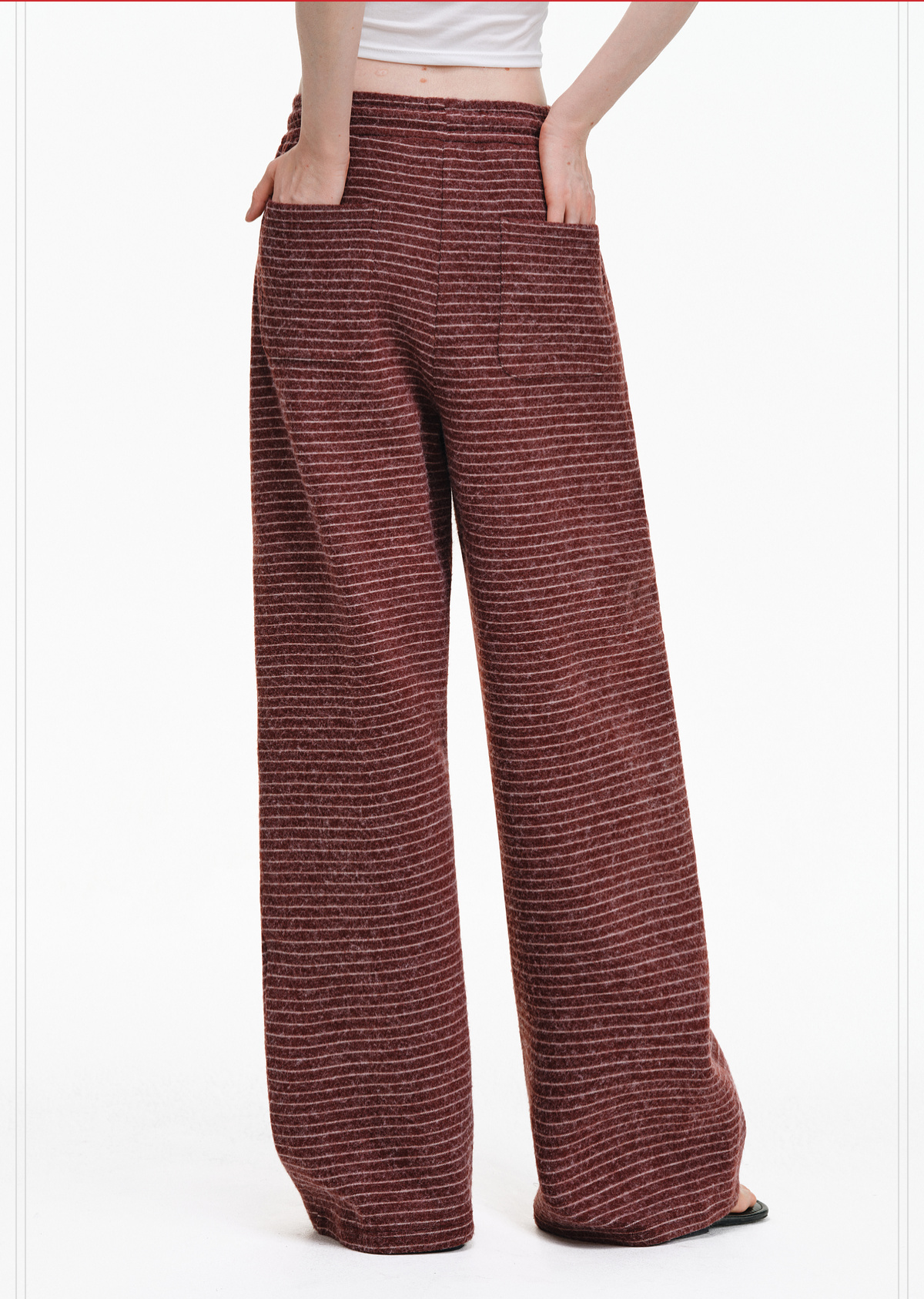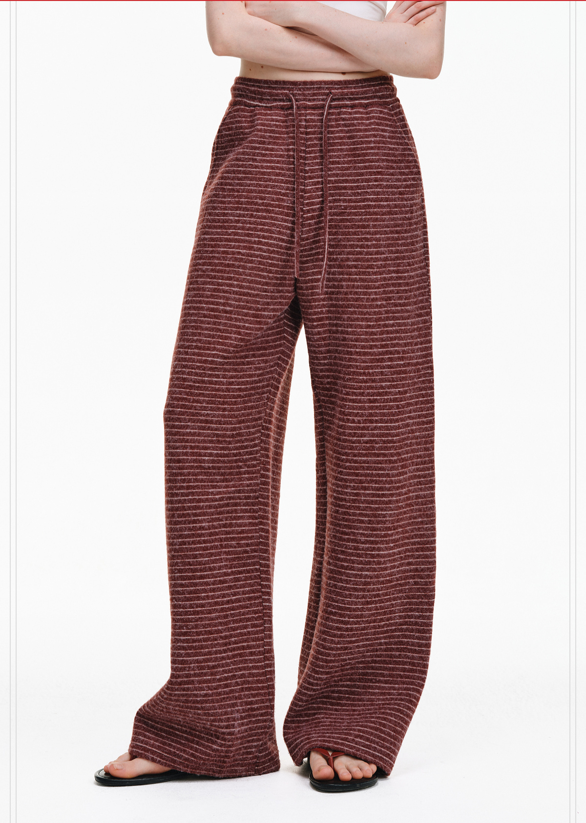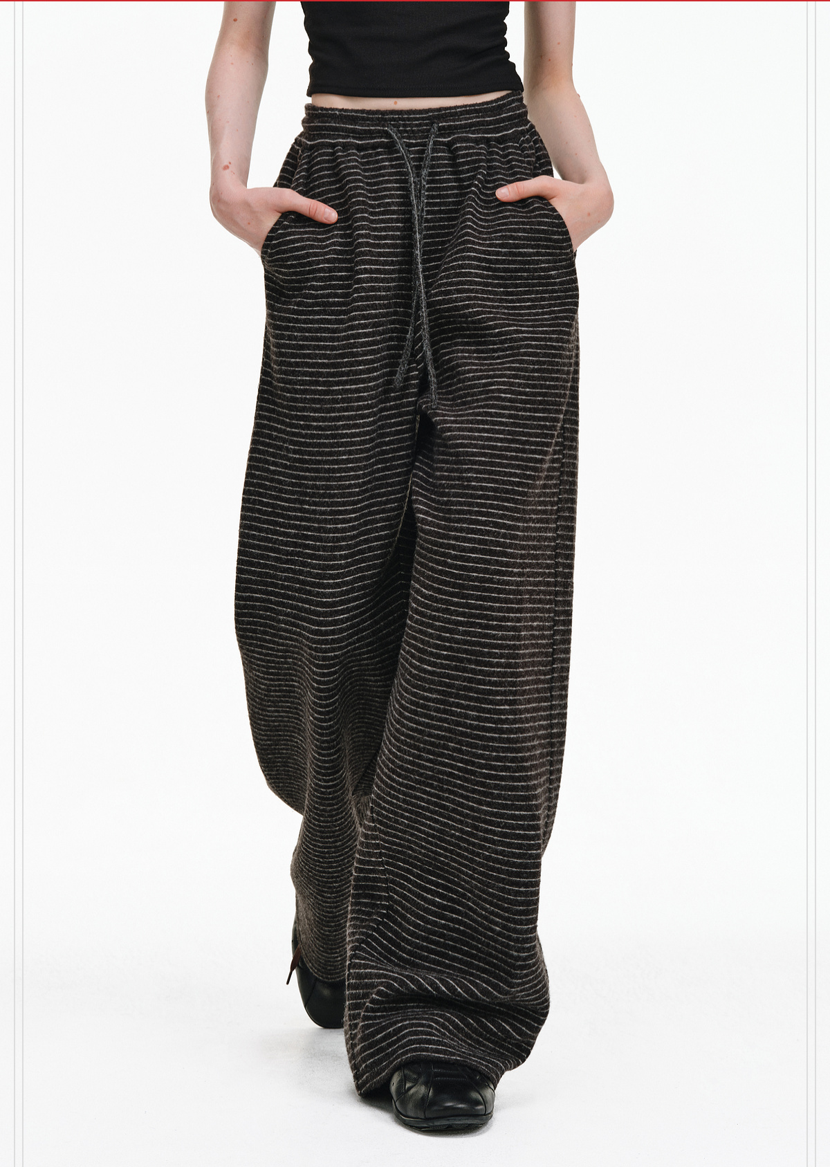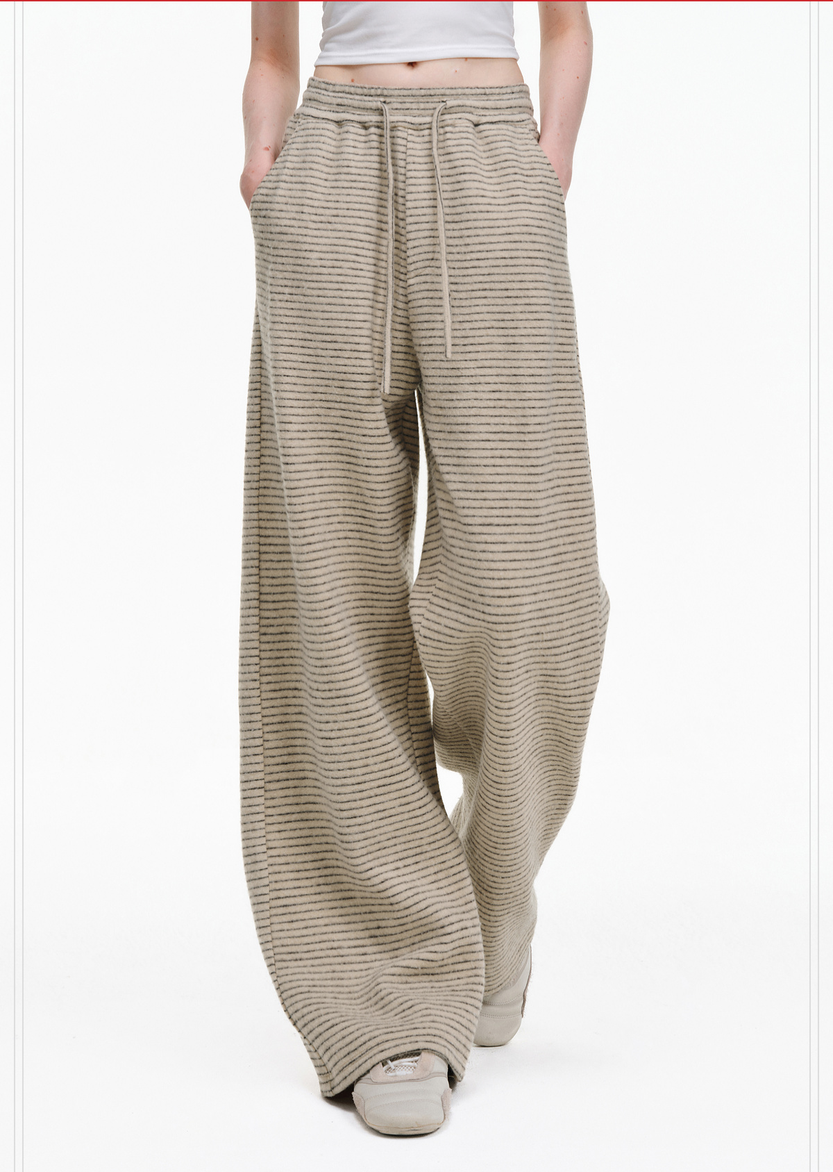 Pclp Curved Hem Casual Striped Sweatpants, Versatile Loose Straight-Leg Drapey Wide-Leg Drawstring Design Long Pants for Autumn and Winter