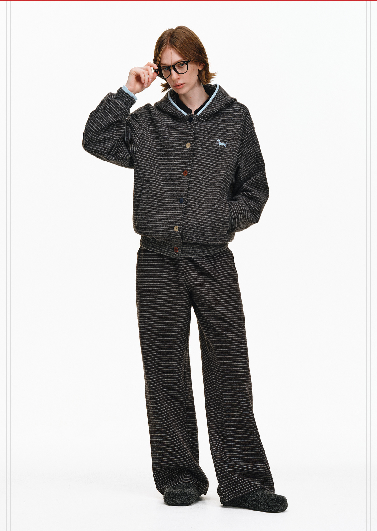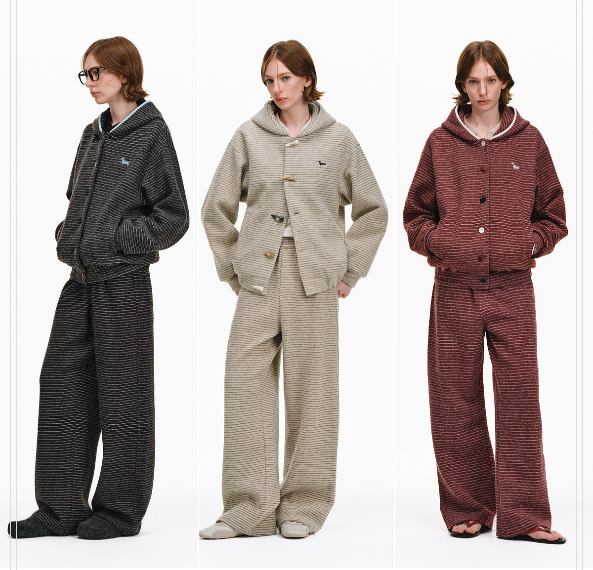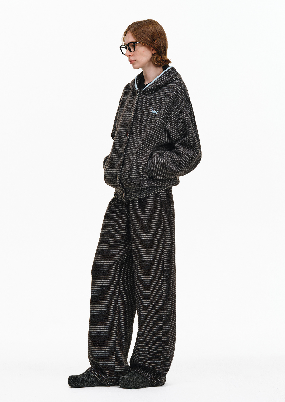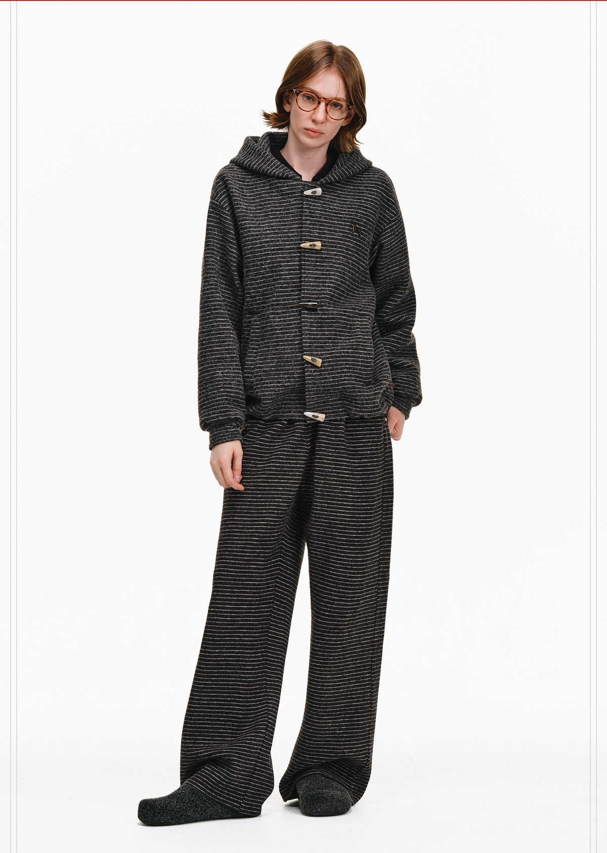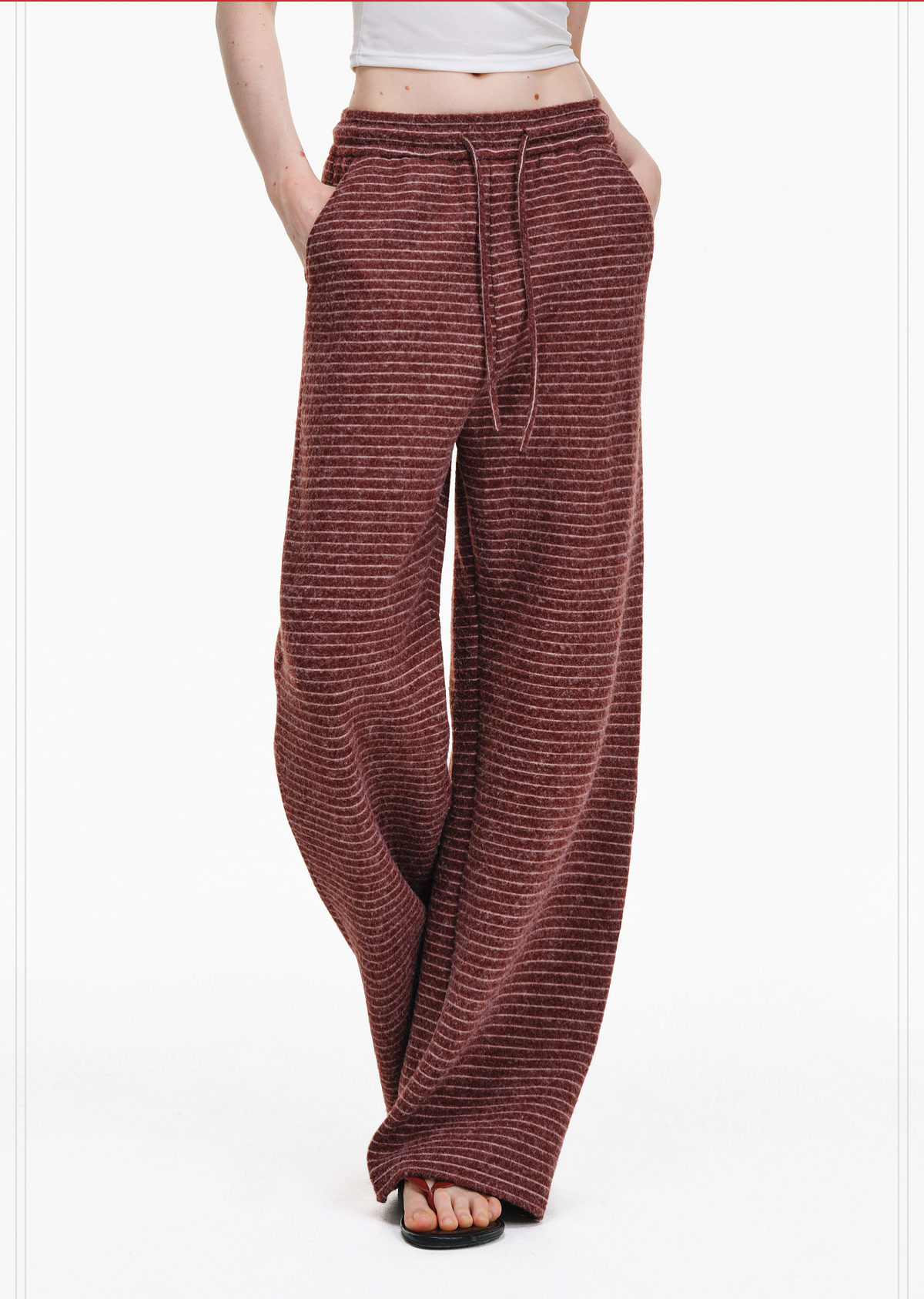 Pclp Curved Hem Casual Striped Sweatpants, Versatile Loose Straight-Leg Drapey Wide-Leg Drawstring Design Long Pants for Autumn and Winter