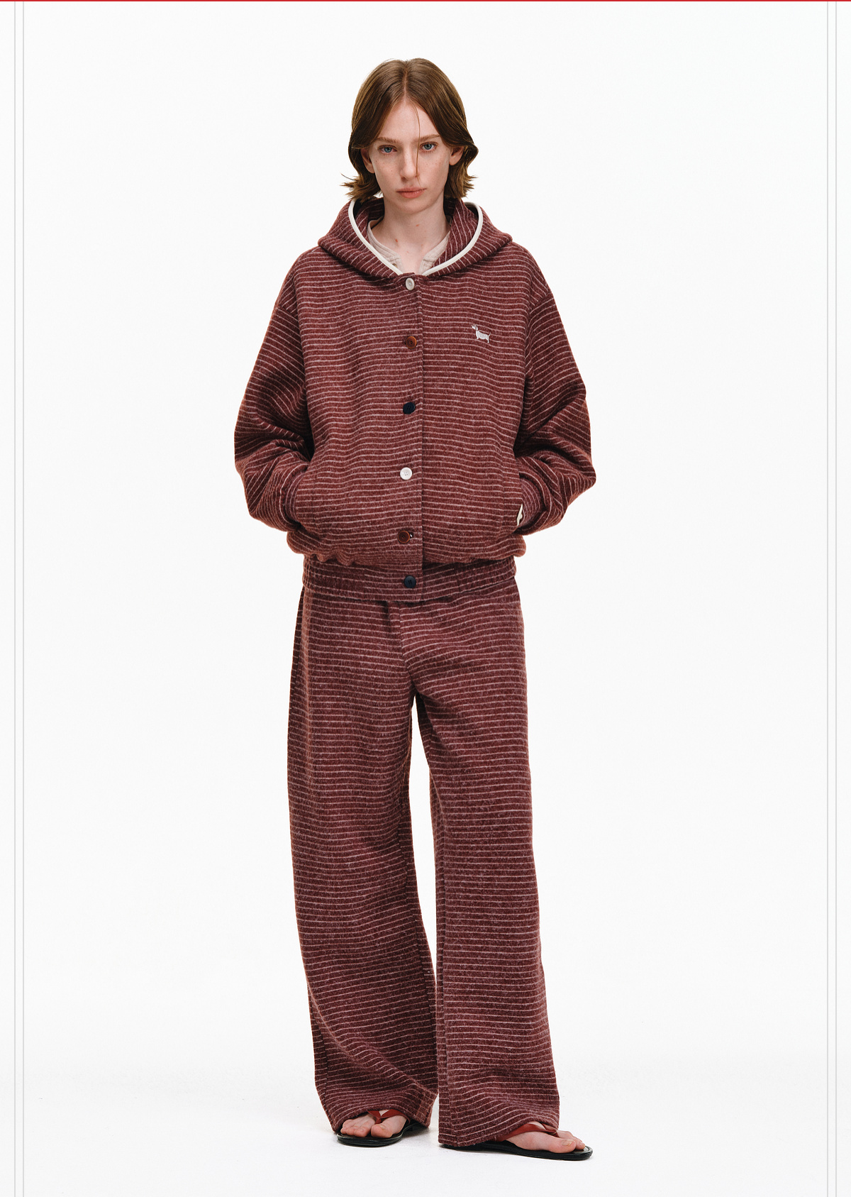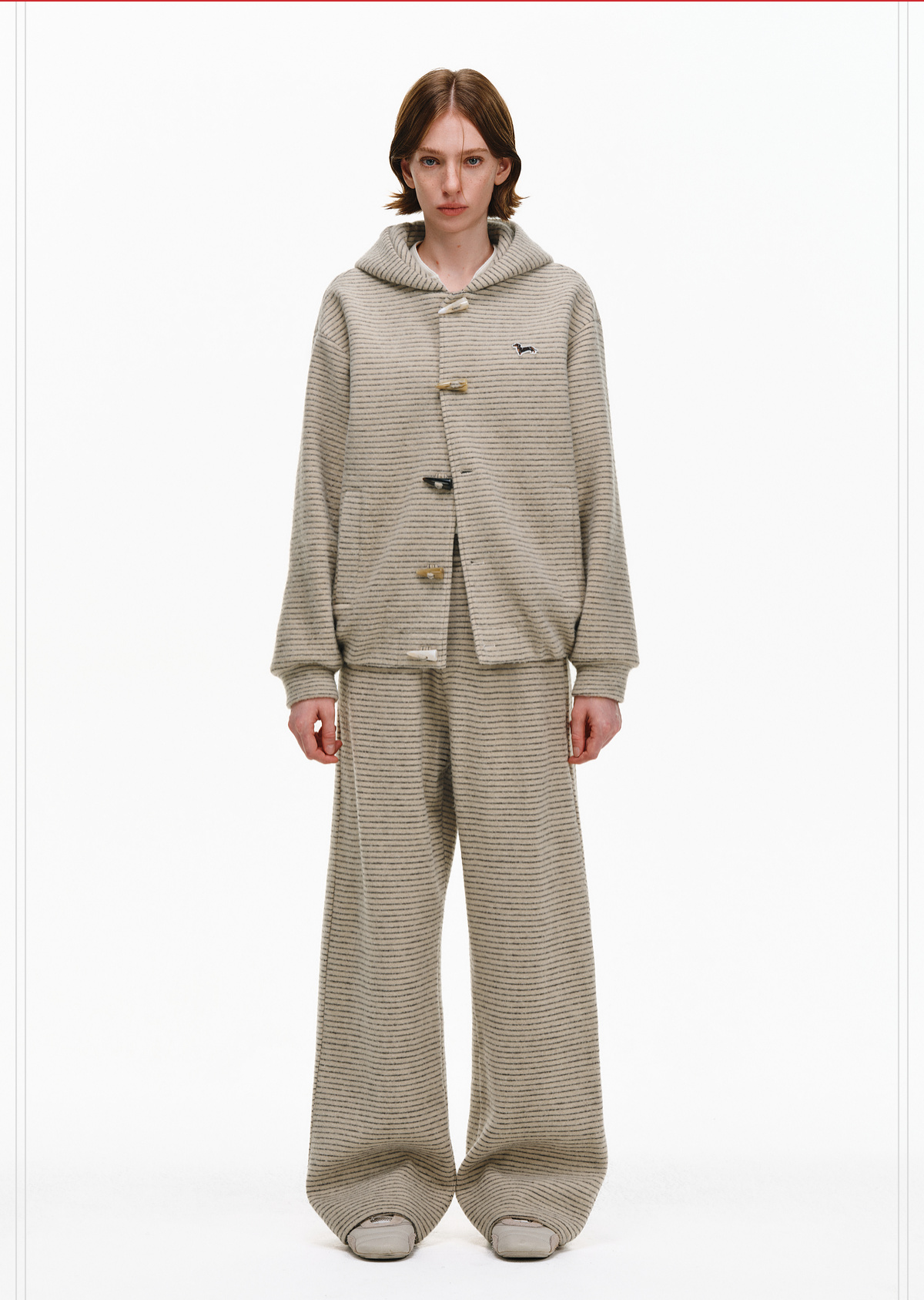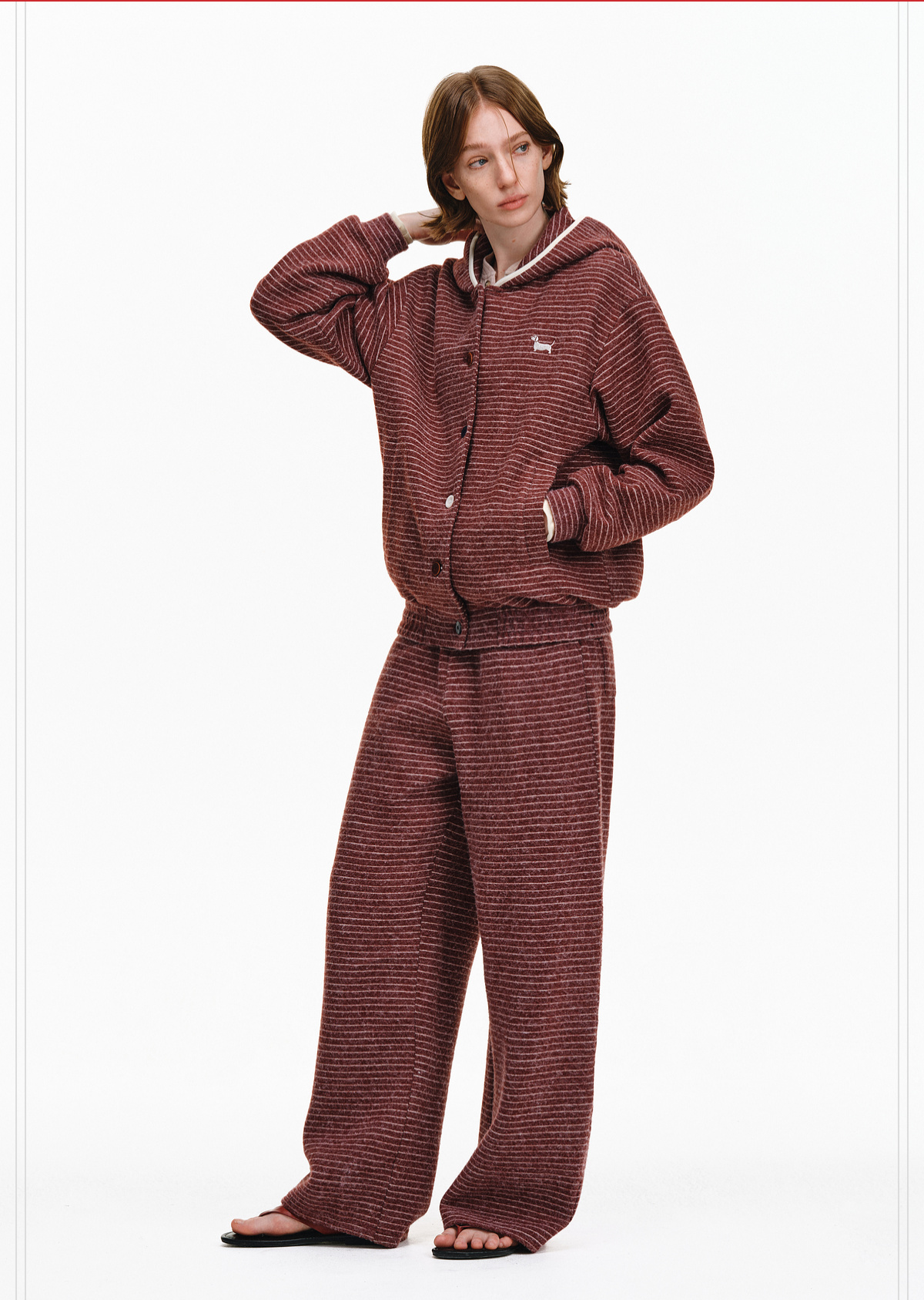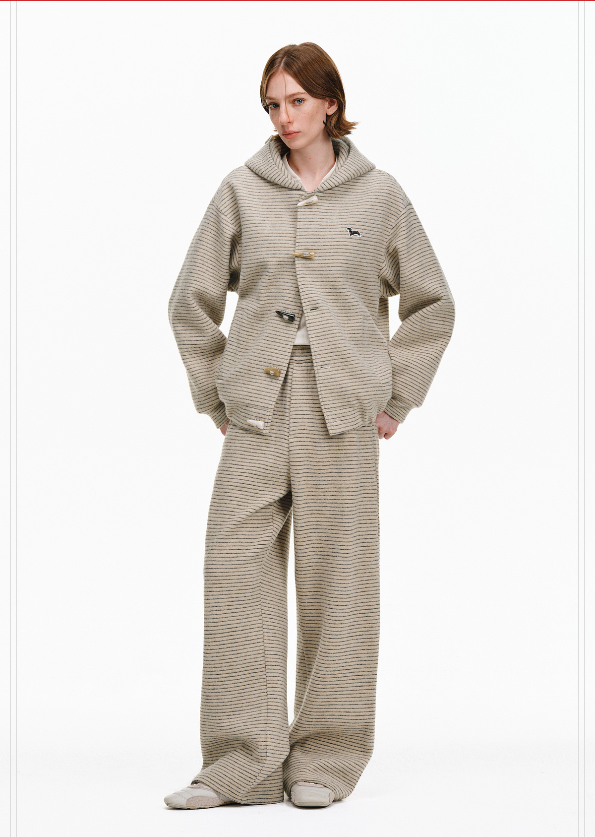 Pclp Curved Hem Casual Striped Sweatpants, Versatile Loose Straight-Leg Drapey Wide-Leg Drawstring Design Long Pants for Autumn and Winter