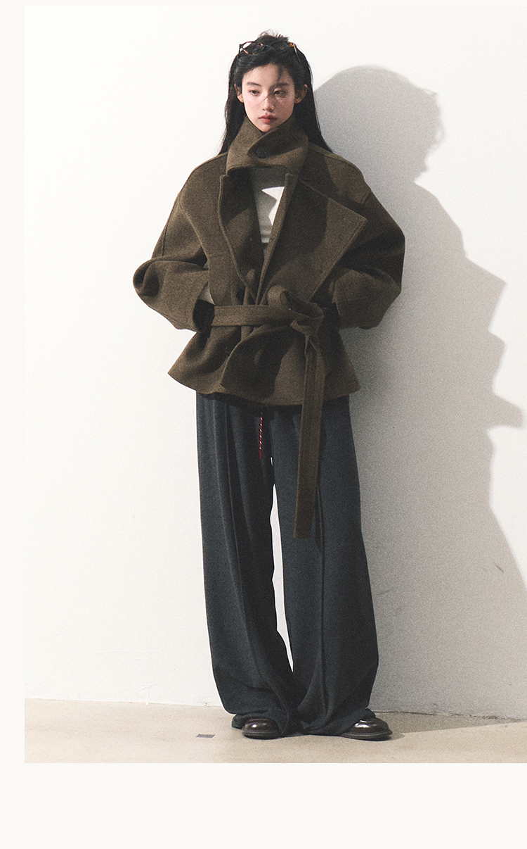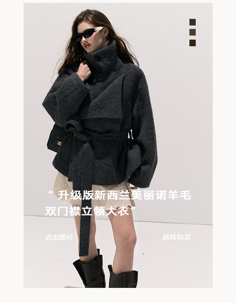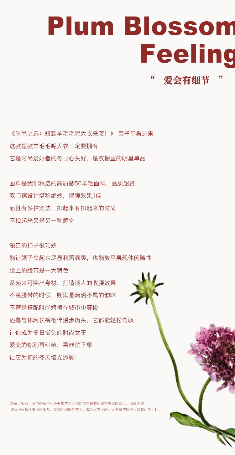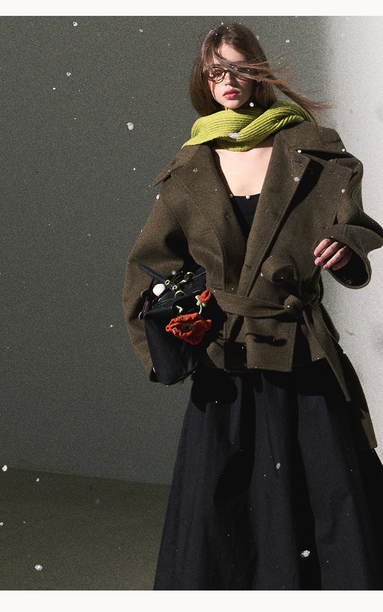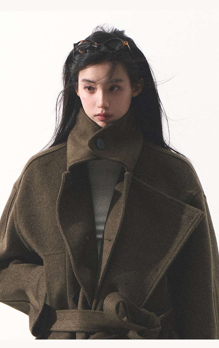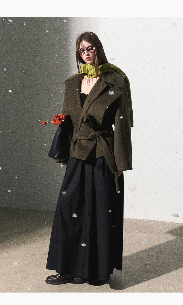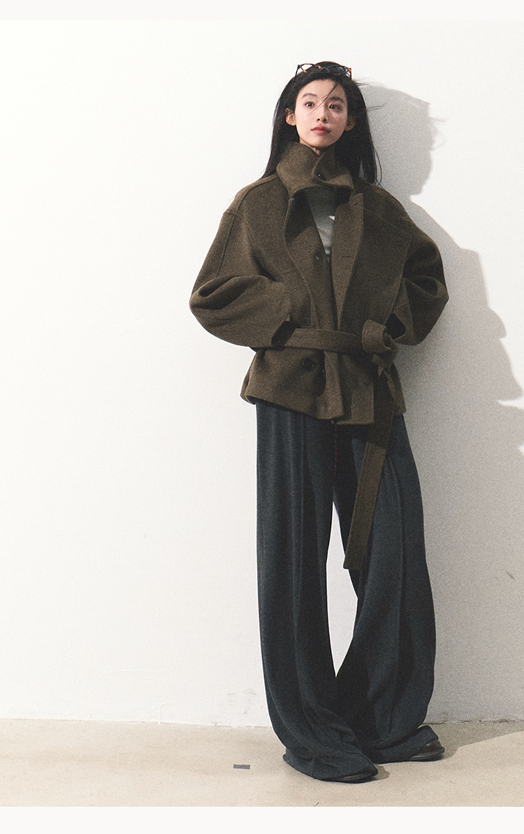 Oakmoo/ "Flowers Are in Full Bloom" Wool Stand-Up Collar Coat for Women, Winter Double-Breasted Short Waist-Cinching Woolen Coat