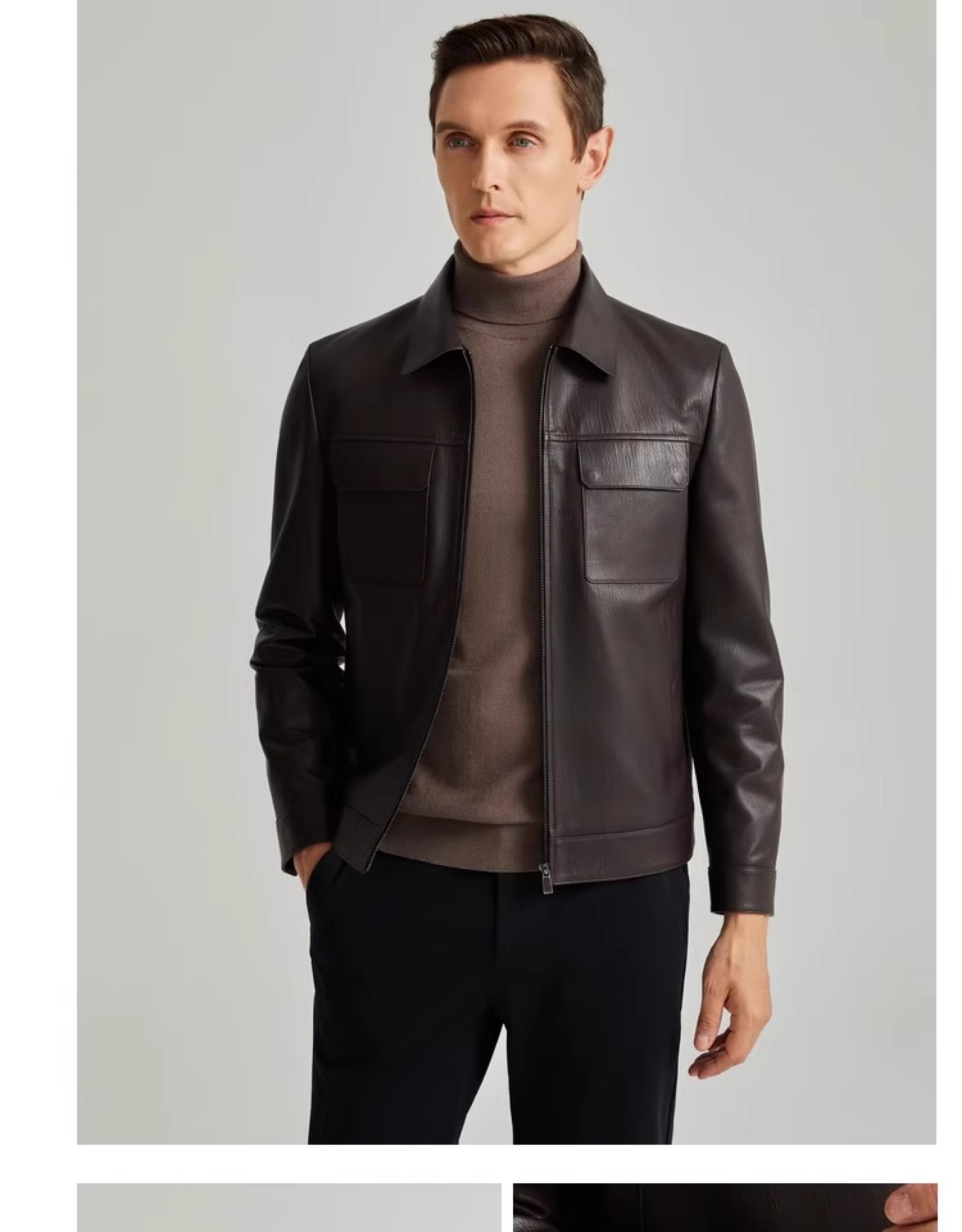 [Same Style as Lei Jun] Satchi Men's Genuine Leather Jacket, Sheepskin Business Short Leather Jacket for Men