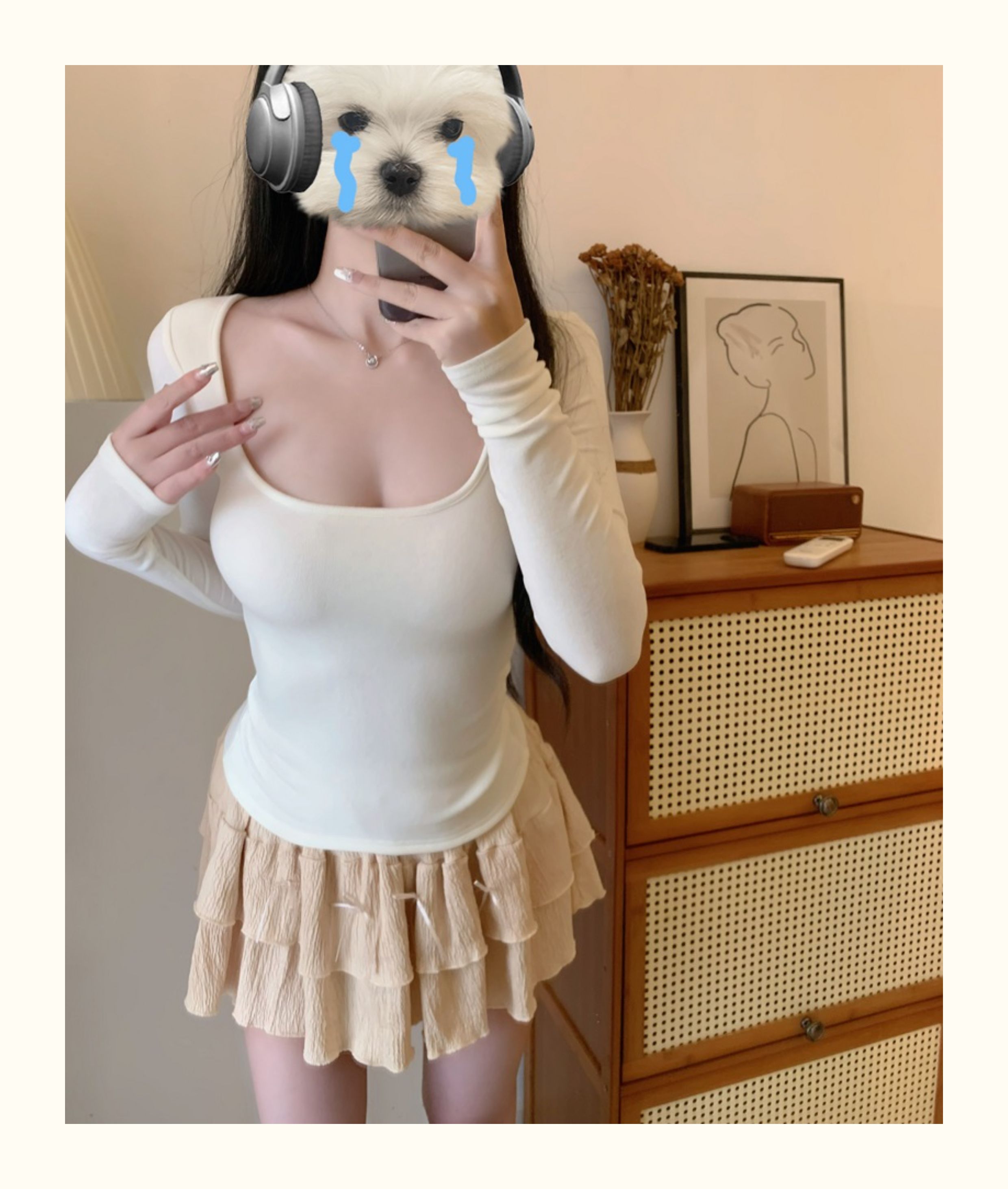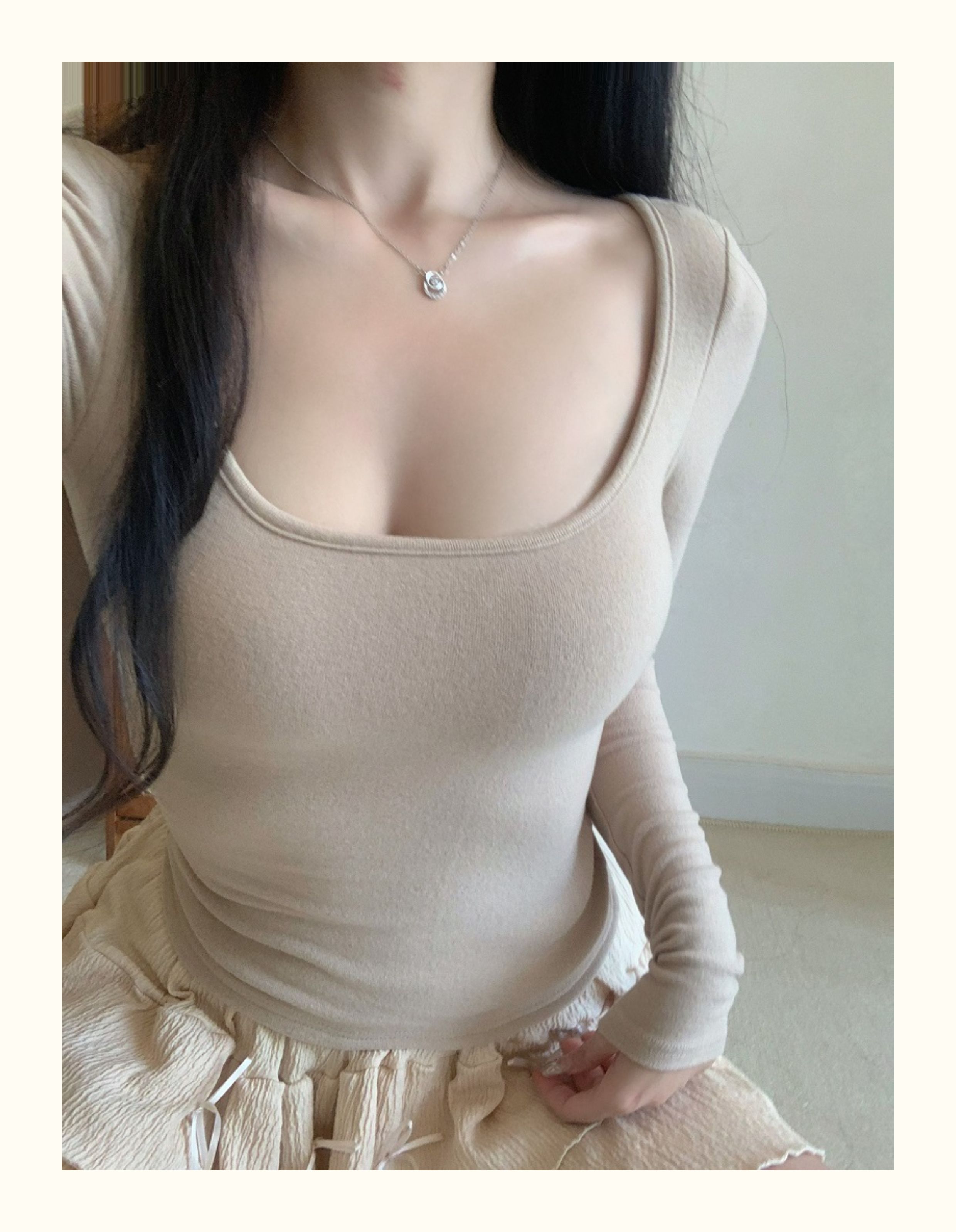 Unlimited Repurchase Classic Edition! Comes with Built-In Chest Pads, Brushed Long-Sleeve Base Layer Top with a Generous Neckline, Warm and Suitable for Layering