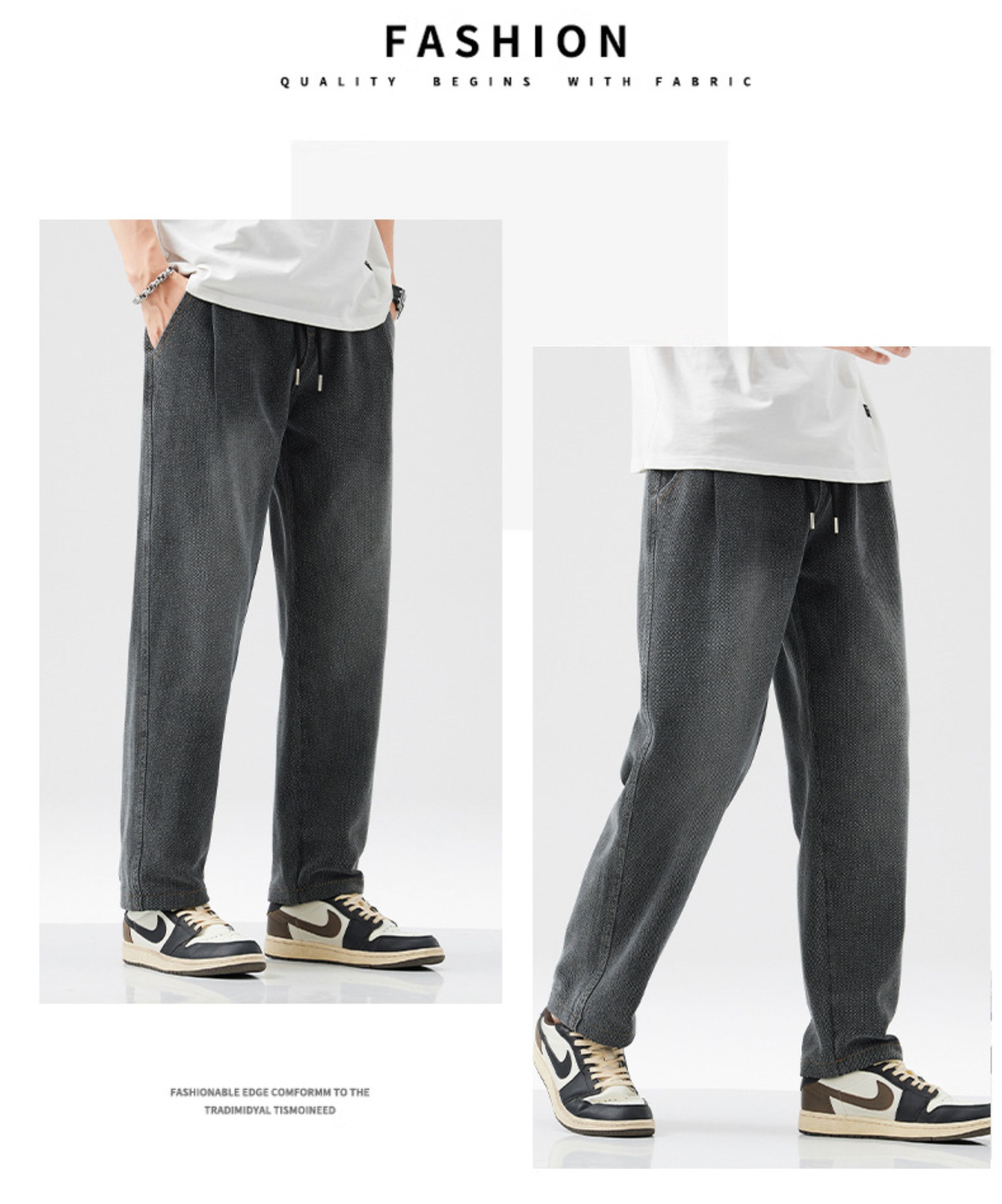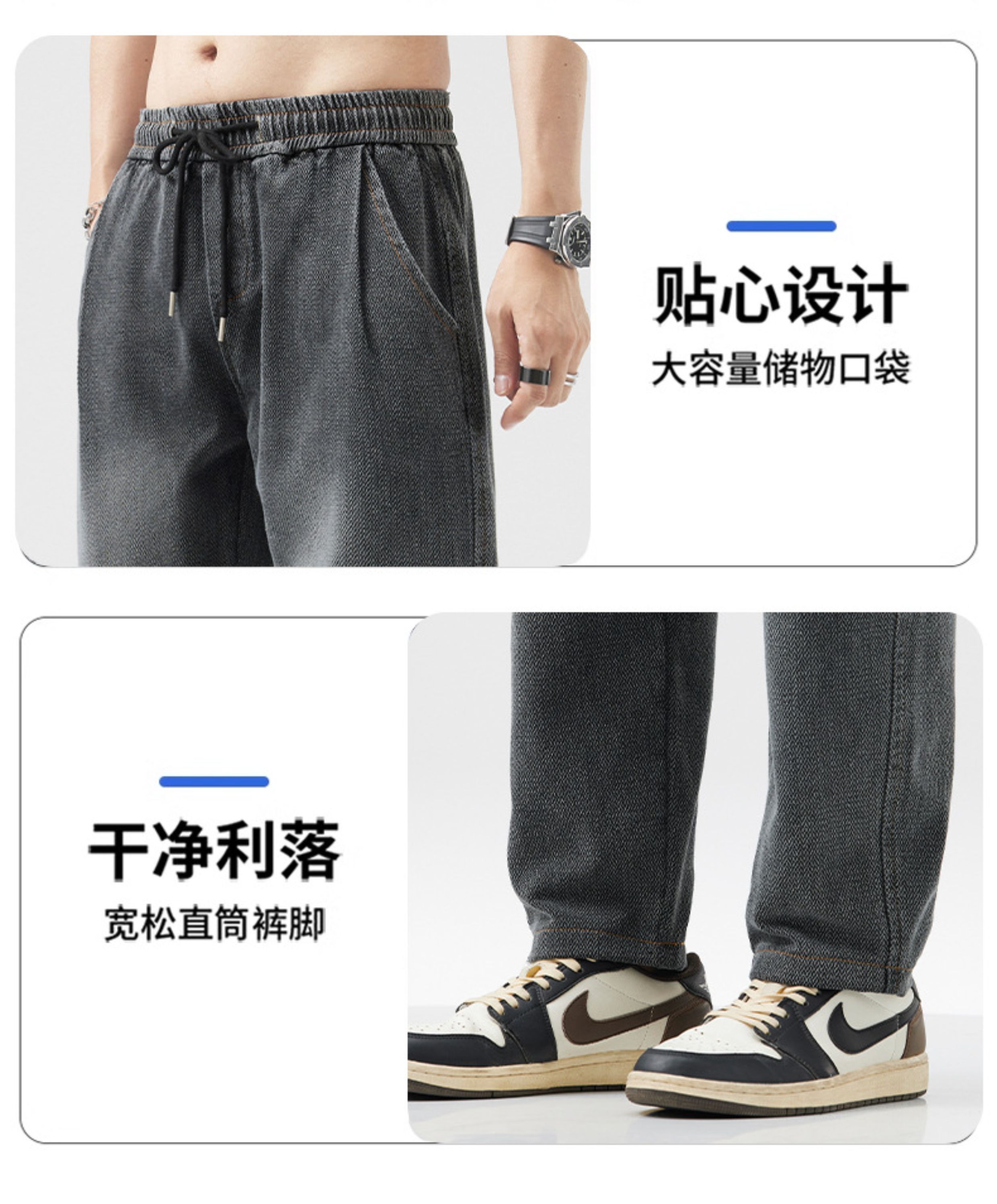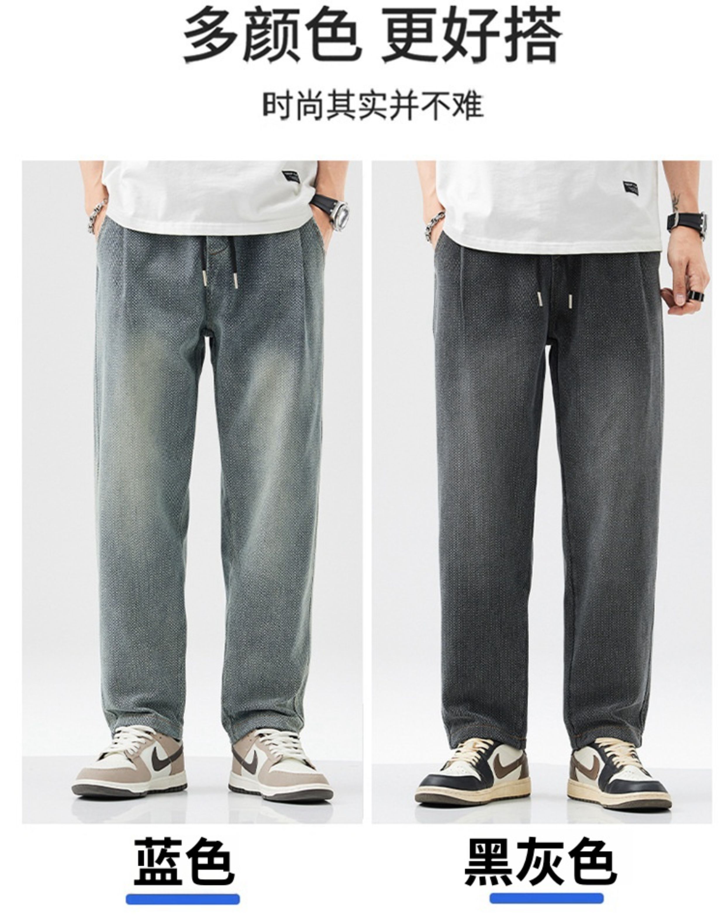 2025 New Fashion Versatile Men's Jeans Trendy Retro Drawstring Simple Couple Style Casual Tapered Long-1