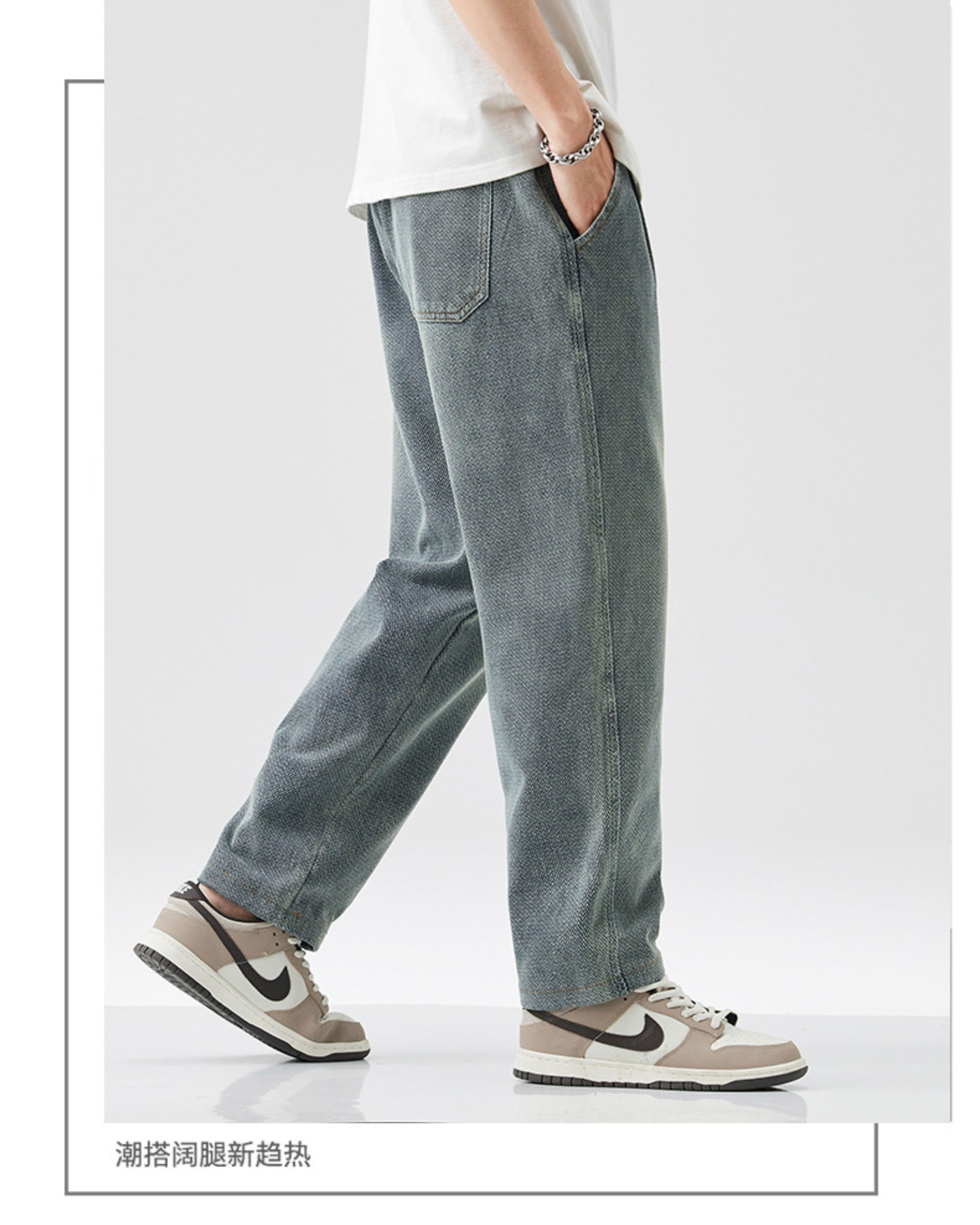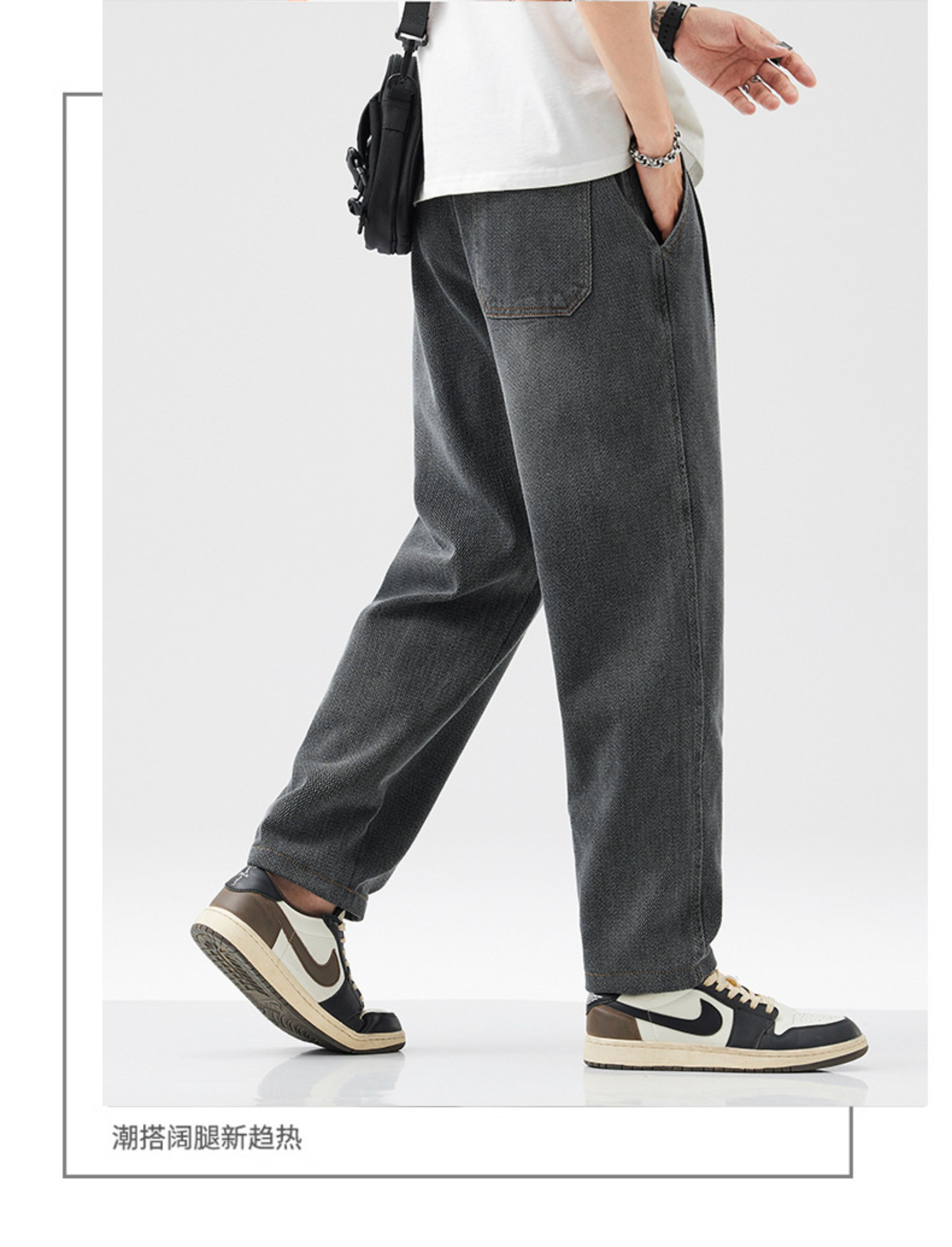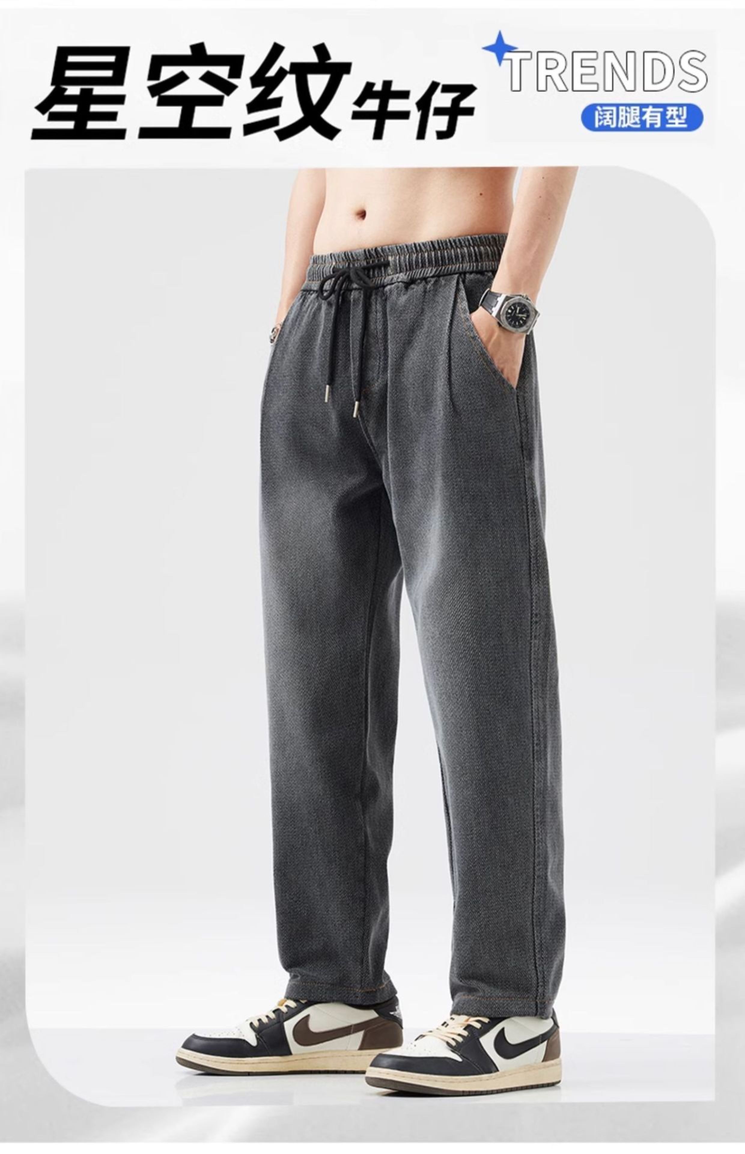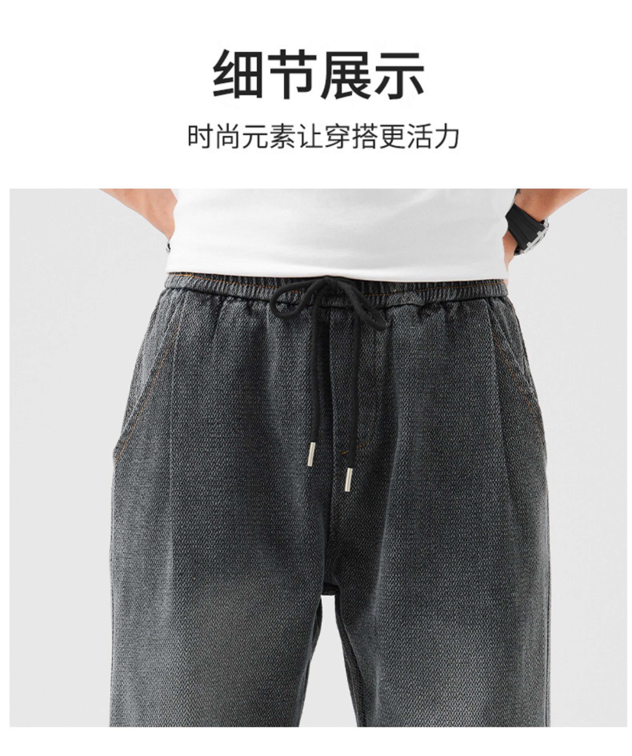 2025 New Fashion Versatile Men's Jeans Trendy Retro Drawstring Simple Couple Style Casual Tapered Long-1