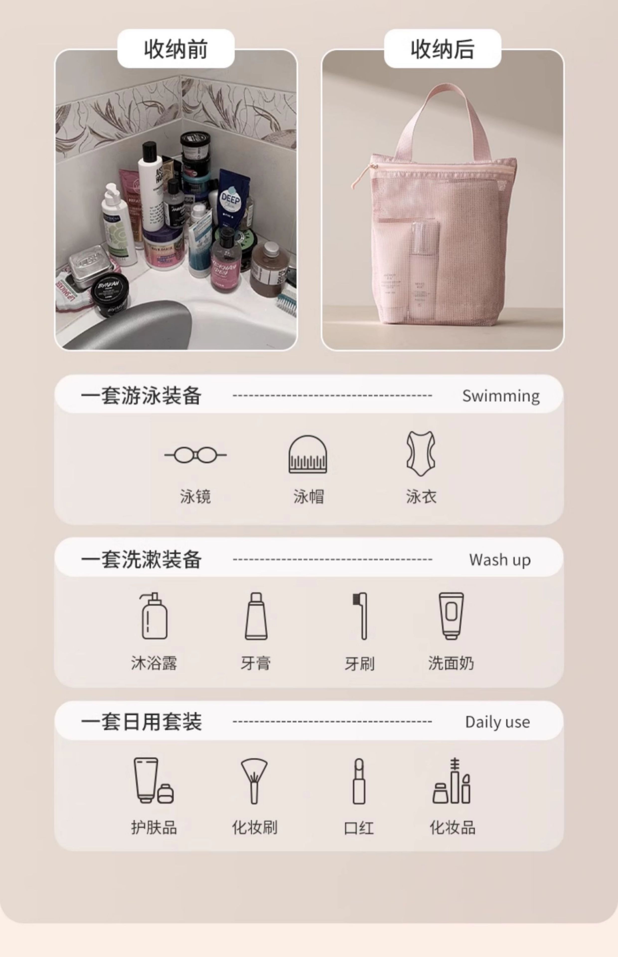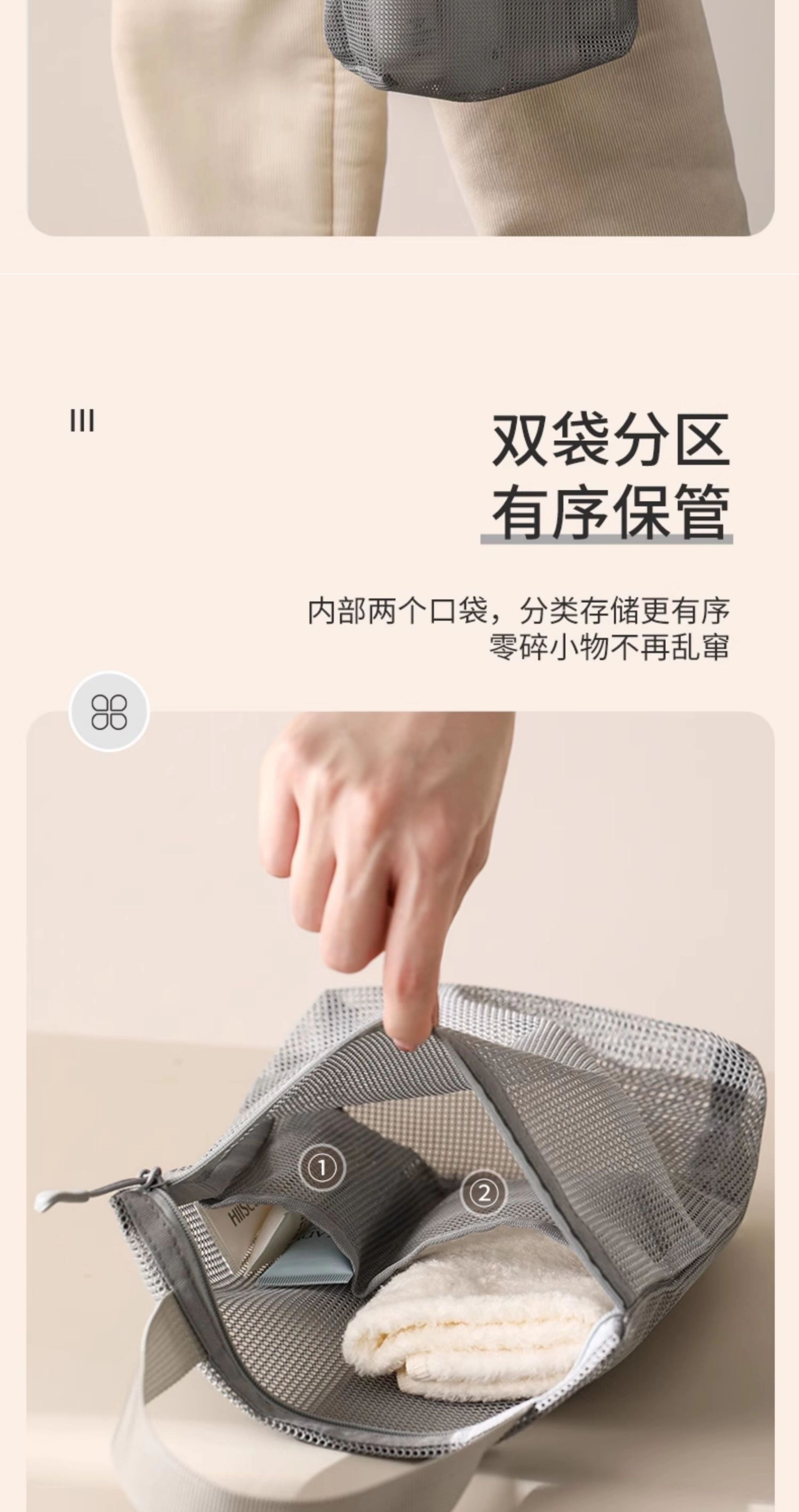 Pocket Travel Portable Toiletry Bag for Men and Women, Outdoor Portable Storage Bag, Business Trip Large-Capacity Mesh Bath Bag