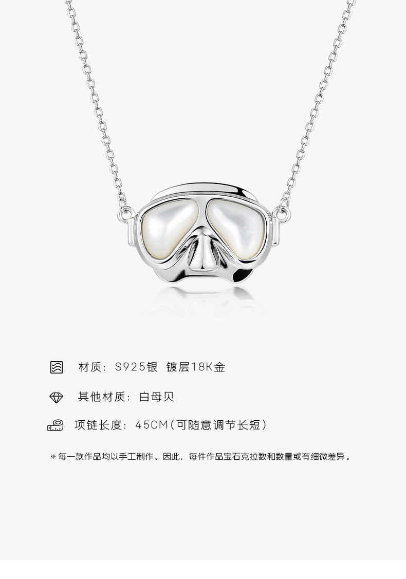 One Swear/Fan Shi Diving Mask Necklace Sports Freediving Swimming Couple Best Friend Gift Scuba Mask