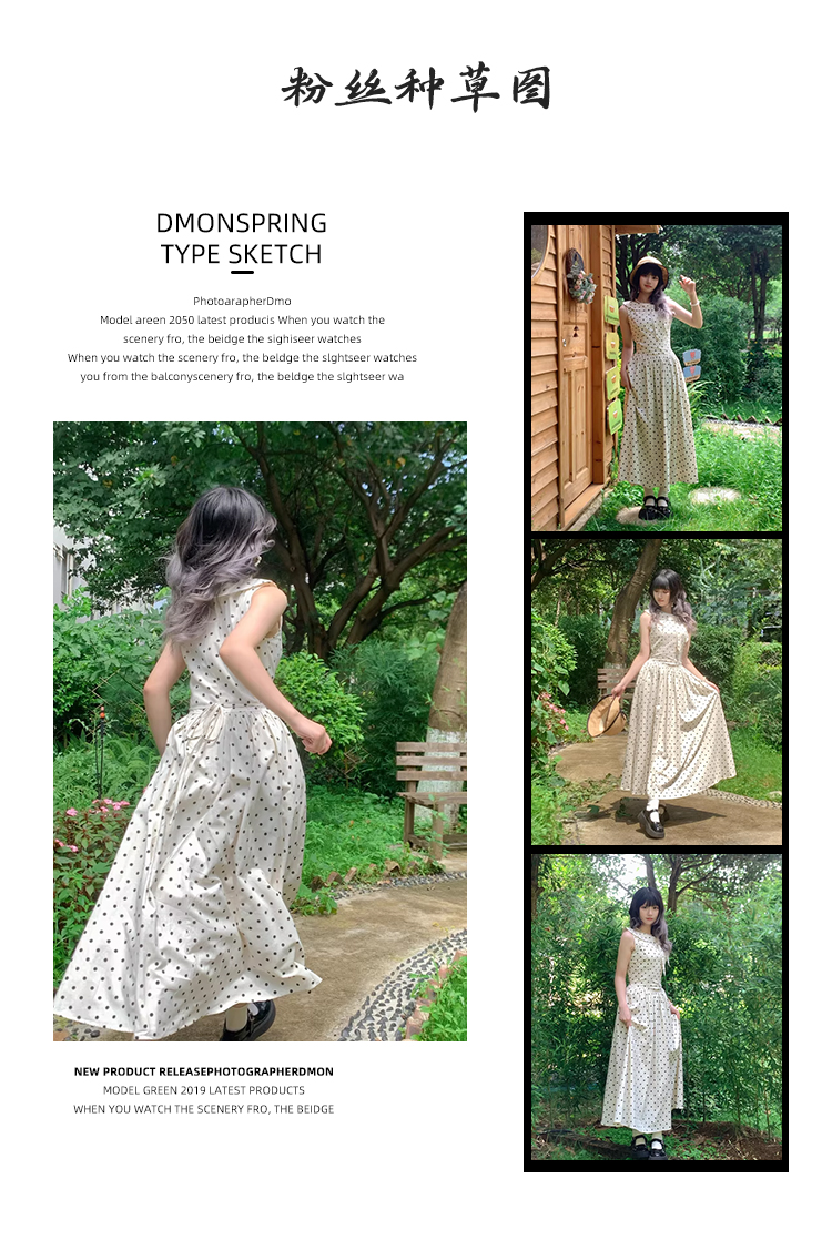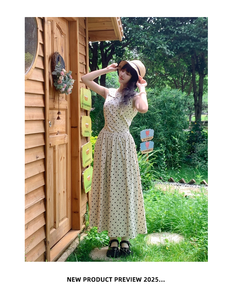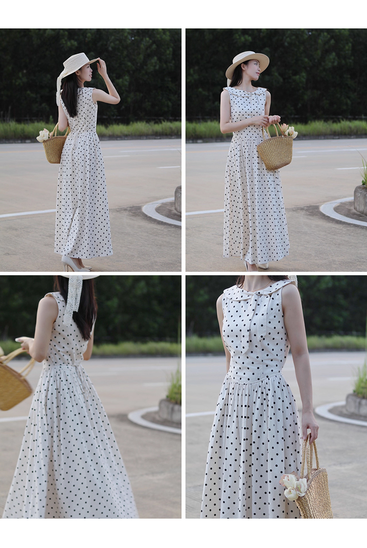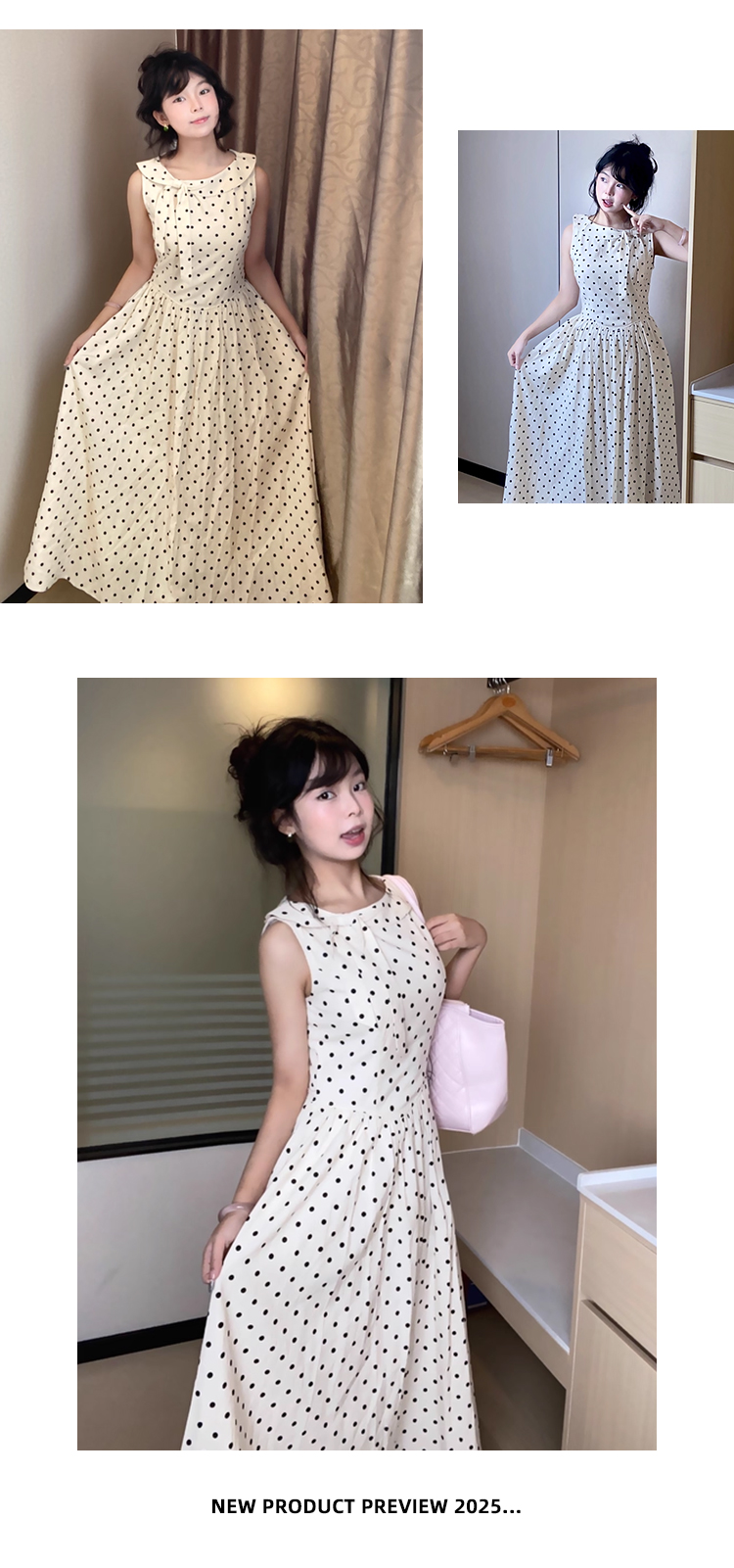 Three Tailors Art Muse French Retro Waist-Cinching A-Line Sleeveless Dress Summer Elegant Long Dress New Style