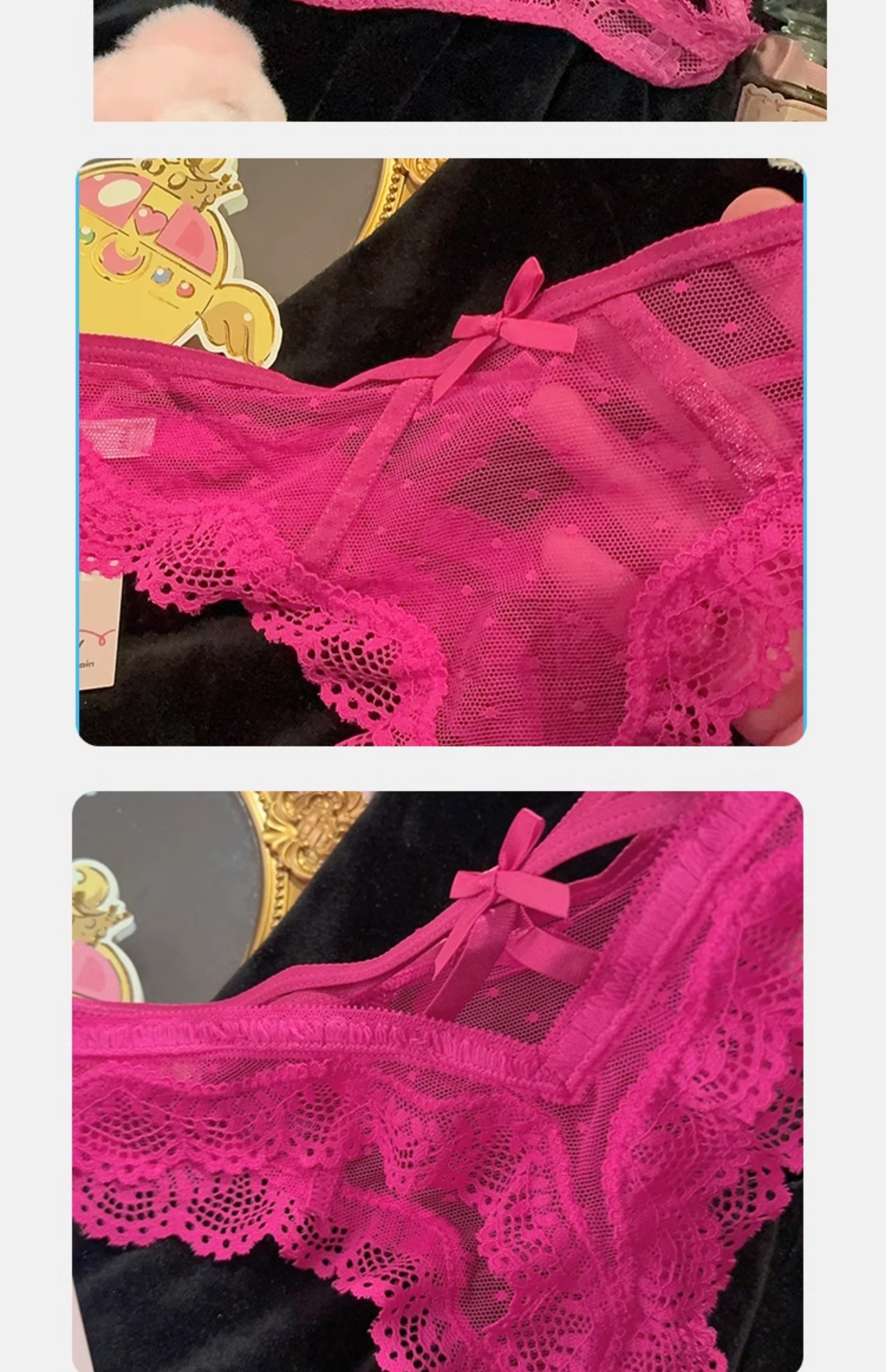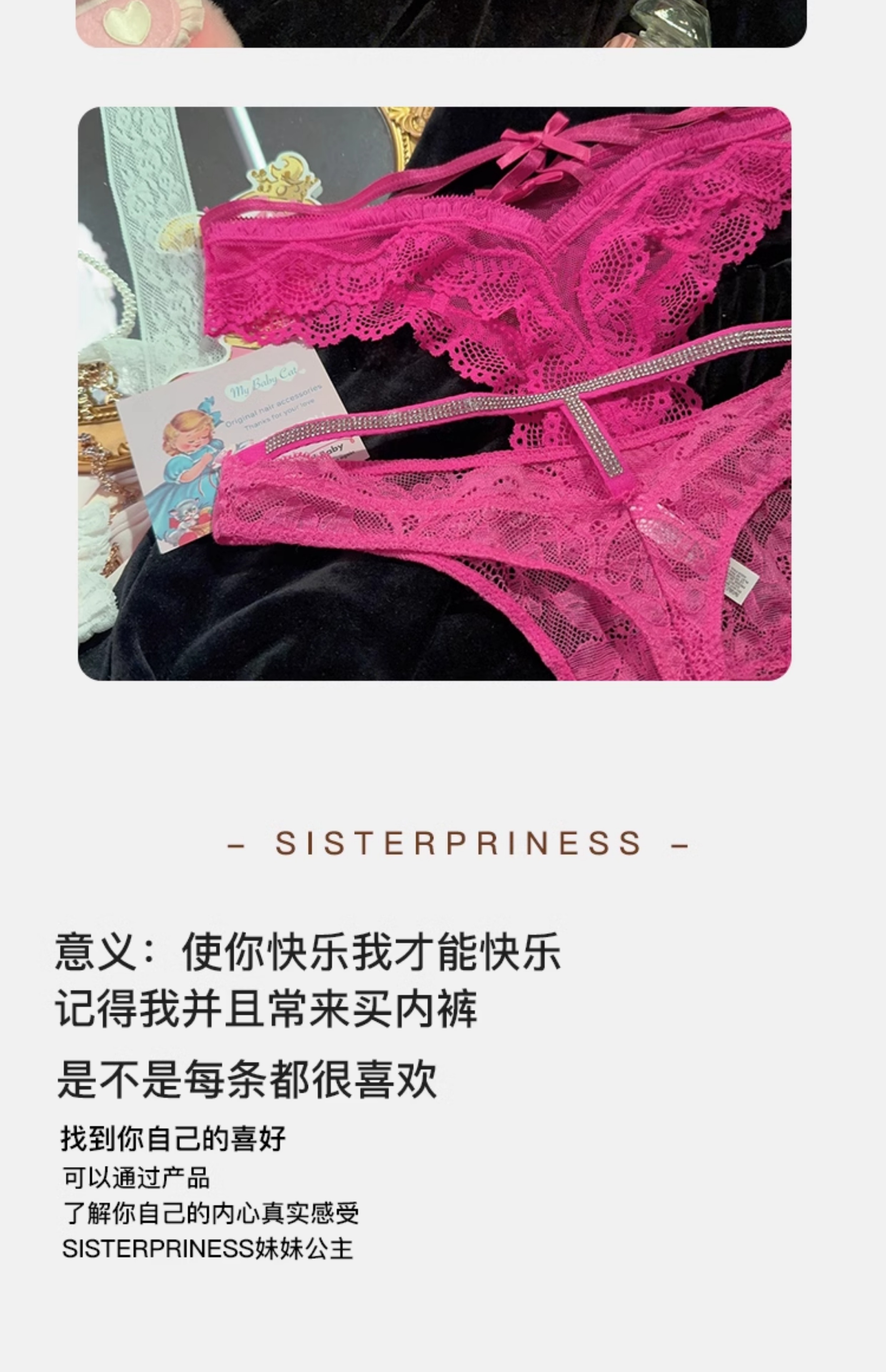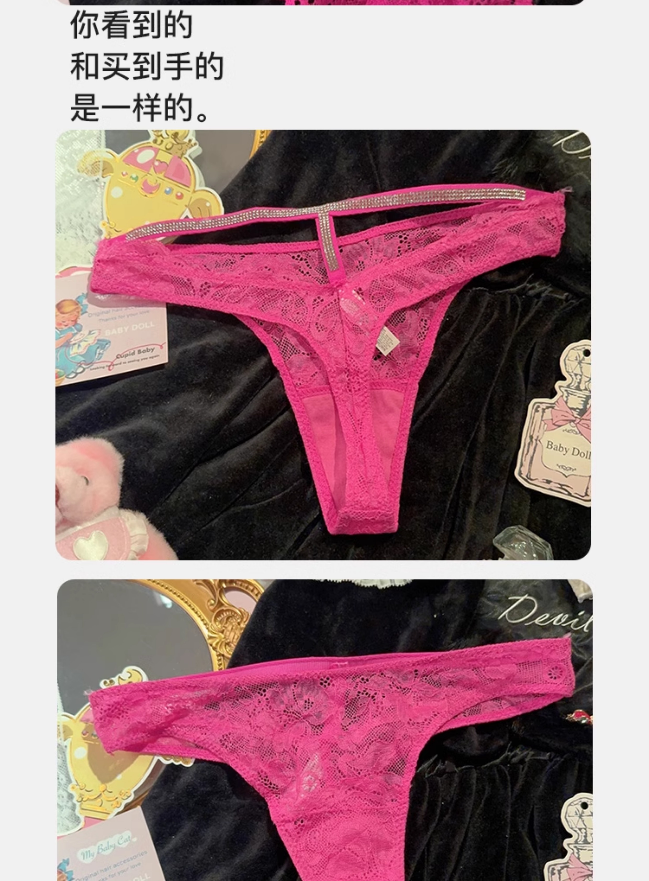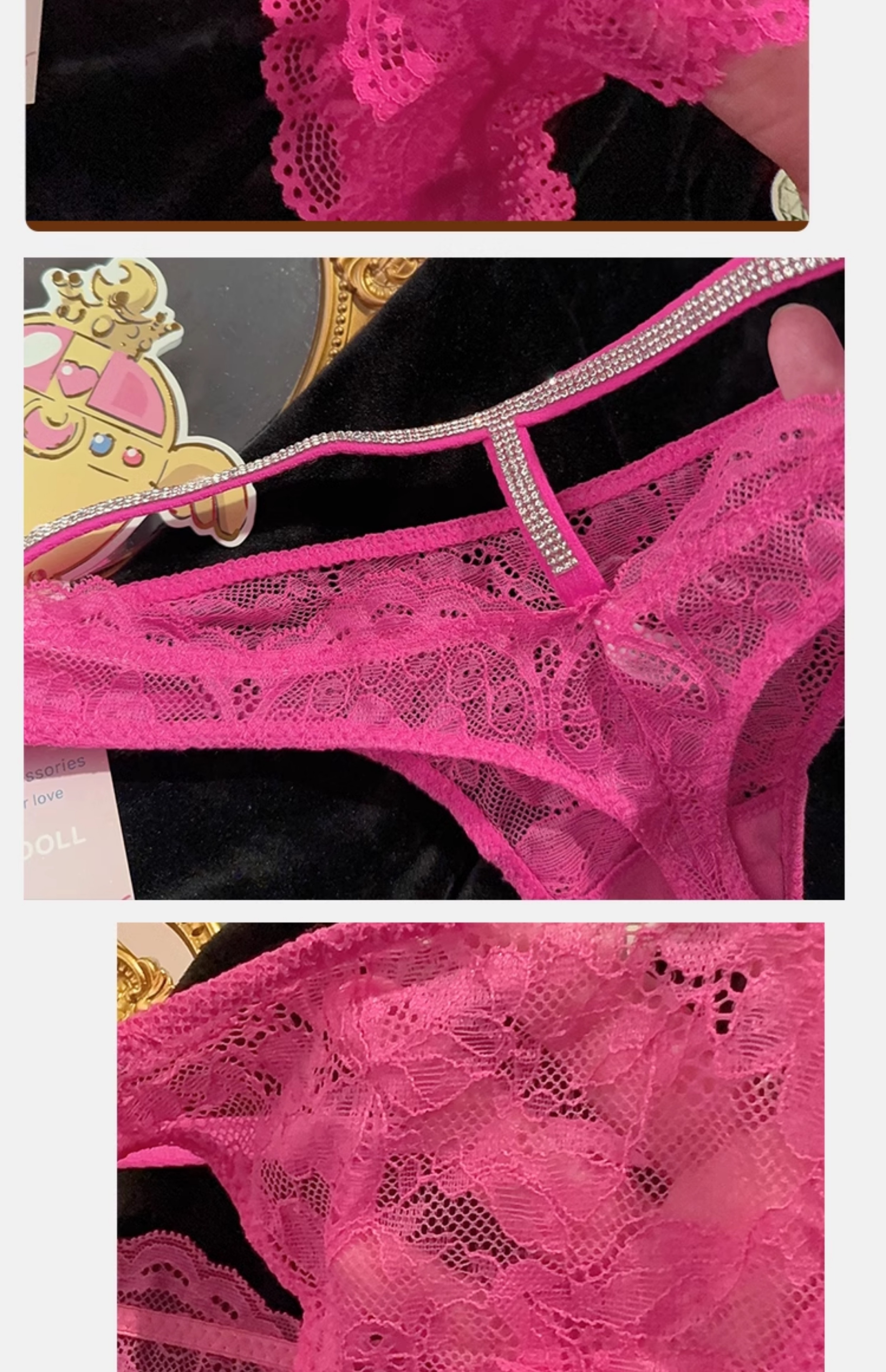 High-End Light Luxury Rose Pink Barbie Thong with Diamond Embellishments, Hollow-Out Thin Straps, Sexy Pure Desire Lace Panties for Women