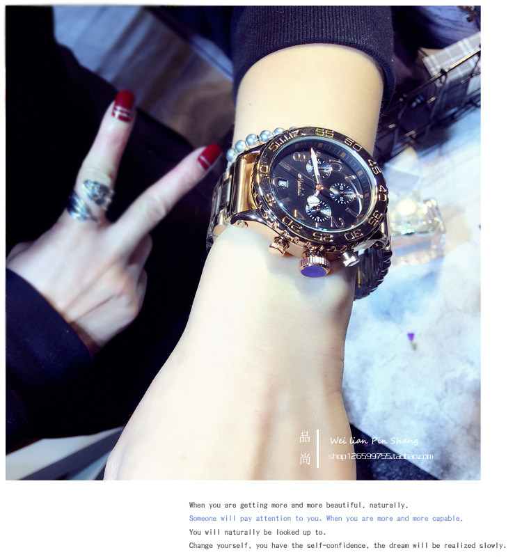 韩版时尚配衣服更好看,钢带精钢表带,工作、约会、逛街、聚会都适合戴出去哦!